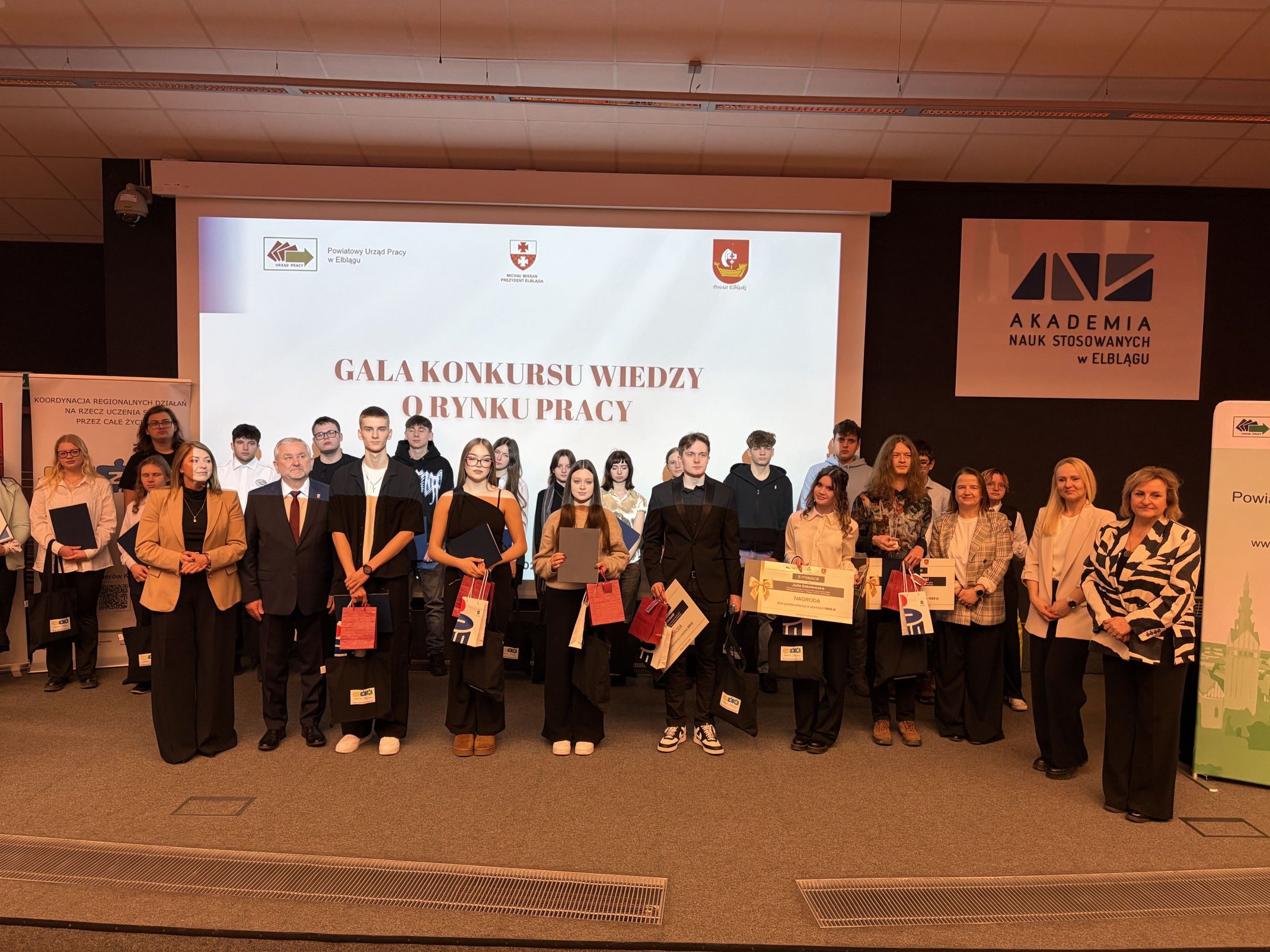 W poniedziałek, 2 marca 2026 r., w Akademii Nauk Stosowanych w Elblągu odbyła się uroczysta gala Konkursu Wiedzy o Rynku Pracy dla uczniów szkół ponadpodstawowych z Elbląga i powiatu elbląskiego. Organizatorem wydarzenia był Powiatowy Urząd Pracy w Elblągu.
