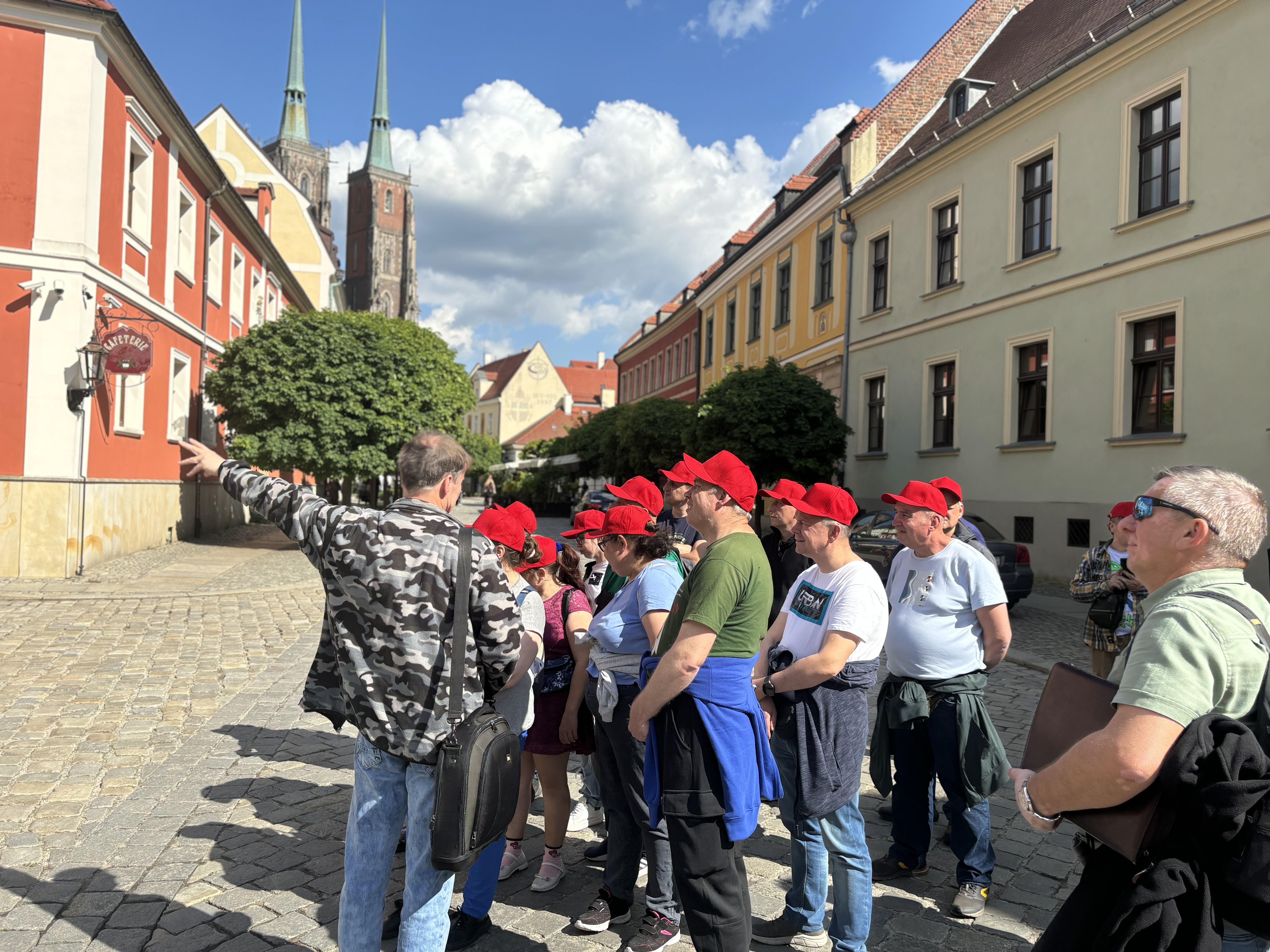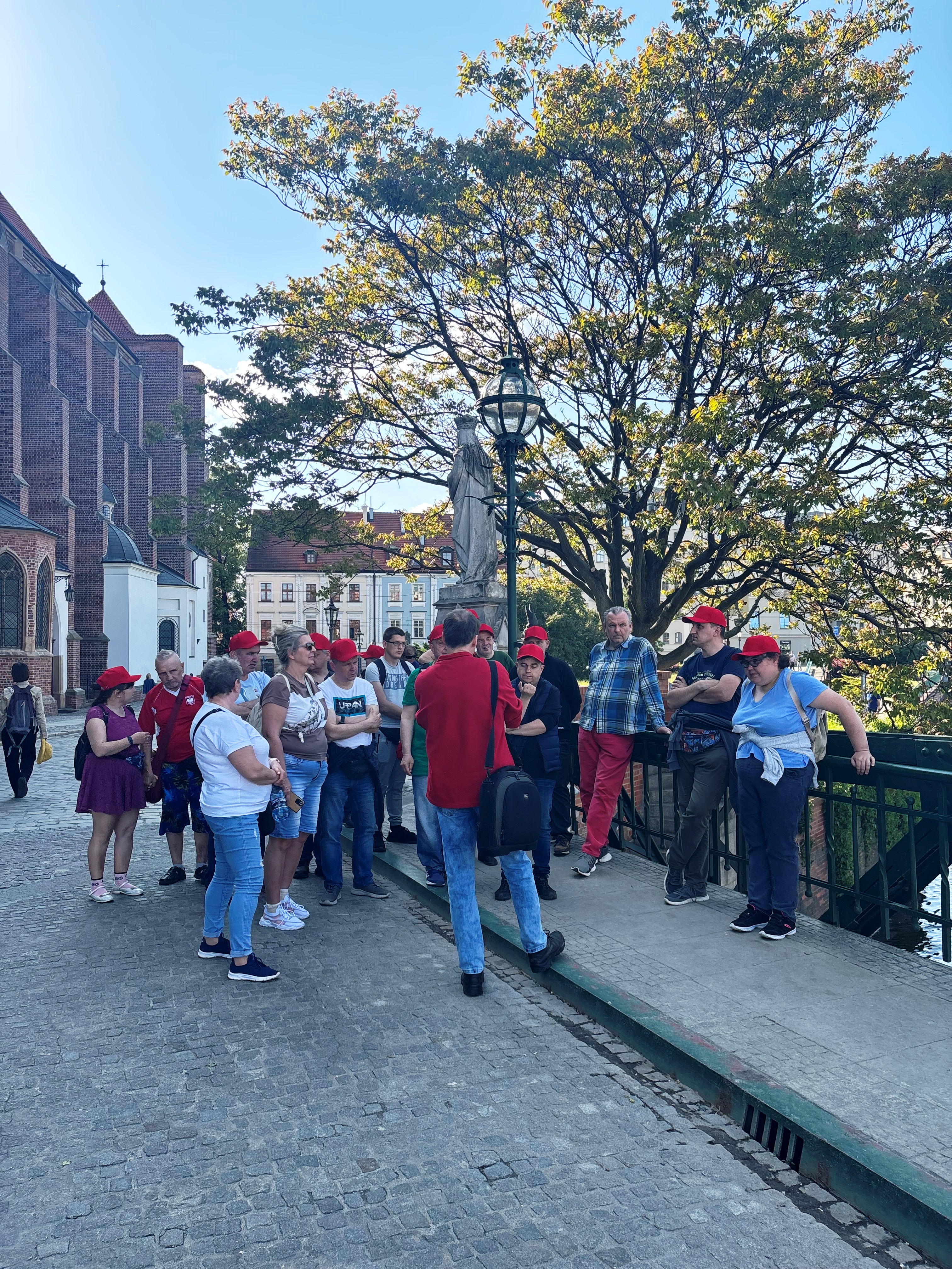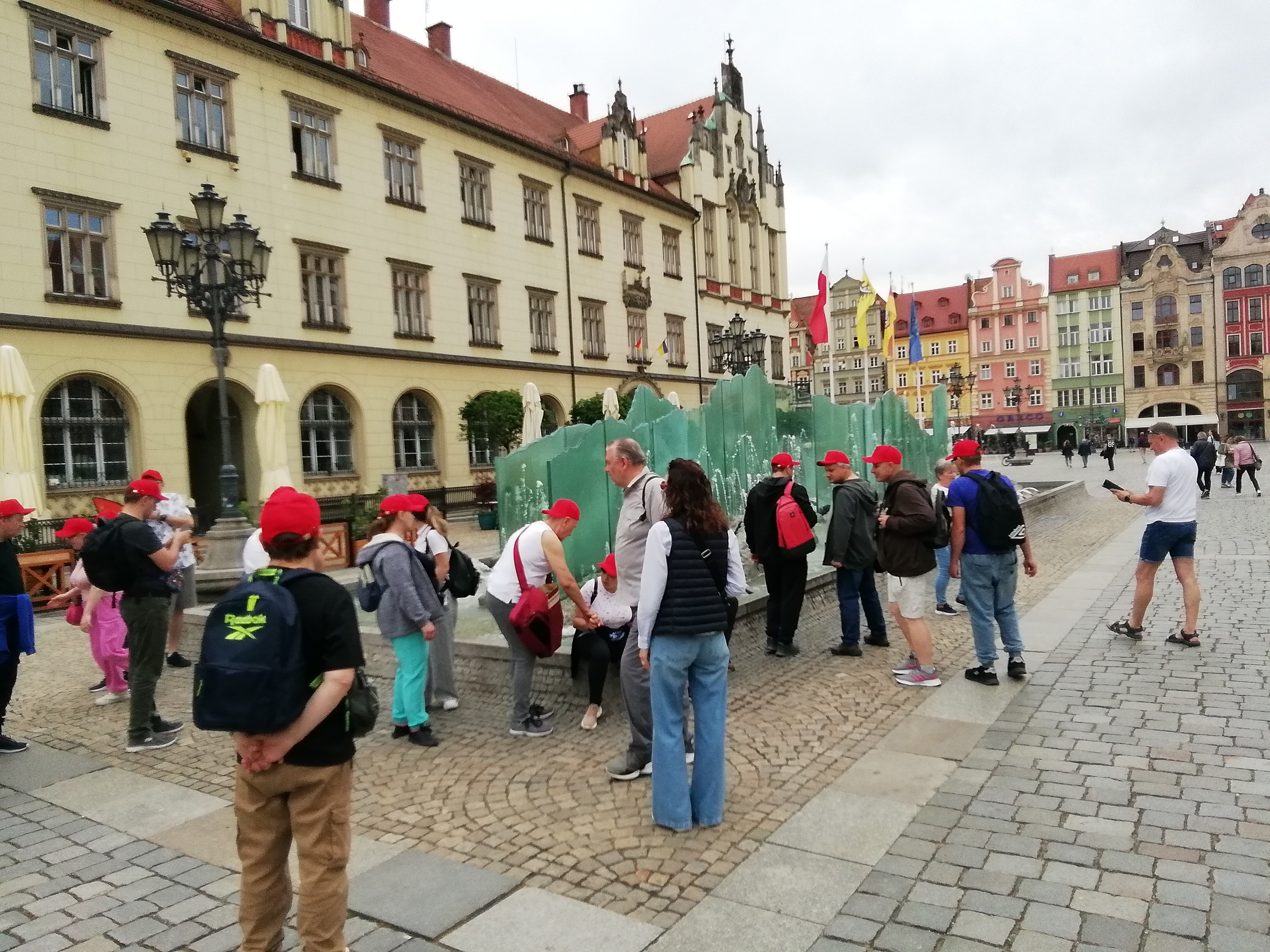 Kolejnym punktem programu była Wyspa Piasek – jej spokojna atmosfera sprzyjała spacerom i robieniu pamiątkowych zdjęć. Następnie udaliśmy się na Stare Miasto, którego sercem jest jeden z największych rynków w Europie. Zatrzymaliśmy się przy Ratuszu, poznaliśmy legendy związane z pręgierzem i charakterystycznymi kamienicami, a także bawiliśmy się w poszukiwanie wrocławskich krasnali – każde z nich ma swoją nazwę i historię, co dostarczyło uczestnikom wiele radości i śmiechu.