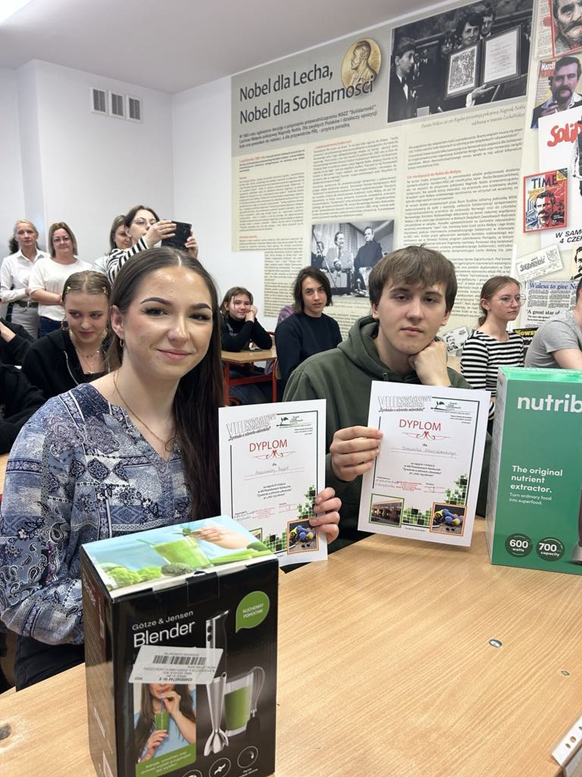 Uczniowie Zespołu Szkół Ekonomicznych i Technicznych w Pasłęku odnieśli wielki sukces w VIII Powiatowym Konkursie „Żywienie a zdrowie człowieka” pod hasłem „Jedz i żyj zdrowo”, który odbył się w Zespole Szkół Zawodowych w Kurzętniku. W rywalizacji wzięło udział 20 drużyn, a reprezentanci ZSEiT – Dominik Krasosdowski z klasy IV oraz Ola Bajgot z klasy V technikum żywienia i usług gastronomicznych – stanęli na podium!