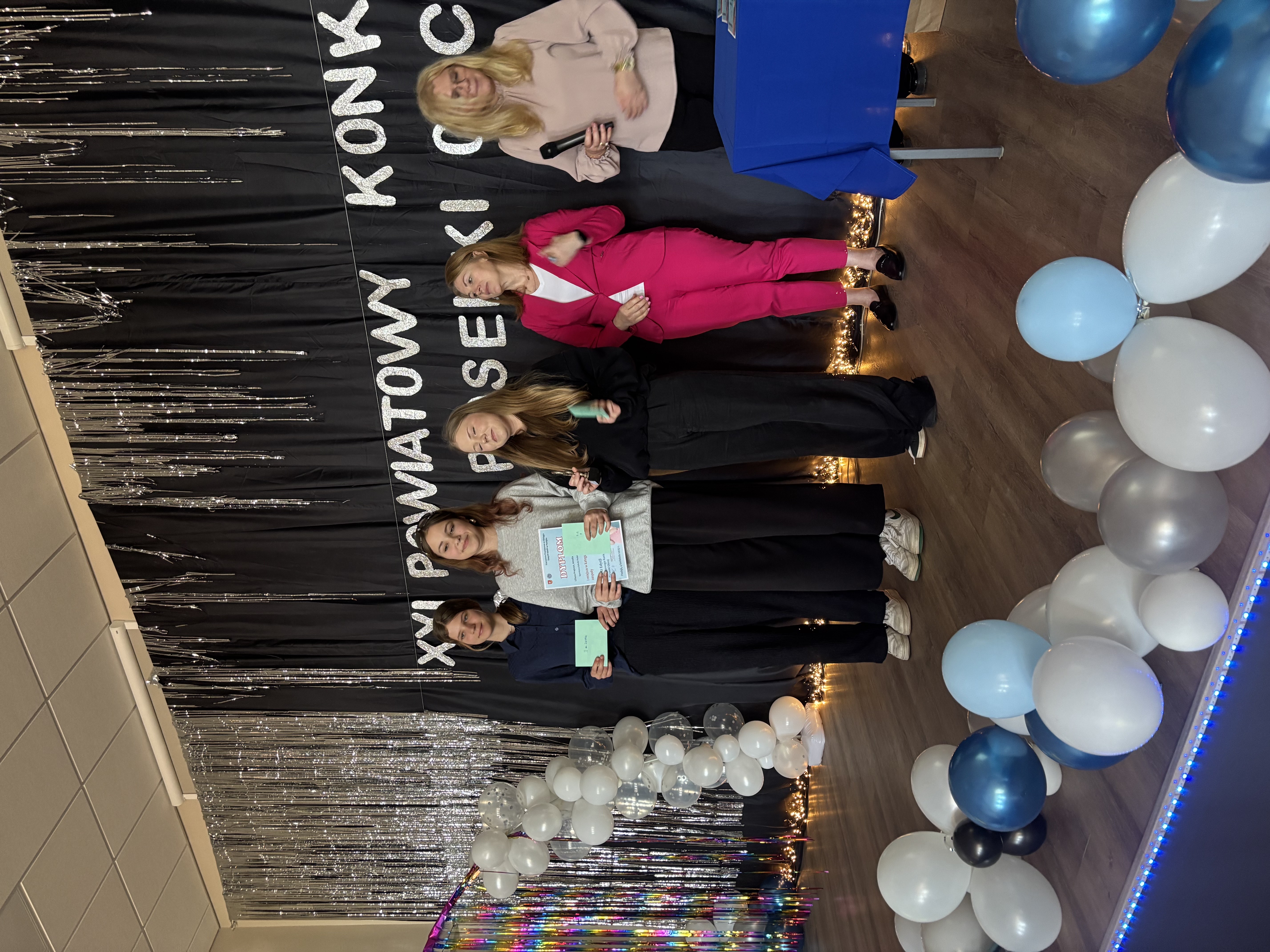 4 kwietnia 2025 roku aula Zespołu Szkół w Pasłęku po raz kolejny wypełniła się muzyką. Wszystko za sprawą XXI edycji Powiatowego Konkursu Piosenki Obcej– wydarzenia, które od lat gromadzi młodych pasjonatów śpiewania z regionu. Muzyczną rywalizację poprowadzili Weronika Czebanik i Jakub Soroka, a uroczystego otwarcia konkursu dokonała dyrektor Zespołu Szkół w Pasłęku– pani Joanna Majewska. Konkurs, jak co roku, odbył się pod honorowym patronatem starosty elbląskiego, pana Macieja Romanowskiego. Nagrody zostały ufundowane przez Starostwo Powiatowe w Elblągu oraz Radę Rodziców Zespołu Szkół w Pasłęku. Jury w składzie:– pani Justyna Kowalczyk – przewodnicząca jury, przedstawicielka Starostwa Powiatowego w Elblągu,– pani Anna Cernuto – muzykolog i anglistka,– pani Iwona Jachimek – nauczycielka muzyki oraz sztuki, miało niełatwe zadanie. Do konkursu przystąpili uczniowie ze szkół z Elbląga, Pasłęka, Młynar, Rogajn, Milejewa i Gronowa Górnego. Uczestnicy wystąpili w trzech kategoriach: soliści ze szkół podstawowych, soliści ze szkół ponadpodstawowych oraz zespoły. Nie zabrakło także możliwości przyznania wyjątkowej Nagrody Publiczności.