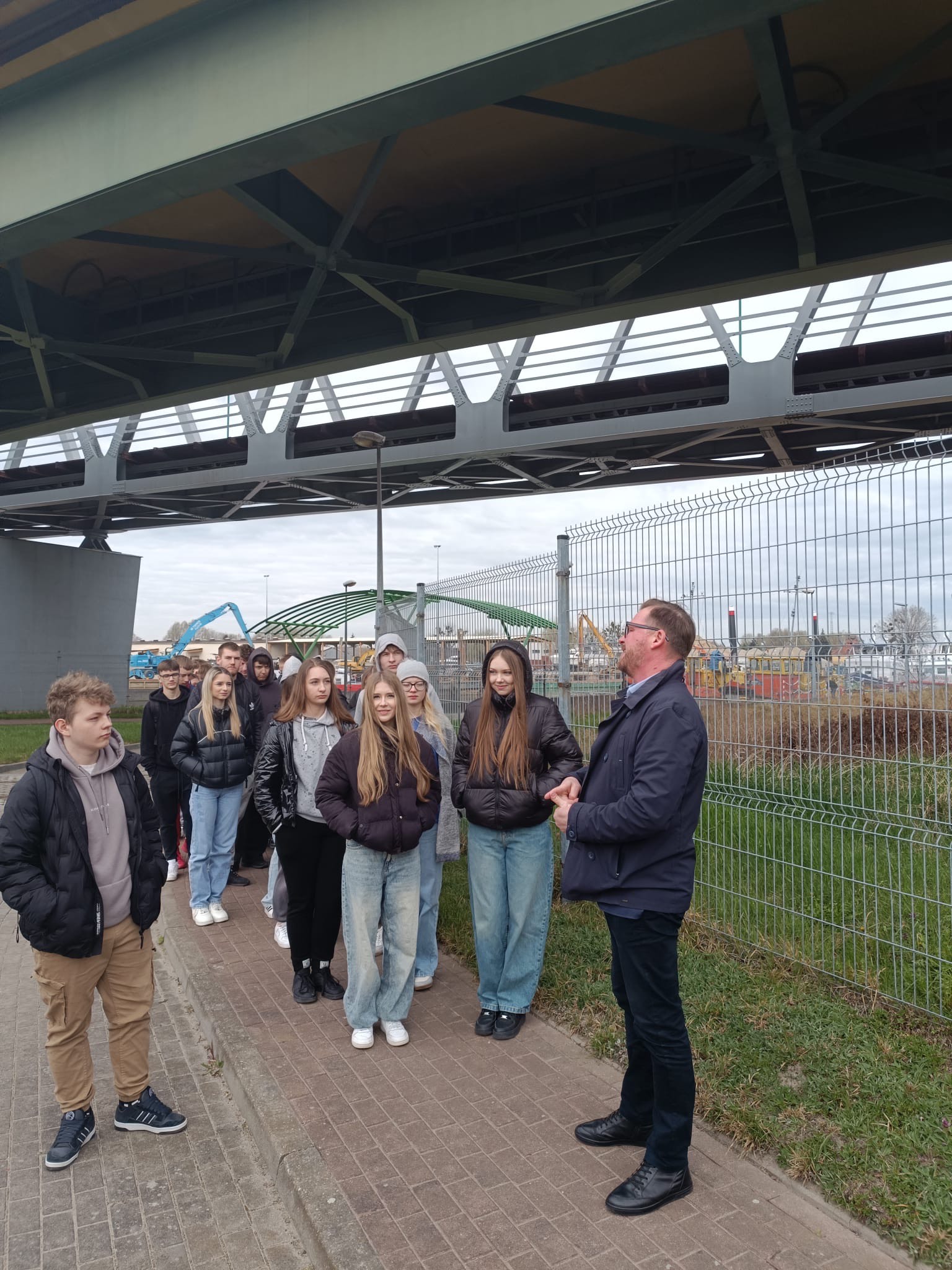 9 kwietnia 2025 r. uczniowie klas drugiej i trzeciej technikum logistycznego wzięli udział w wycieczce dydaktycznej do Portu Morskiego w Elblągu. Wizyta rozpoczęła się od krótkiej prezentacji, którą poprowadził dyrektor zarządu portu, pan Arkadiusz Zgliński. Uczniowie mieli okazję zobaczyć infrastrukturę techniczną portu, w tym terminal pasażersko-promowy z punktem odprawy granicznej. Podczas zwiedzania poznali wiele cennych informacji na temat funkcjonowania portu. Dowiedzieli się m.in., że Port Elbląg jest największym polskim portem na Zalewie Wiślanym. Pełni rolę portu regionalnego, obsługującego żeglugę przybrzeżną – zarówno towarową, jak i pasażersko-turystyczną– na Zalewie i Morzu Bałtyckim. Tradycyjnie w Elblągu dominowały przeładunki drobnicy, choć wśród towarów masowych dużą rolę odgrywał węgiel. Spadek przeładunków w ostatnich latach wynika z dwóch głównych przyczyn: ograniczenia wymiany handlowej z Federacją Rosyjską, będącej dotychczasowym dostawcą węgla, oraz trudności w żegludze spowodowanych budową nowej drogi wodnej do Elbląga. Obecnie port koncentruje się na rozwoju przeładunku suchych towarów masowych oraz rozbudowie infrastruktury. Nowym operatorem przeładunków została szczecińska spółka Venkon, która rozpoczyna działalność od niskiego poziomu przeładunków. Tego typu wyjazdy na stałe wpisały się w nasz program edukacyjny i stanowią cenne źródło praktycznej wiedzy dla uczniów. Wycieczka była wartościową lekcją logistycznej rzeczywistości.