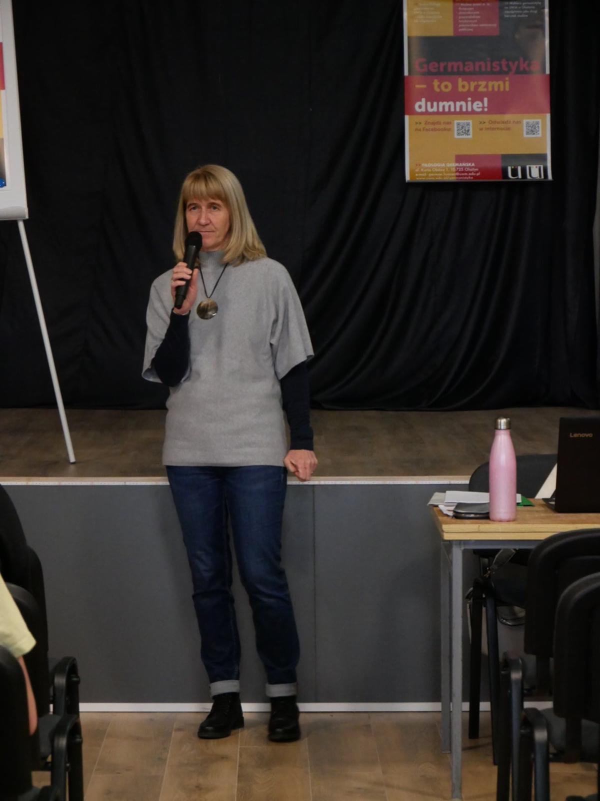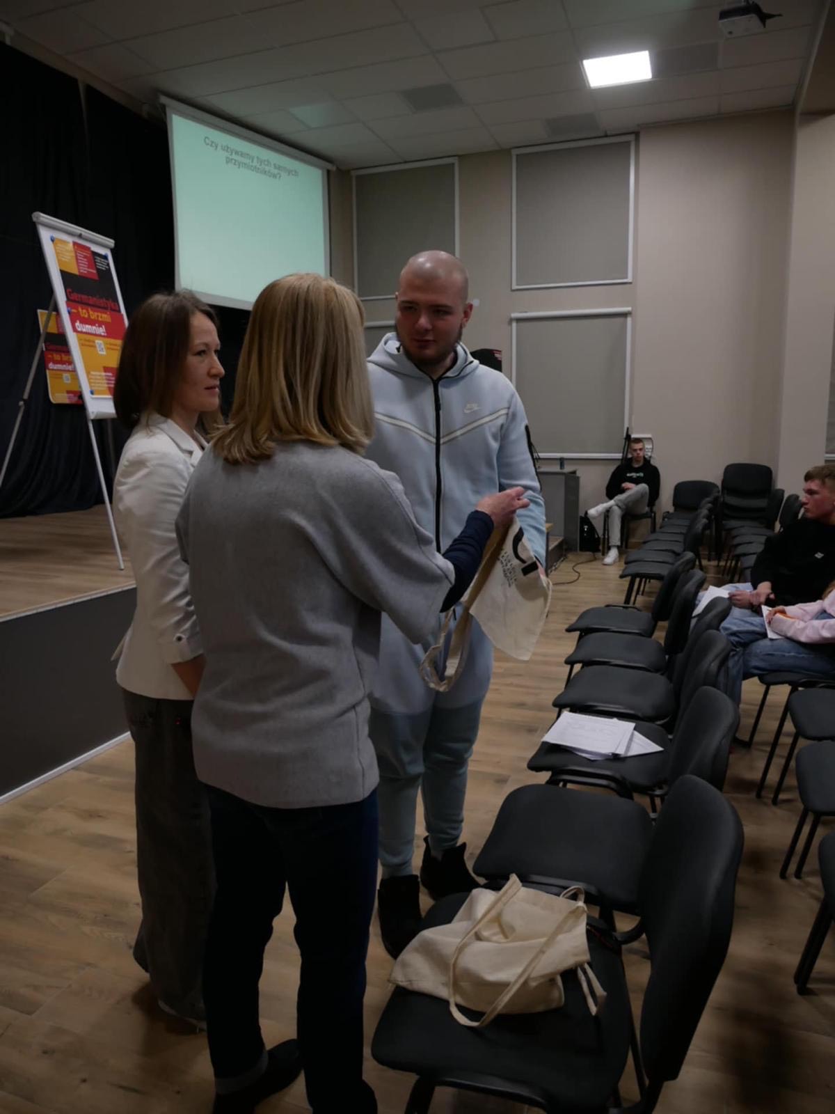 Podczas spotkania uczniom została również zaprezentowana bogata oferta - Germanistyka Olsztyn na Wydział Humanistyczny UWM na Uniwersytet Warmińsko-Mazurski w Olsztynie. Dzięki zaangażowaniu profesor Joanny Targońskiej warsztaty spotkały się z dużym zainteresowaniem uczniów. Osoby najbardziej aktywne i zaangażowane zostały nagrodzone przez prowadzącą drobnymi upominkami.