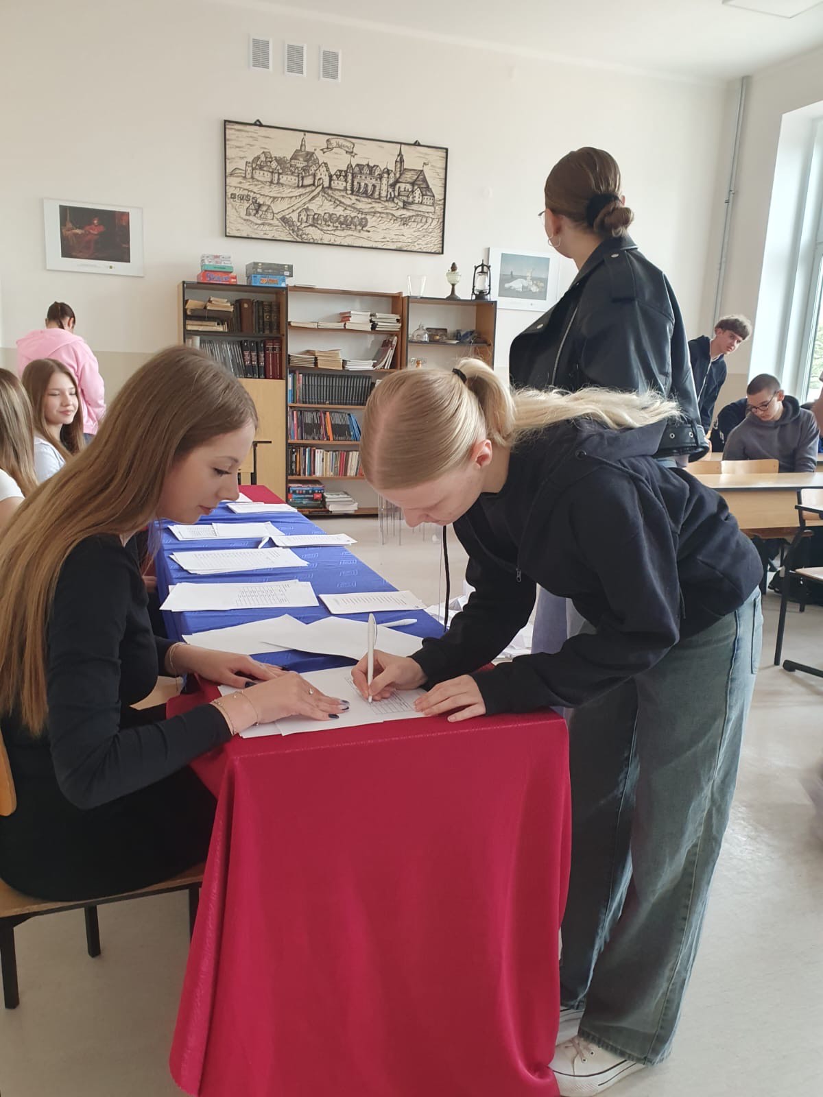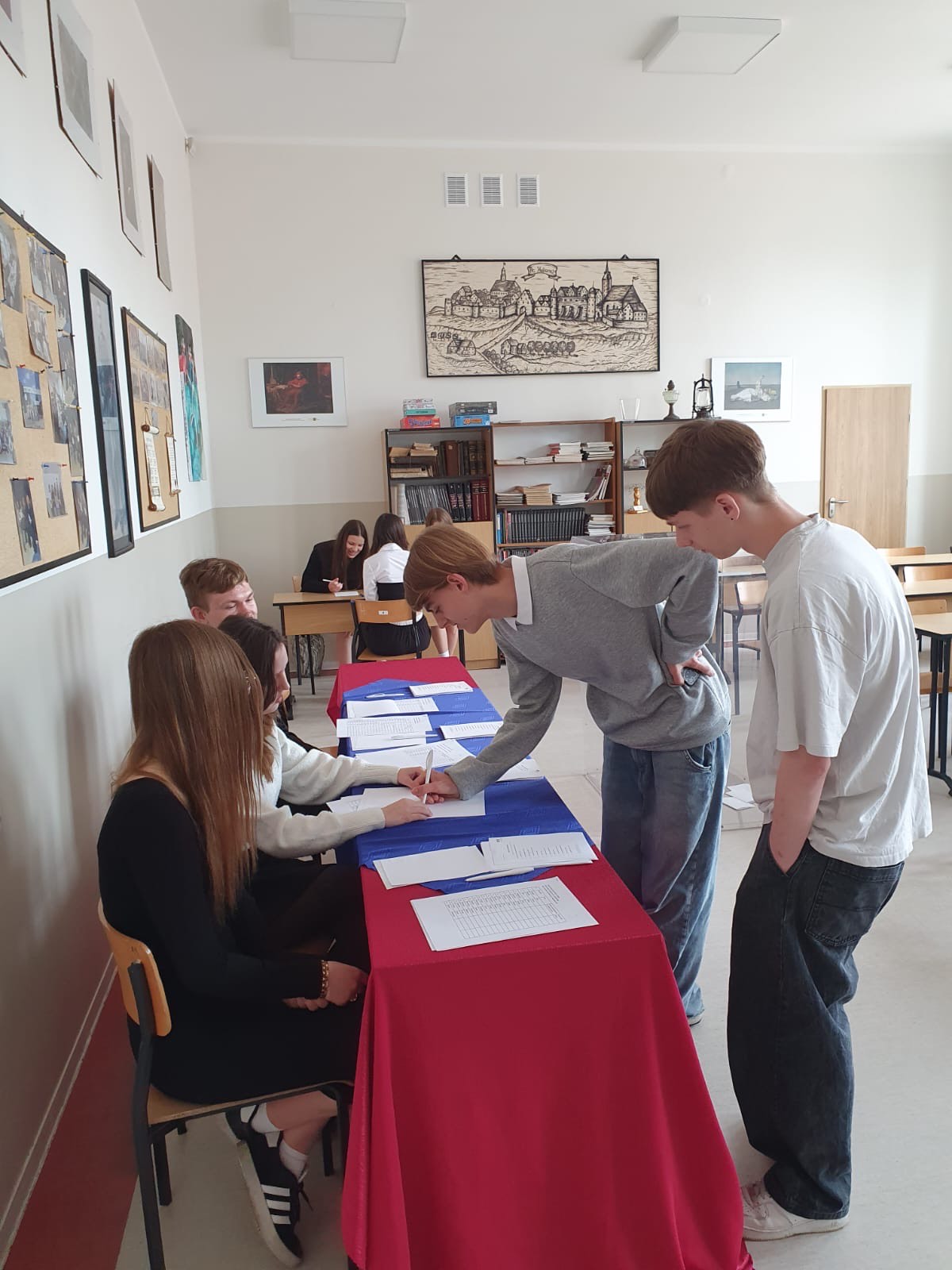 W ramach ogólnopolskiego projektu „Młodzi głosują – wybory prezydenckie 2025” 14 maja w naszej szkole przeprowadzono symulację wyborów. Nad przygotowaniem wydarzenia przez dwa miesiące pracował 13-osobowy zespół uczniów z klas 1a i 3b LO.