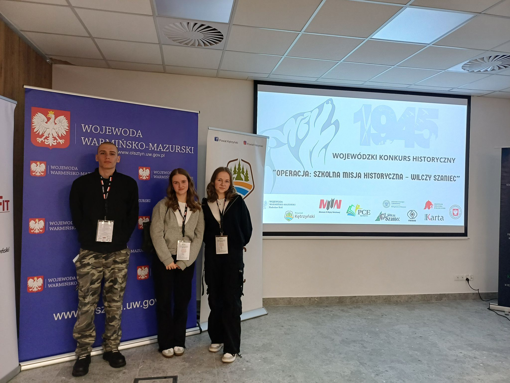 Wiktoria Krzysiak (klasa 2b), Zuzanna Żebrowska (klasa 2b) oraz Alan Wojnowski (klasa 3a) znaleźli się w zaszczytnym gronie finalistów konkursu, wyłonionych spośród 130 uczestników z województwa warmińsko-mazurskiego.
