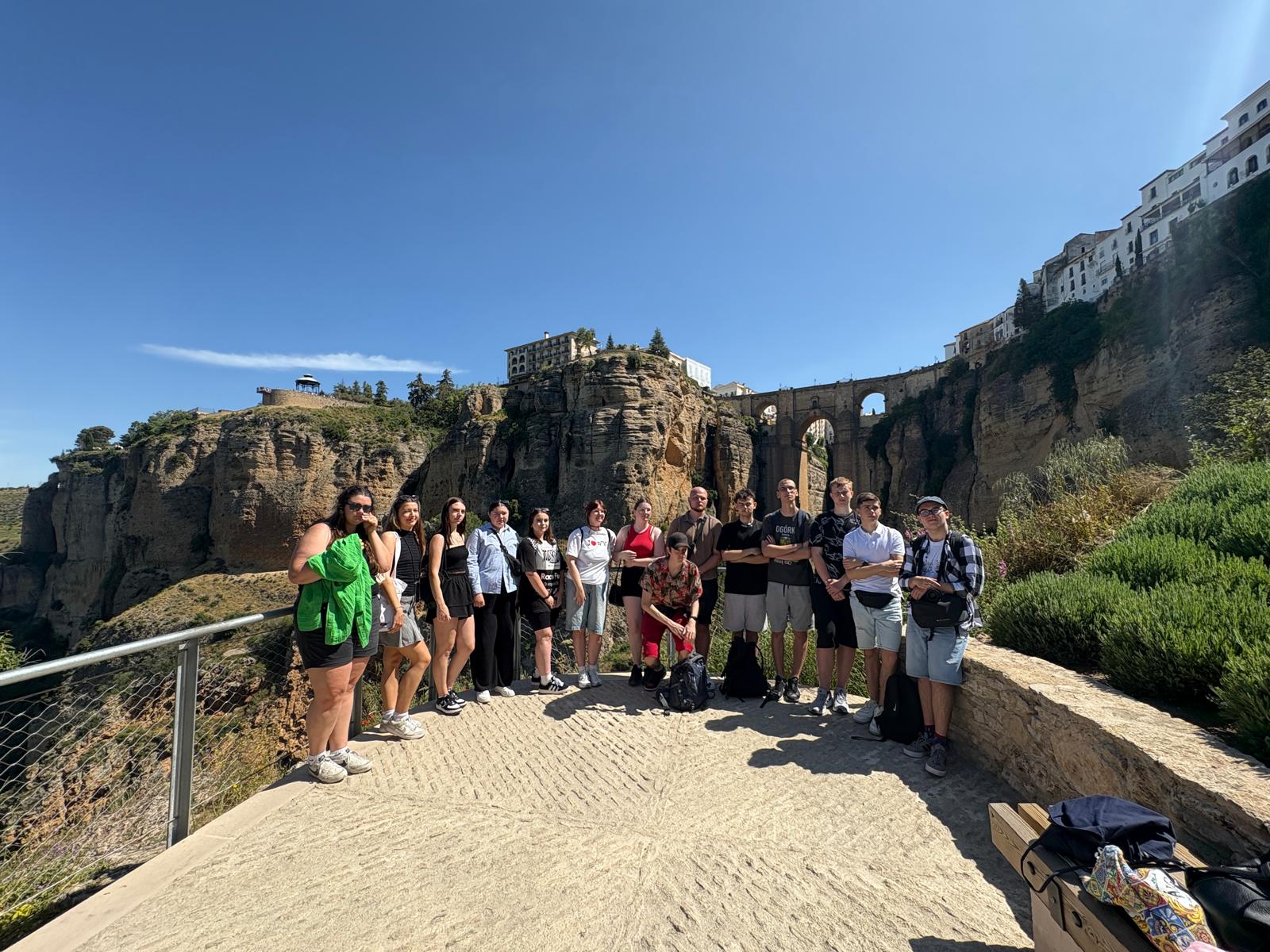 Kolejnymi punktami programu były wycieczki do Rondy i Marbelli – dwóch niezwykle malowniczych miast regionu. W Rondzie uczniowie zobaczyli słynny most Puente Nuevo, zawieszony nad głębokim wąwozem El Tajo oraz poczuli atmosferę andaluzyjskiego miasteczka z bogatą historią. Marbella natomiast zachwyciła urokliwą starówką, promenadą nadmorską i typową dla Costa del Sol, atmosferą wypoczynku i elegancji.