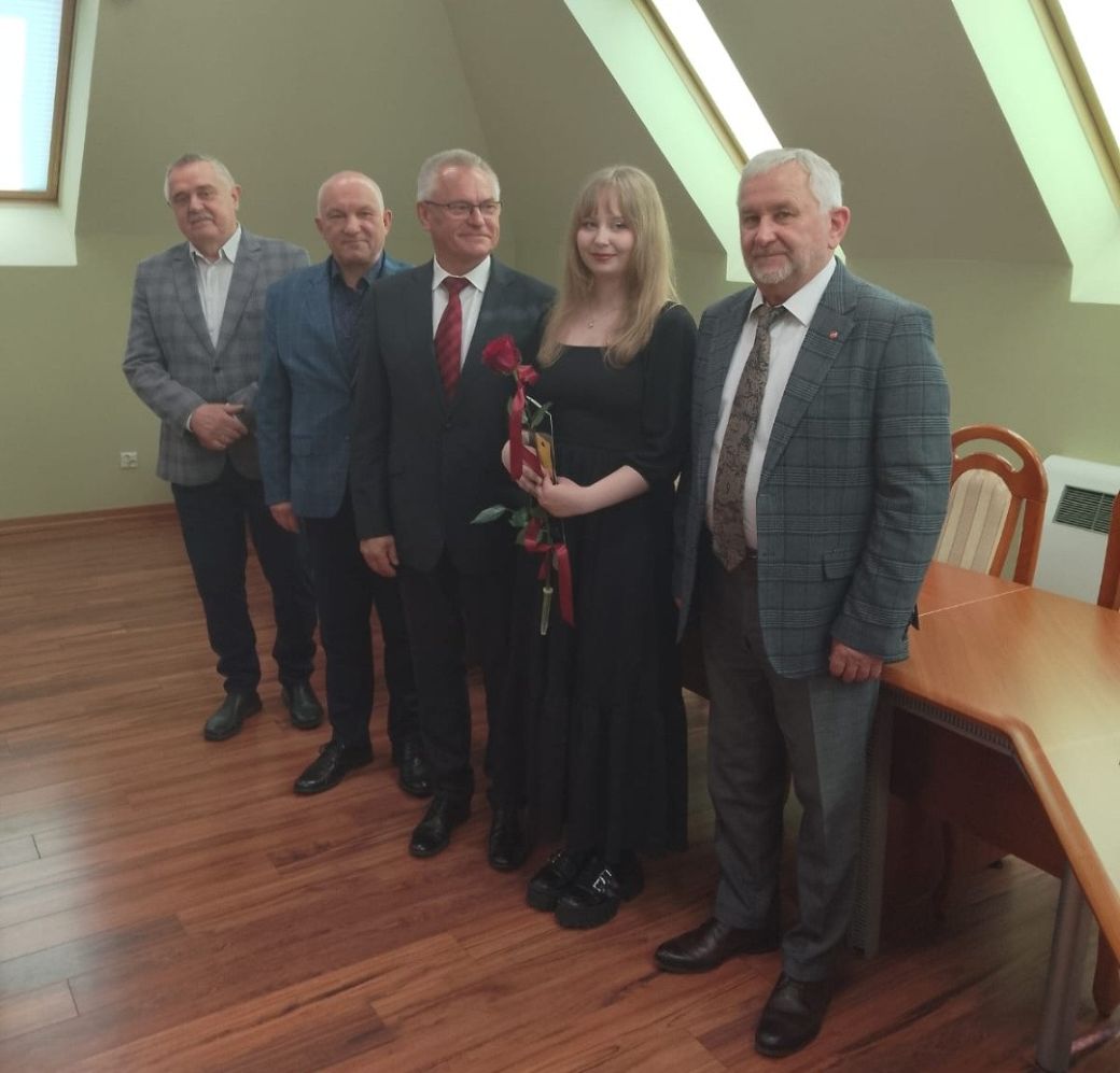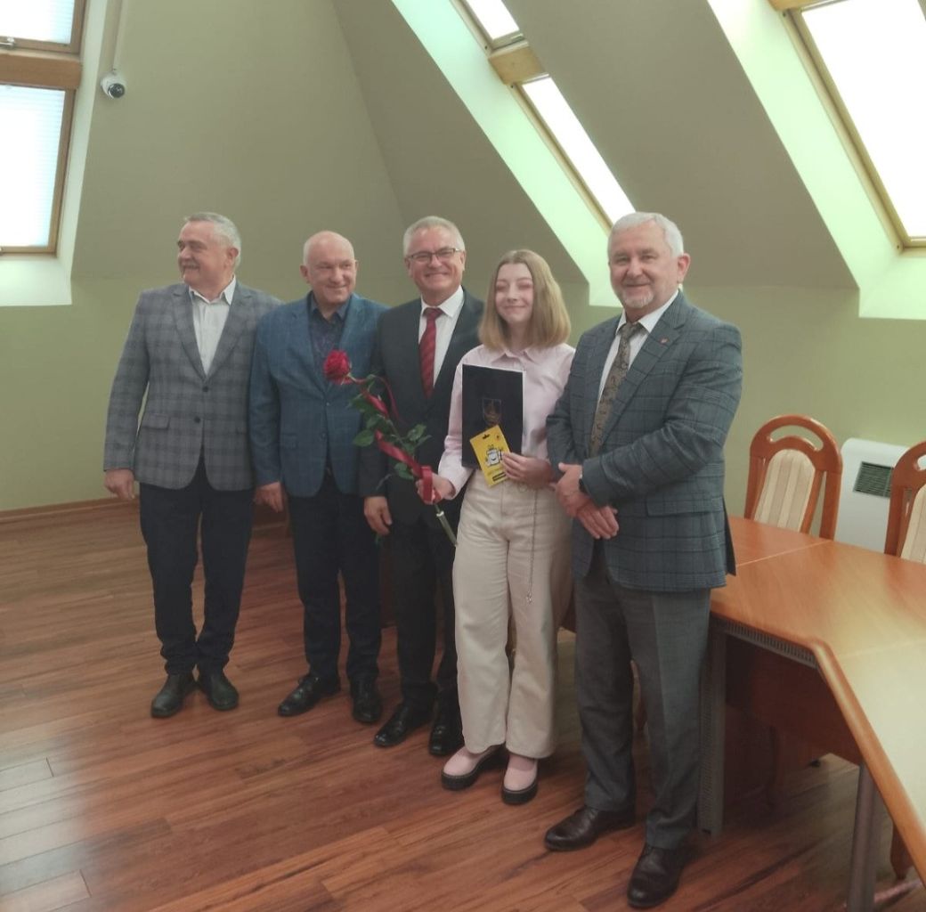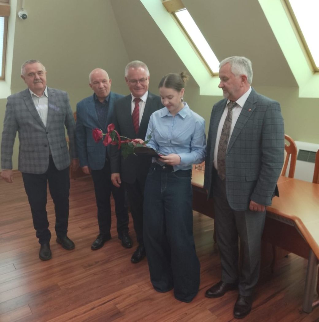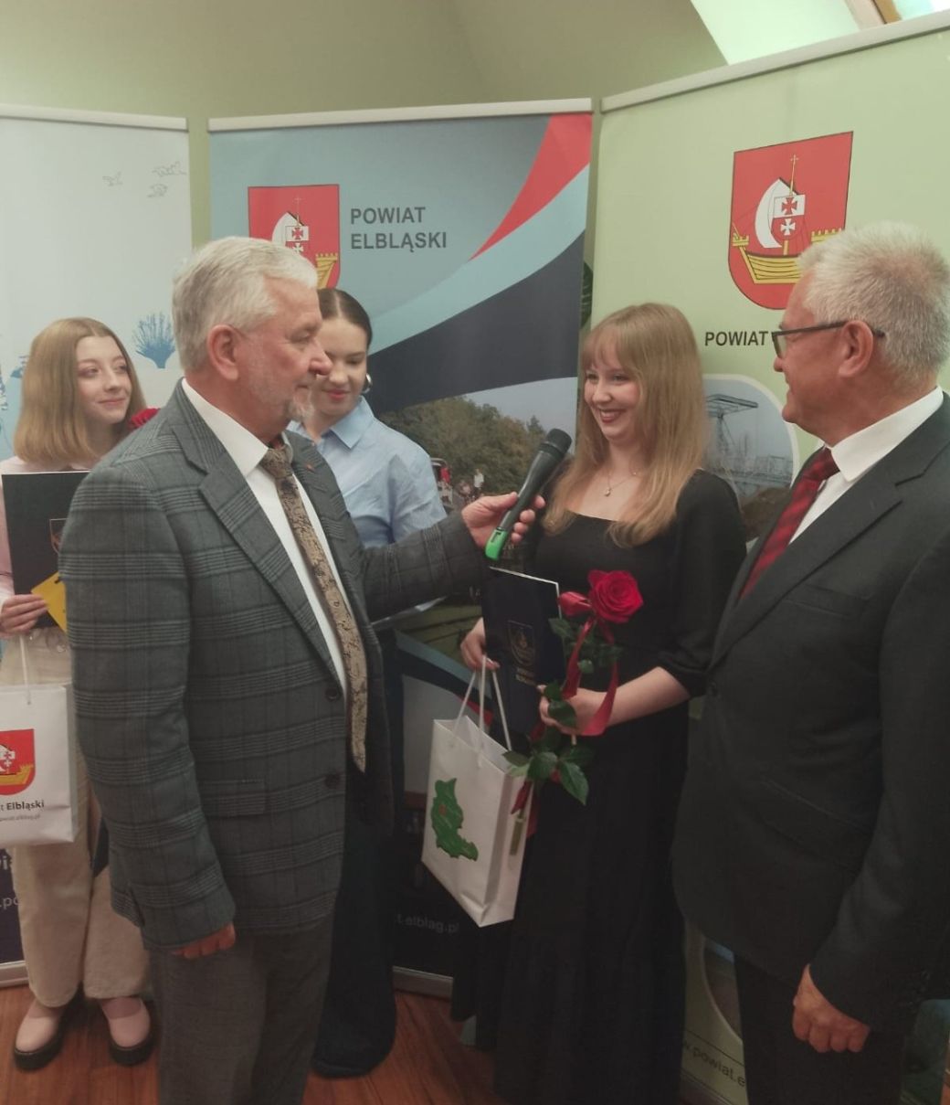 W dniu 27 maja 2025 r., podczas posiedzenia Zarządu Powiatu w Elblągu, Starosta Elbląski Maciej Romanowski wraz z Członkami Zarządu Powiatu w Elblągu p. Ryszardem Zającem, p. Jerzym Romanowskim oraz p. Jackiem Matukiewiczem wręczyli nagrody trzem uczennicom Liceum Sztuk Plastycznych w Gronowie Górnym, za zajęcie miejsc na podium w Konkursie plastycznym promującym Powiat Elbląski.