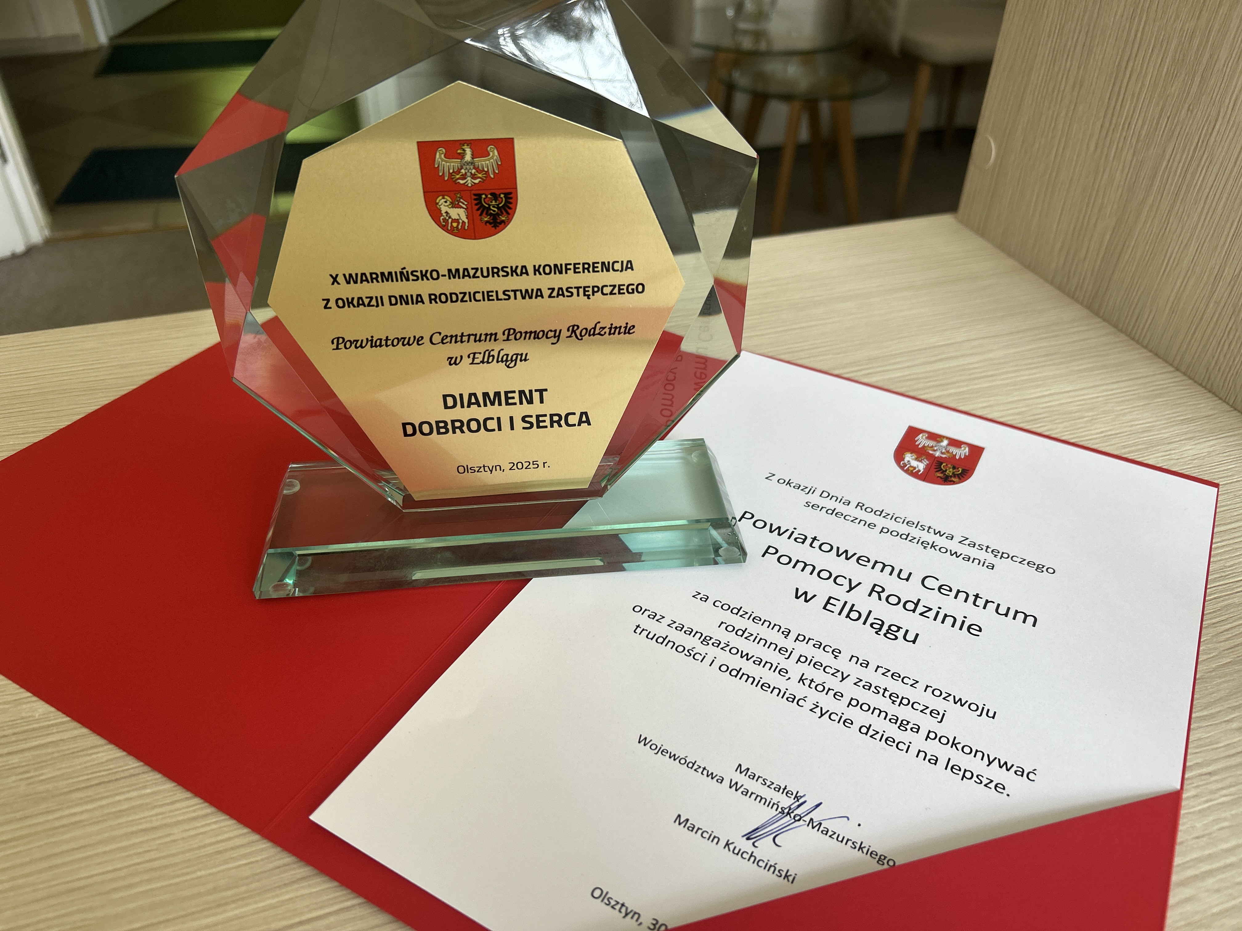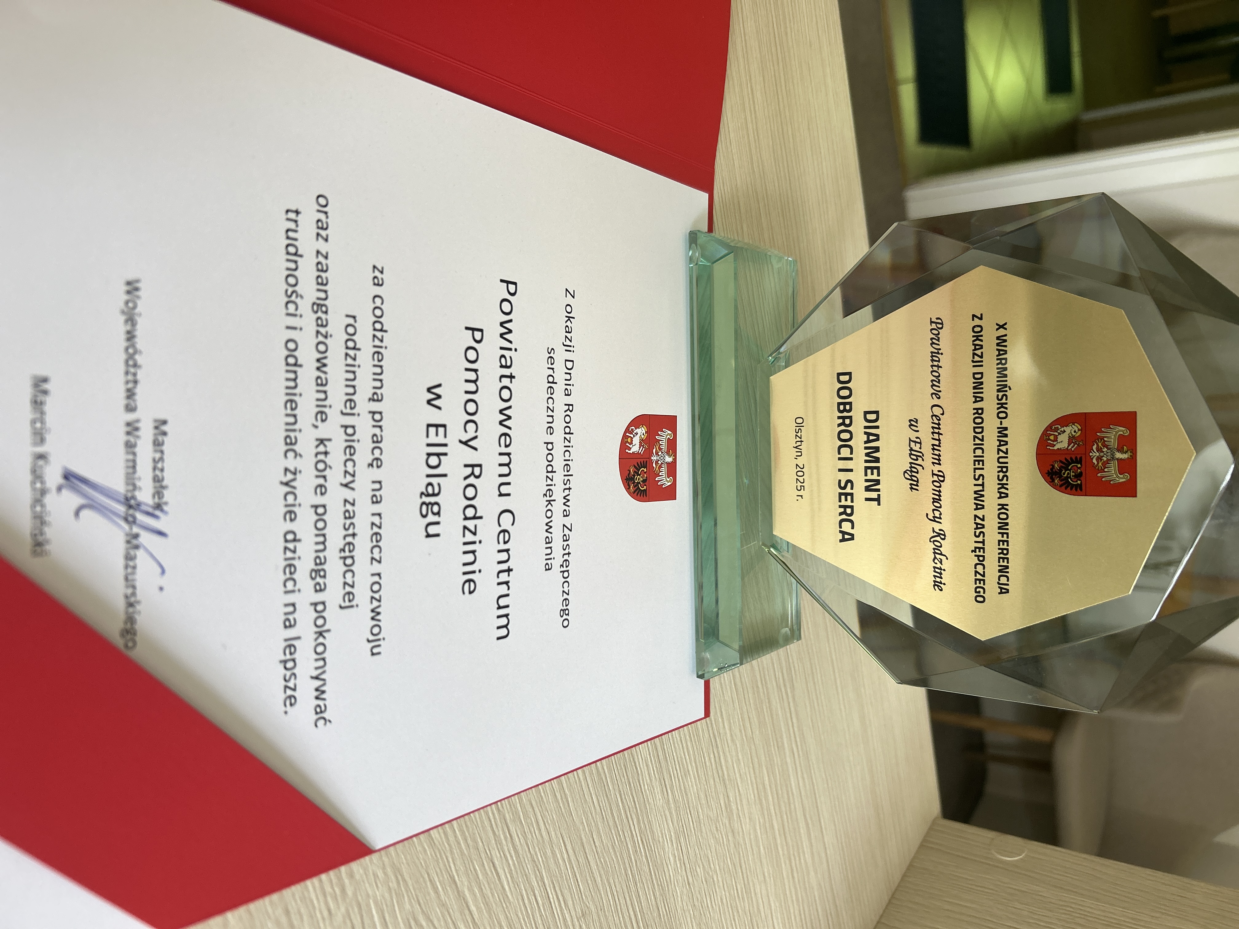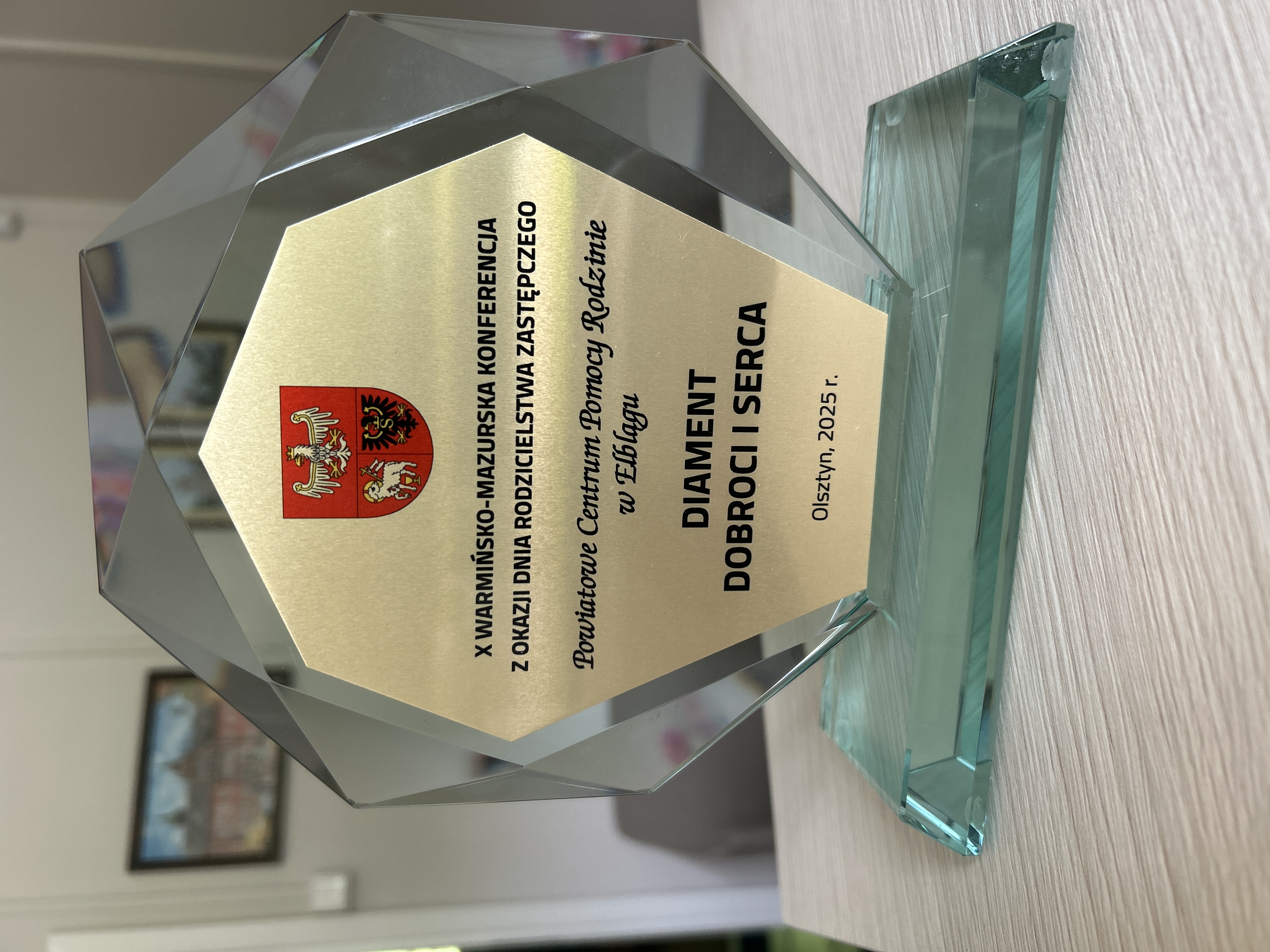 Powiatowe Centrum Pomocy Rodzinie w Elblągu otrzymało statuetkę “Diament Dobroci i Serca”! Dziękujemy za to wyróżnienie – to dla nas ogromna motywacja do dalszej pracy.
