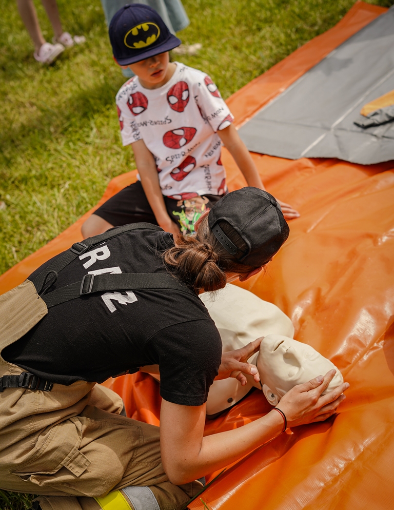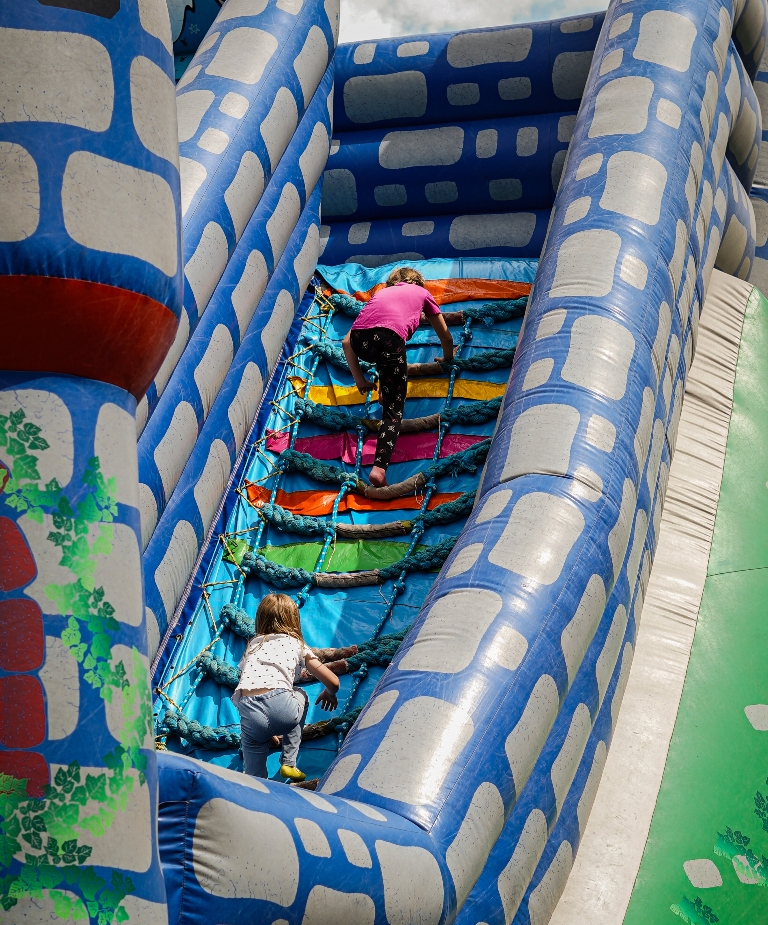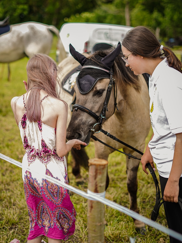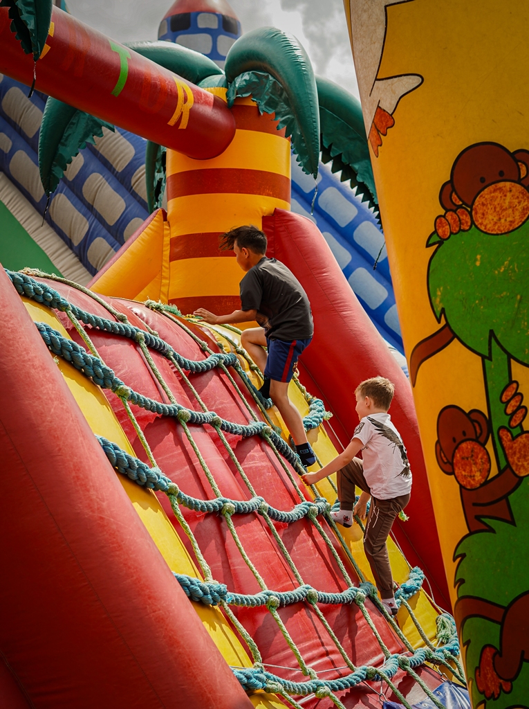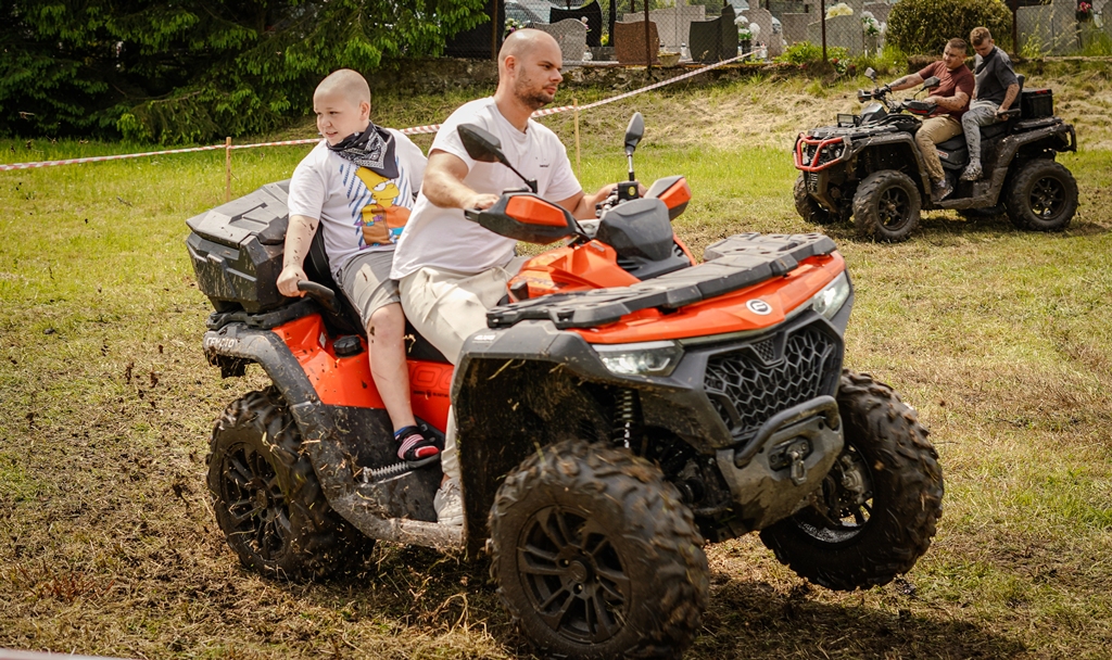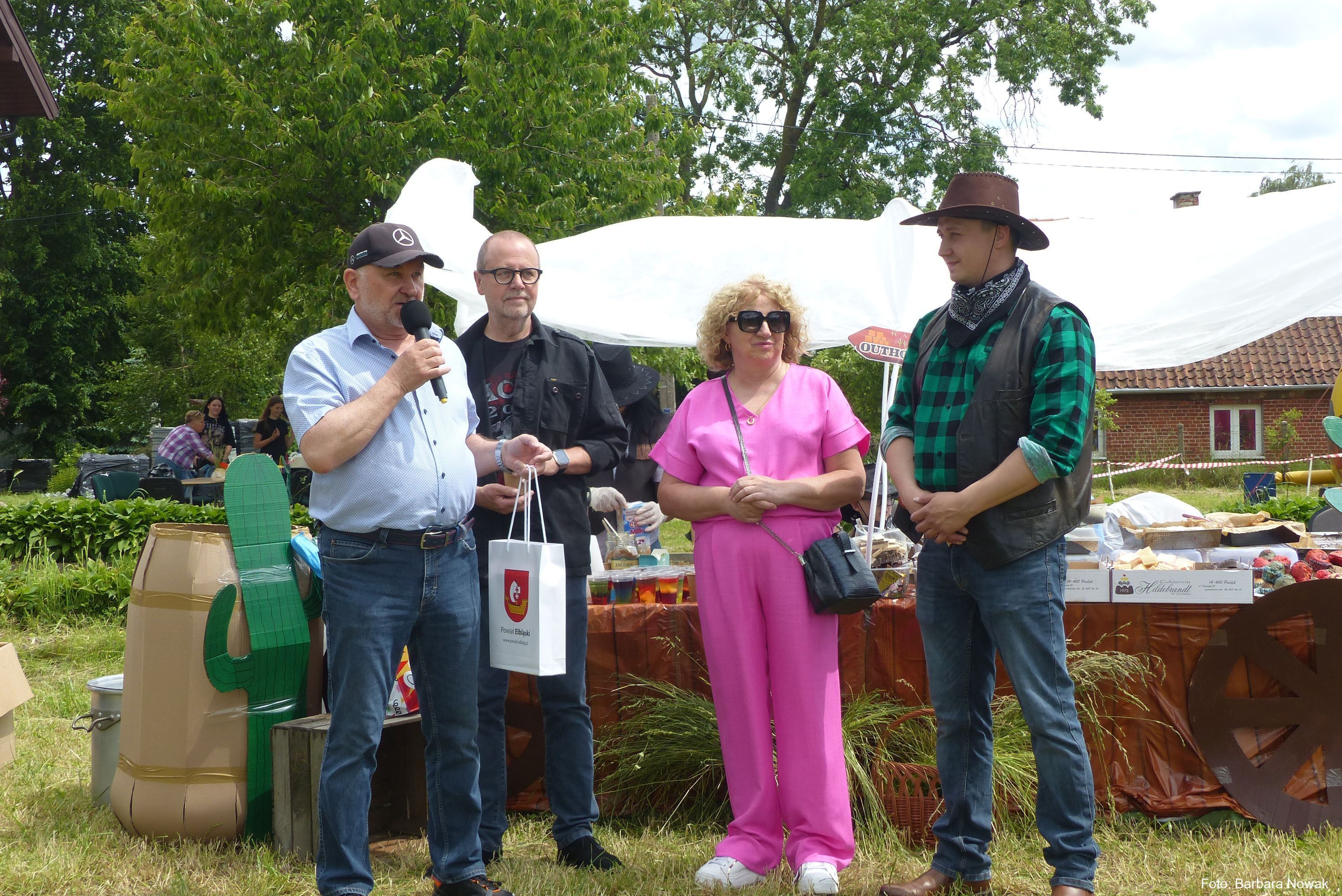 a na najbardziej wytrwałych po przejściu wszystkich zadań czekała nagroda. Oprócz wymienionych konkurencji (przeciąganie liny, rzut podkową, poszukiwacze złota, wyścig hobby horse, kostki z zadaniami, rzut lassem) była okazja by zjeść przepyszne mięso z grilla, kowbojską grochówkę, słodkie pyszności, a wszystko zagryźć owocami i zapić pyszną lemoniadą i prawdziwym domowym kompotem z rabarbaru. Warto wspomnieć również o wacie cukrowej i pop-cornie. Jednak to nie wszystko, można było porozmawiać z policjantami, sfotografować się na motocyklu policyjnym, odwiedzić stoisko przygotowane przez Straż Graniczną, postrzelać z paint balla, pojeździć wozem strażackim oraz nauczyć się resuscytacji. Absolutnym topem były możliwości przejażdżki pełnokrwistymi quadami 4x4 oraz w siodle prawdziwych koni. Nieco mniej adrenaliny potrzebne było do tego, aby pozjeżdżać z olbrzymich dmuchanych zamków, czy też do zrobienia sobie zdjęcia na ściance tematycznej w siodle „prawie” prawdziwego mustanga. Ponadto w autentycznej westernowej przyczepie można było postrzelać do puszek i wygrać wymarzonego pluszaka. Malowanie buziek, kolorowe warkoczyki, figurki z balonów, tatuaże i bańki mydlane również zagościły u nas w tym miłym dniu.