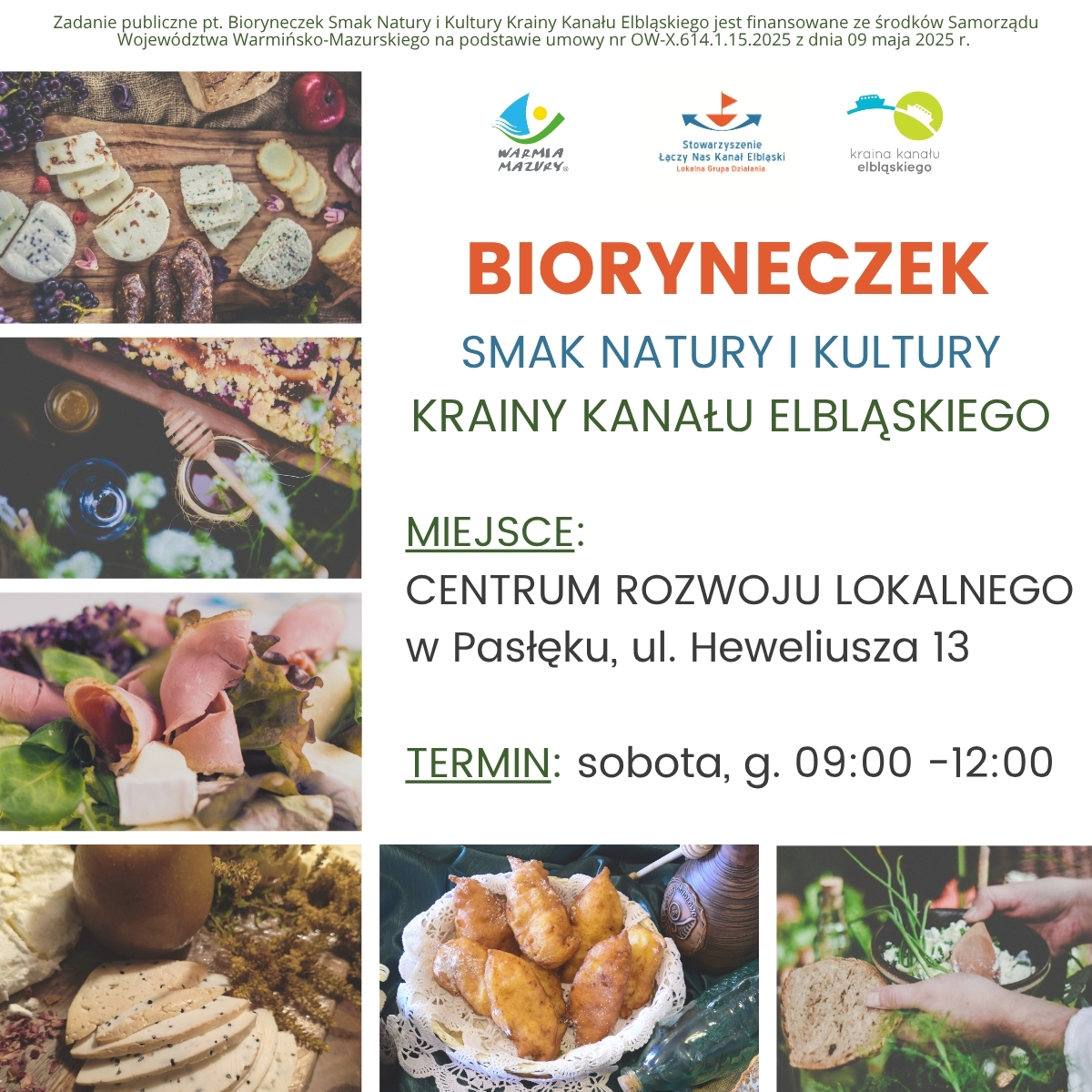 Stowarzyszenie Łączy Nas Kanał Elbląski Lokalna Grupa Działania zaprasza mieszkańców Pasłęka i okolic oraz turystów odwiedzających region na cykliczne wydarzenie o nazwie Bioryneczek – Smak Natury i Kultury Krainy Kanału Elbląskiego.
