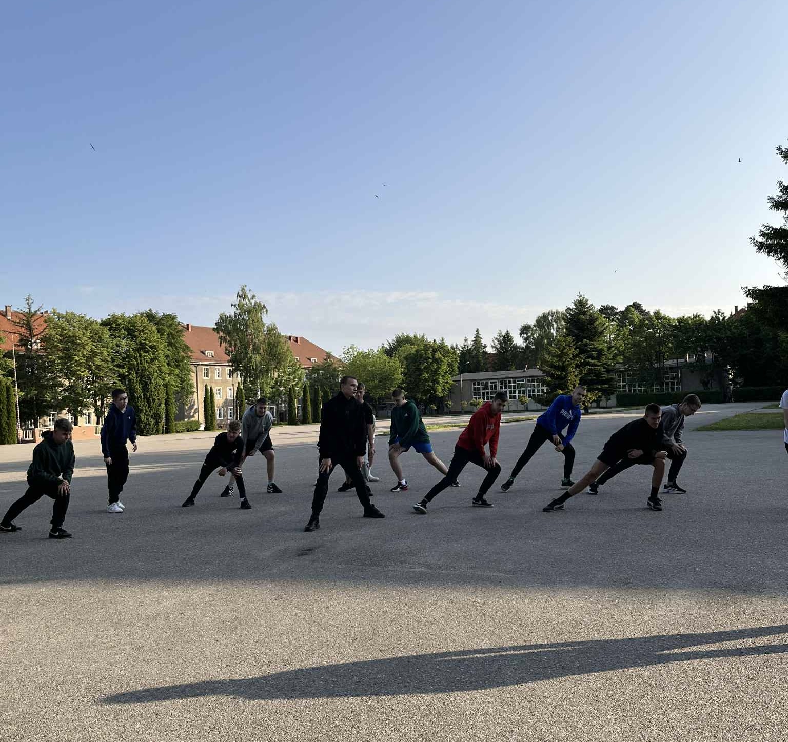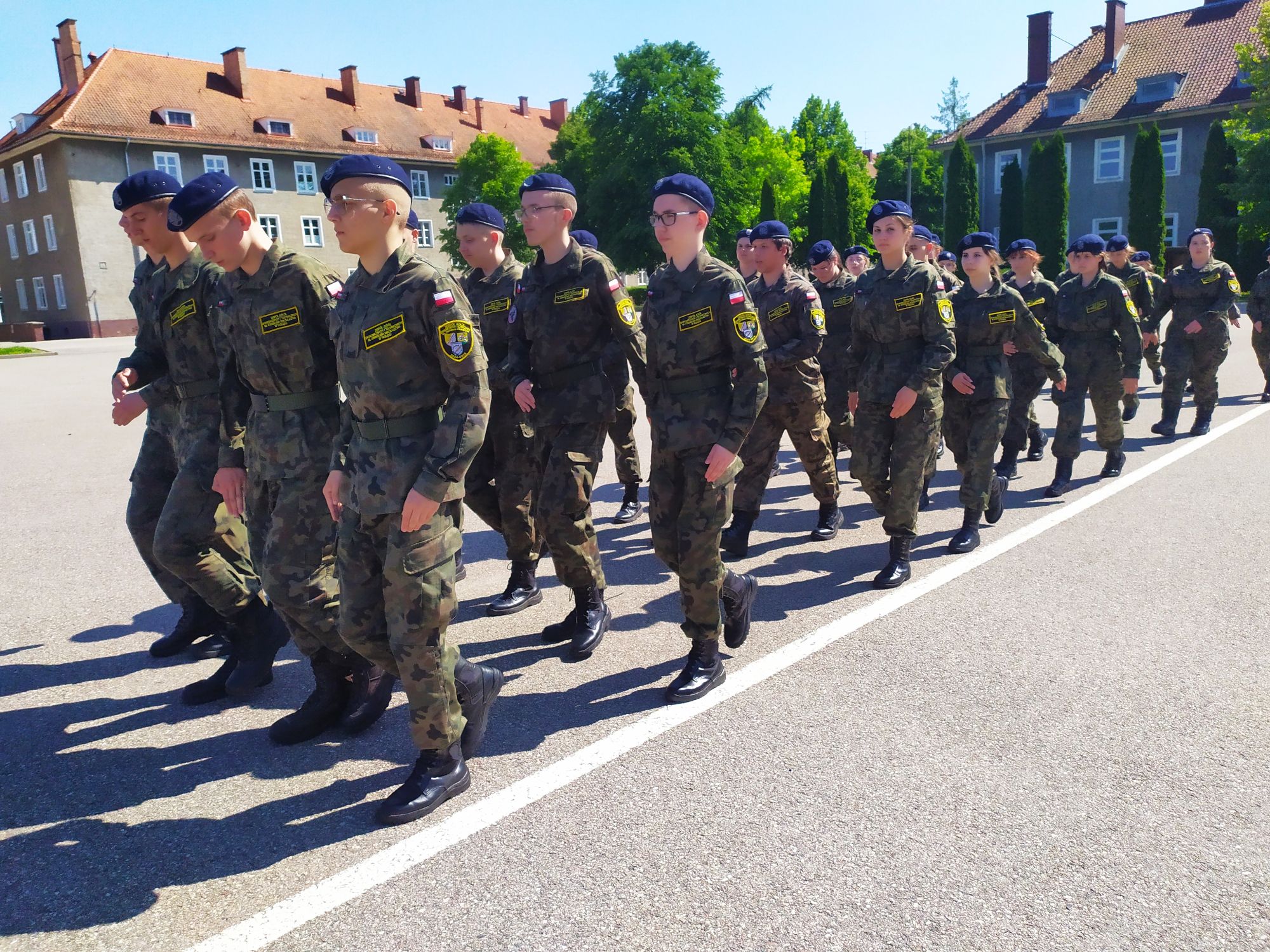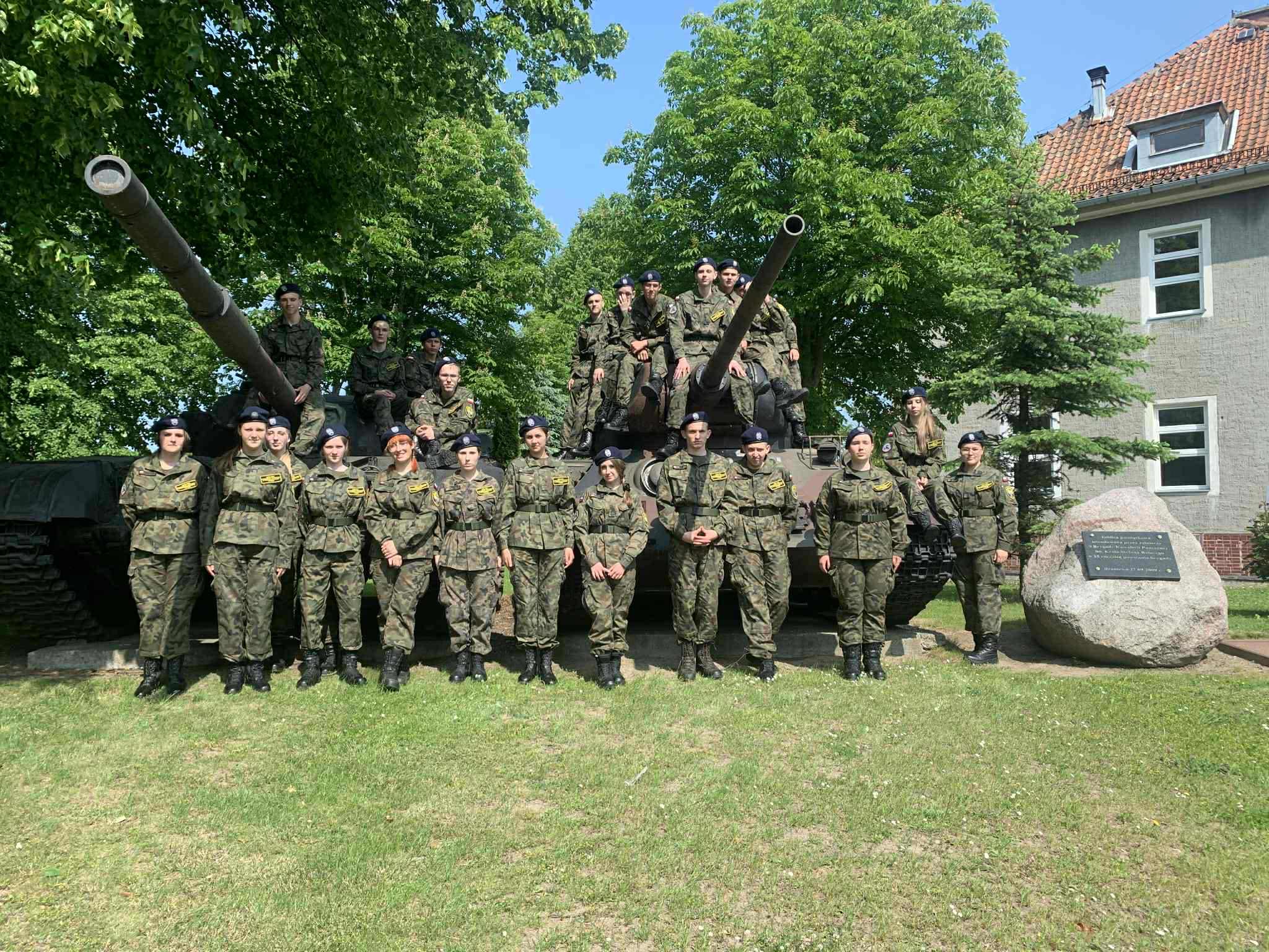 W poniedziałek, po przyjeździe kadeci zostali zakwaterowani w budynku koszarowym. Następnie spotkali się na Sali Tradycji Brygady z Szefem Szkolenia oraz kustoszem, który przedstawił historię Brygady. Już pierwszego dnia kadeci uczestniczyli w treningu musztry, zgodnie z planem szkolenia, a w godzinach popołudniowych odbyli trening na hali sportowej lub korzystali z basenu miejskiego. Wszyscy zostali zapoznani z regulaminem oraz porządkiem dnia. Każdy dzień rozpoczynał się pobudką o godz. 6.00., następnie - zaprawa fizyczna o godz. 6.30., trzy okrążenia jednostki (ponad 3 km). We wtorek odbyło się szkolenie teoretyczne z SERE, bardzo przydatne do szkolenia praktycznego, a potem - musztra i trening wykonywania zbiórek. Po obiedzie była możliwość skorzystania z basenu lub hali sportowej. W środę od rana kadeci strzelali z karabinka pneumatycznego z postawy stojącej. Zwyciężyła Kornelia KOŁESAR - 48 pkt/ na 50 możliwych, drugie miejsce zdobyła Julia WITTSTOCK - 47 pkt, a trzecie - Zuzanna KALAMARSKA - 42 pkt., po dogrywce z Mateuszem FILIPKIEM, który był czwarty. Po zajęciach na strzelnicy uczniowie udali się do parku wozów bojowych, aby zapoznać się z K-2, czyli nowoczesnym, pełnym elektroniki czołgiem BLACK PANTHER. Po obiedzie tradycyjnie - basen lub hala sportowa. Czwartek był bardzo intensywnym dniem. Rano dowieziono kadetów wojskowymi ciężarówkami na miejsce zawodów (mapa „BAUDA”), następnie - przemieszczenie plutonu na dużą odległość do Fromborka. Mimo burzy i deszczu, dzielni kadeci spisali się na medal. W niesprzyjających warunkach potrafili rozpalić ognisko. Potem - zwiedzanie „Panzervwerka nr 1 III Rzeszy” i poznanie zasad orientowania się w terenie wg mapy do biegu na orientację. Po pieczeniu kiełbasek odbył się drużynowy marszobieg na orientację. Zwyciężyła drużyna „BARANKÓW”, w składzie: Mateusz Filipek, Kacper Solnica /najlepszy nawigator/, Wiktor Jaroszewski i Oliwia Zięba. Drugie miejsce zajęła drużyna „FC Bambus”, a trzecie - zespół „MERCI”. Po męczącym biegu - wspólny marsz do Fromborka i po przerwie obiadowej powrót przez Garbinę do Braniewa. W drodze powrotnej znowu spotkała nas burza. Wszyscy byli przemoczeni, ale ciepły prysznic postawił na nogi. Około 25 – kilometrowa trasa i deszcz okazały się chrztem bojowym, który wszyscy zaliczyli na piątkę.
