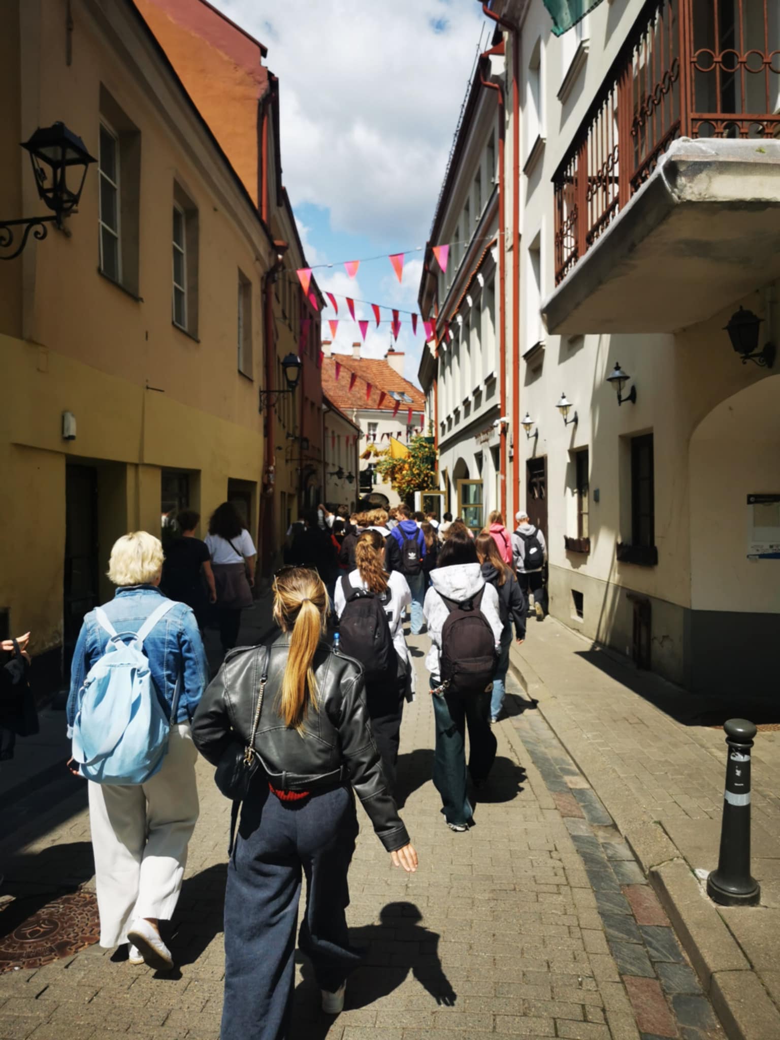 Drugi dzień uczniowie spędzili na Litwie. Rano zwiedzili zamek w Trokach - położony malowniczo na wyspie. W Wilnie zobaczyli Ostrą Bramę, cmentarz na Rossie, starówkę. Atrakcją było wejście na Górę Trzech Krzyży, skąd można było podziwiać panoramę miasta. Nie zabrakło też czasu wolnego na pamiątki i spacer po stolicy Litwy.