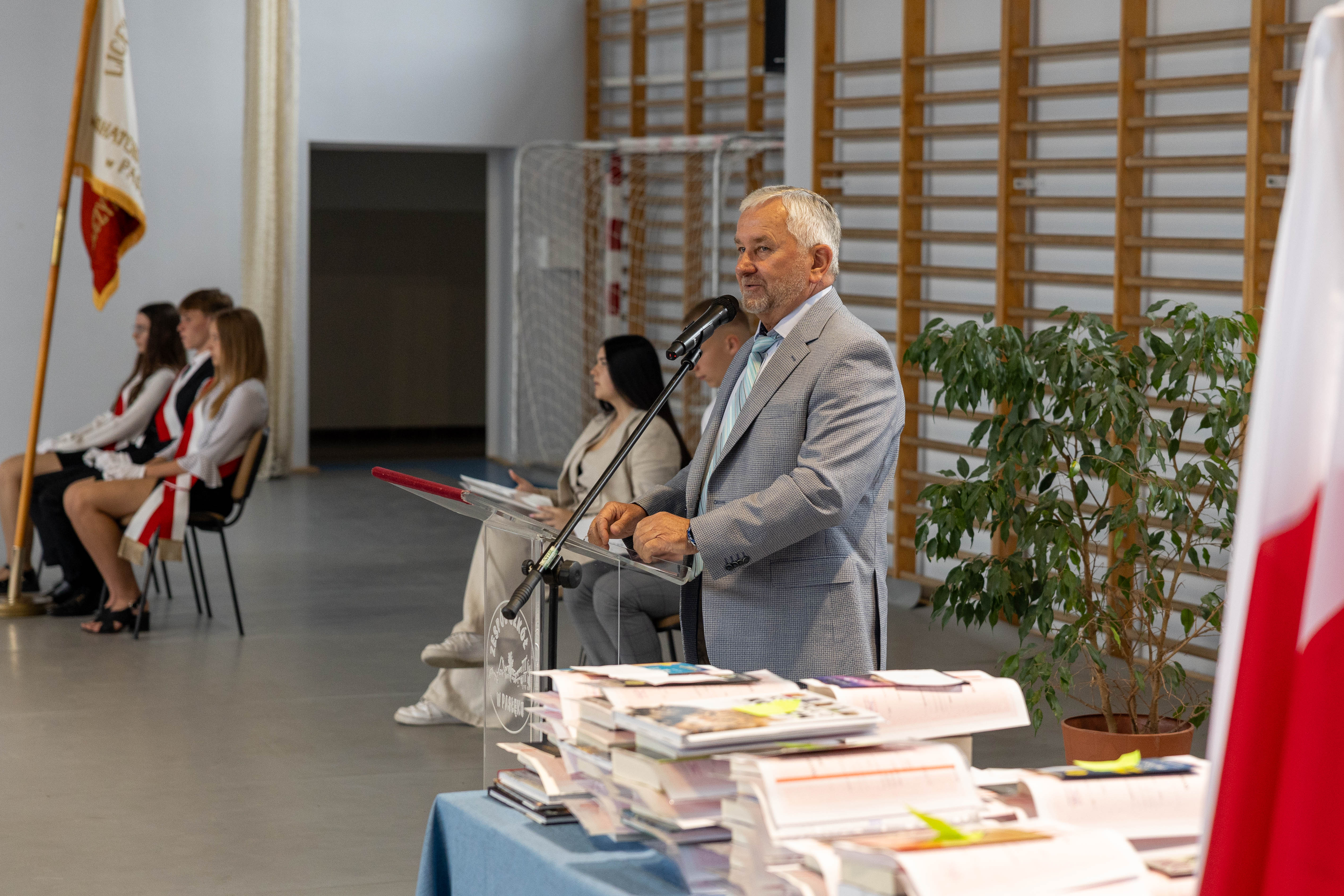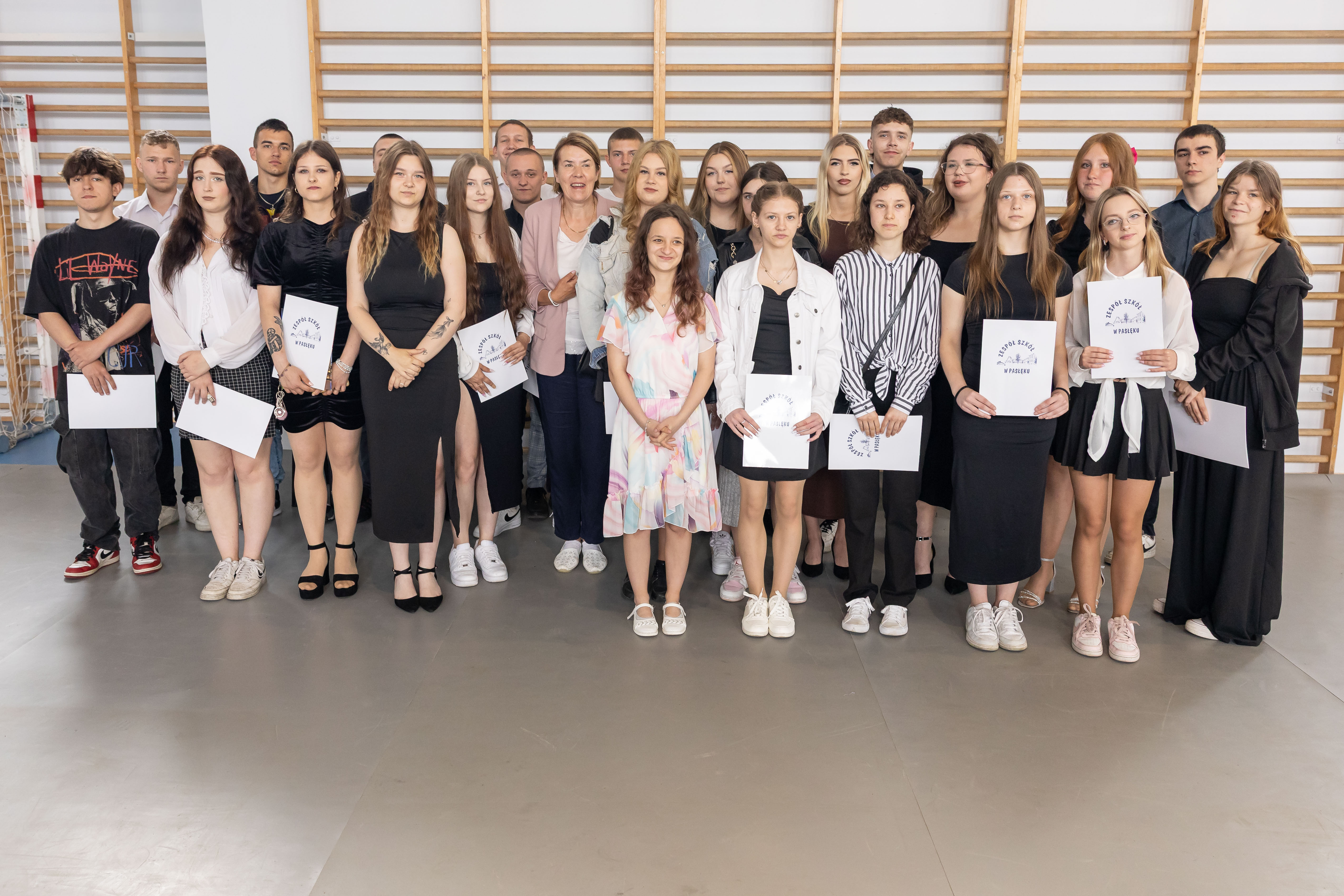 W piątek, 27 czerwca, w Zespole Szkół w Pasłęku odbyły się uroczystości zakończenia roku szkolnego. Jako pierwsi swoje świadectwa i gratulacje odebrali uczniowie Branżowej Szkoły I stopnia. Następnie świętowali uczniowie Liceum i Technikum. W wydarzeniu uczestniczyli m.in. Starosta Powiatu Elbląskiego pan Maciej Romanowski, Burmistrz Pasłęka pani Elżbieta Wasiuk, Komendant Komisariatu Policji w Pasłęku pani podinspektor Agnieszka Bielewicz-Piechowiak oraz członek Rady Rodziców pan Wiesław Grzanka. Podczas uroczystości uczniowie z najwyższymi wynikami w nauce odebrali świadectwa z wyróżnieniem oraz nagrody książkowe. Wręczała je dyrekcja szkoły: dyrektor pani Joanna Majewska, wicedyrektor pani Maria Kizyk oraz wicedyrektor pan Tomasz Rozenbajgier.