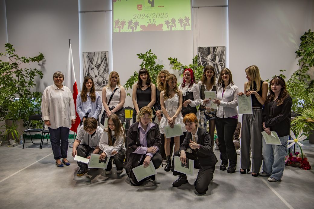 Podczas uroczystości wręczono również nagrody artystyczne wielu uczniom, którzy w minionym roku szkolnym wyróżnili się twórczo i osiągali sukcesy w konkursach o zasięgu lokalnym, ogólnopolskim i międzynarodowym. Wyróżnieni zostali także nauczyciele prowadzący - mentorzy, których pasja, zaangażowanie i opieka artystyczna miały nieoceniony wpływ na rozwój młodych twórców.
