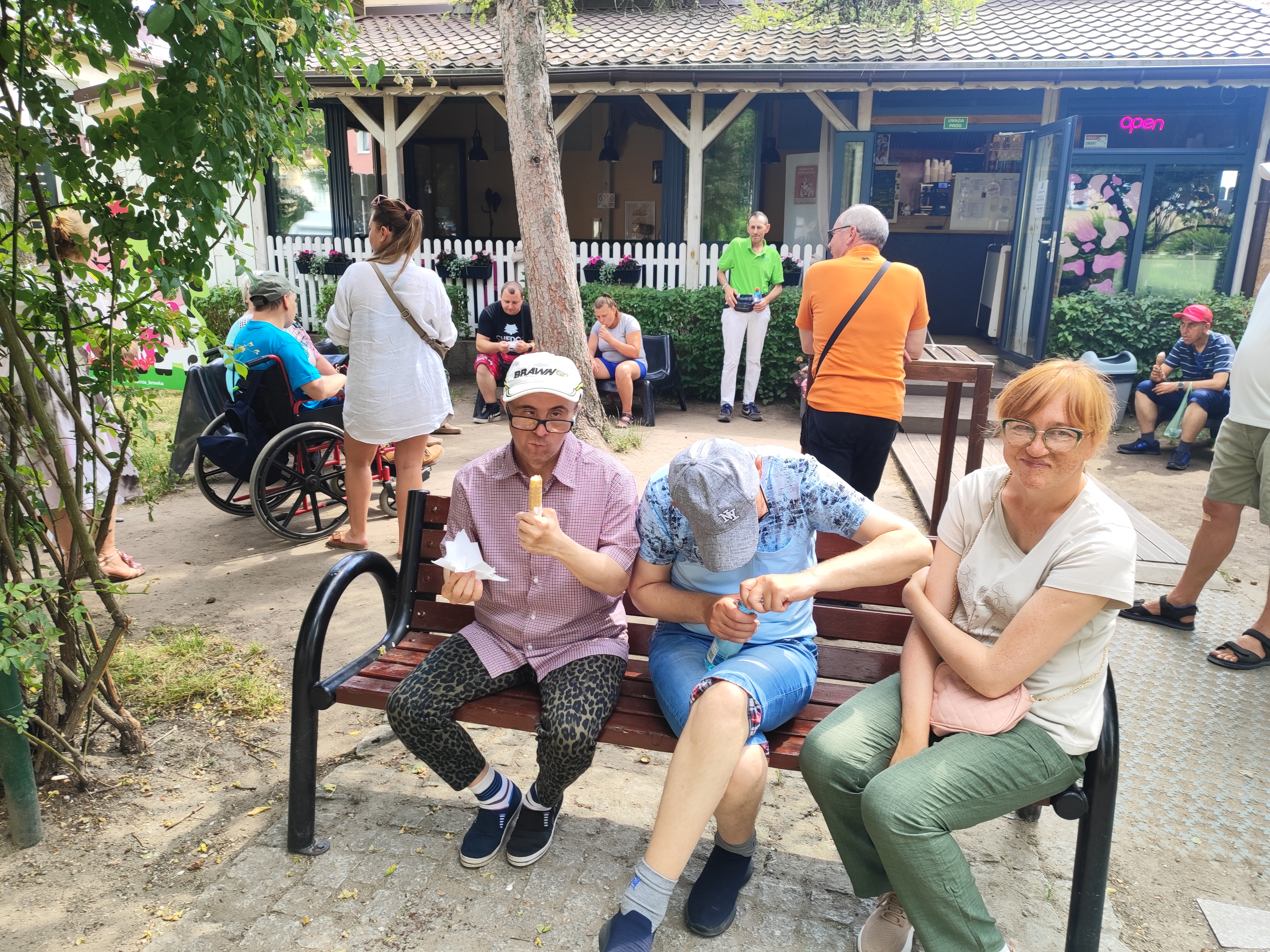 Podczas wyjścia uczestnicy mieli okazję samodzielnie dokonać zakupu lodów, słonych przekąsek, ubrań oraz drobnych gadżetów, co stanowiło element treningu budżetowego – planowania wydatków i zarządzania posiadanymi środkami finansowymi. Nasi podopieczni ćwiczyli także kompetencje społeczne, takie jak: komunikacja z personelem punktów gastronomicznych, dokonywanie własnych wyborów, korzystanie z przestrzeni publicznej.