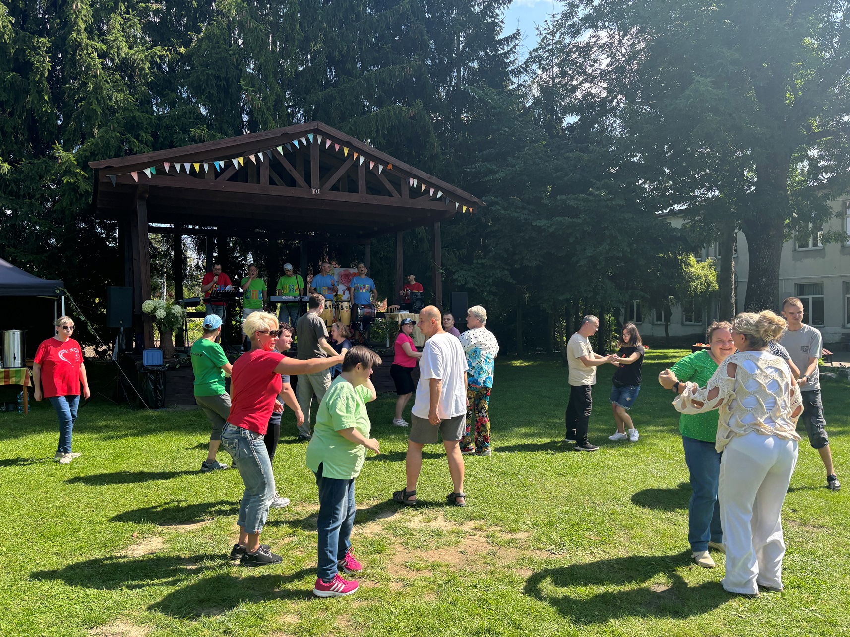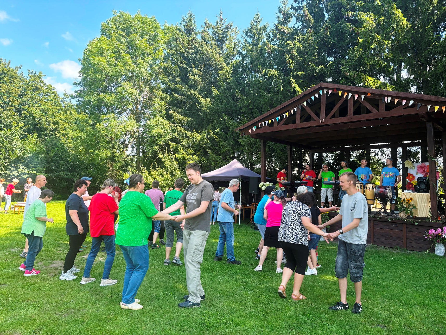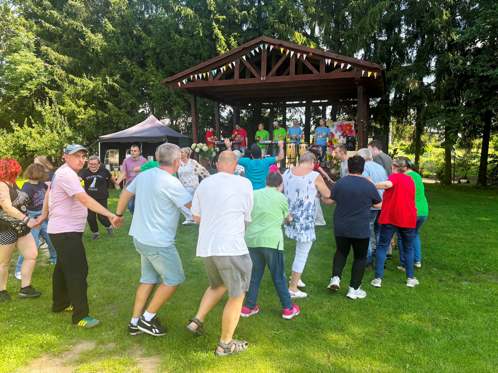 Podczas wydarzenia na scenie wystąpił zespół muzyczny „Szwagry” z WTZ naszych gości, który swoim energetycznym koncertem porwał publiczność i wprowadził wszystkich w doskonały nastrój. Po części artystycznej uczestnicy zasiedli przy ognisku, dzielili się opowieściami, śpiewali piosenki i cieszyli się wspólnym czasem na łonie natury. Nie zabrakło także aktywności sportowych– gry i zabawy sprzyjały integracji, zdrowej rywalizacji i dobrej zabawie.