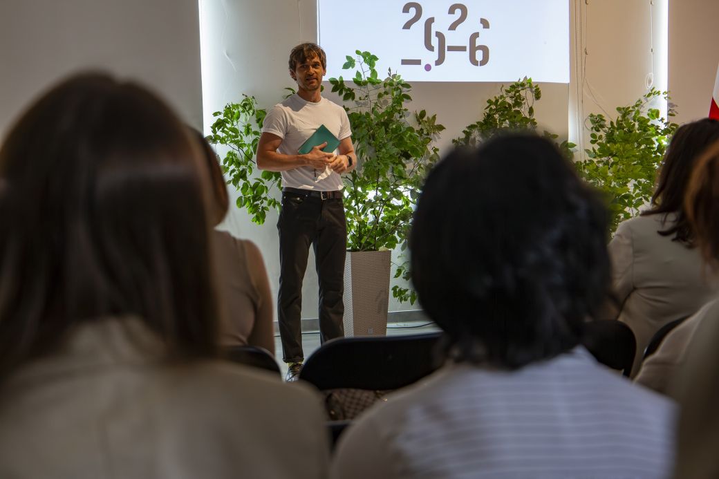 Niezwykle inspirującym momentem był wykład inauguracyjny gościa specjalnego dr. Piotra Skowrona z Pracowni sitodruku Akademii Sztuk Pięknych w Łodzi, który podzielił się z młodzieżą refleksjami o sztuce oraz własnej drodze artystycznej. Jego słowa stały się dla wielu uczniów zaproszeniem do odwagi w poszukiwaniu własnych dróg twórczych.