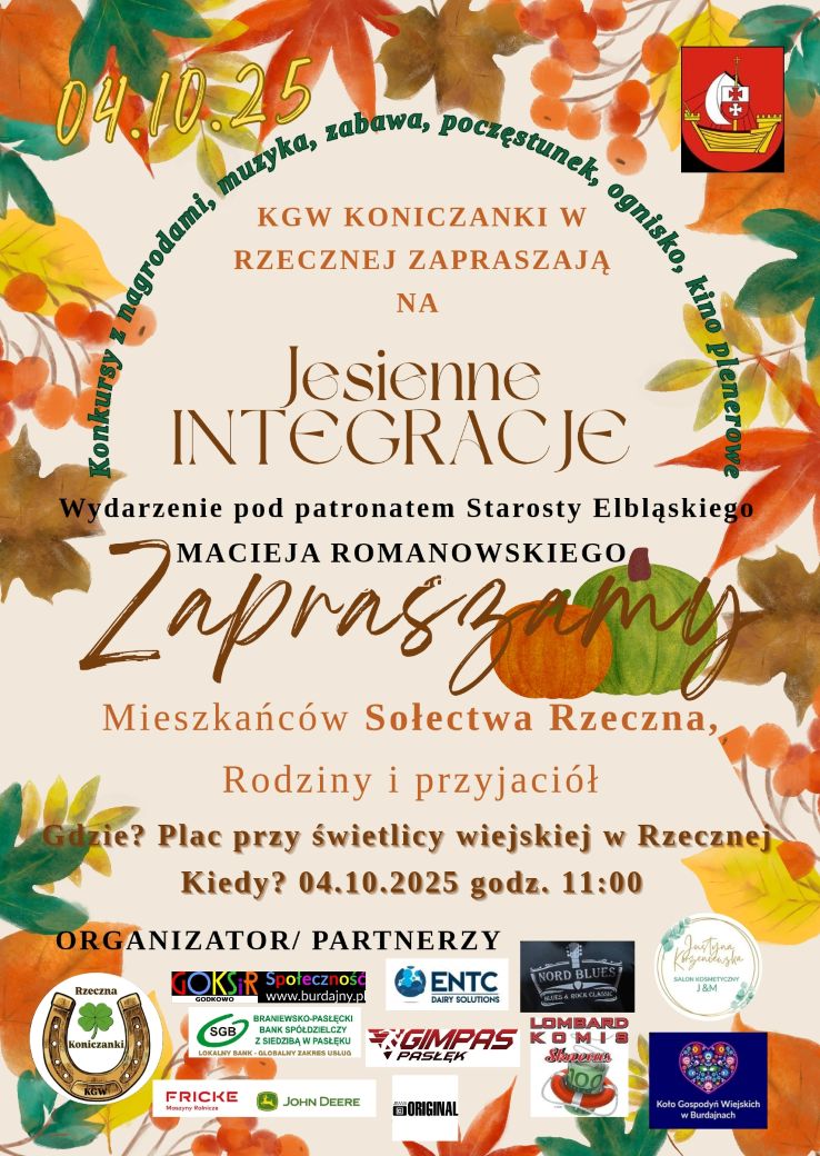 Zapraszamy wszystkich mieszkańców – małych i dużych – na wyjątkowe, pełne radości Jesienne Integracje w Rzecznej!