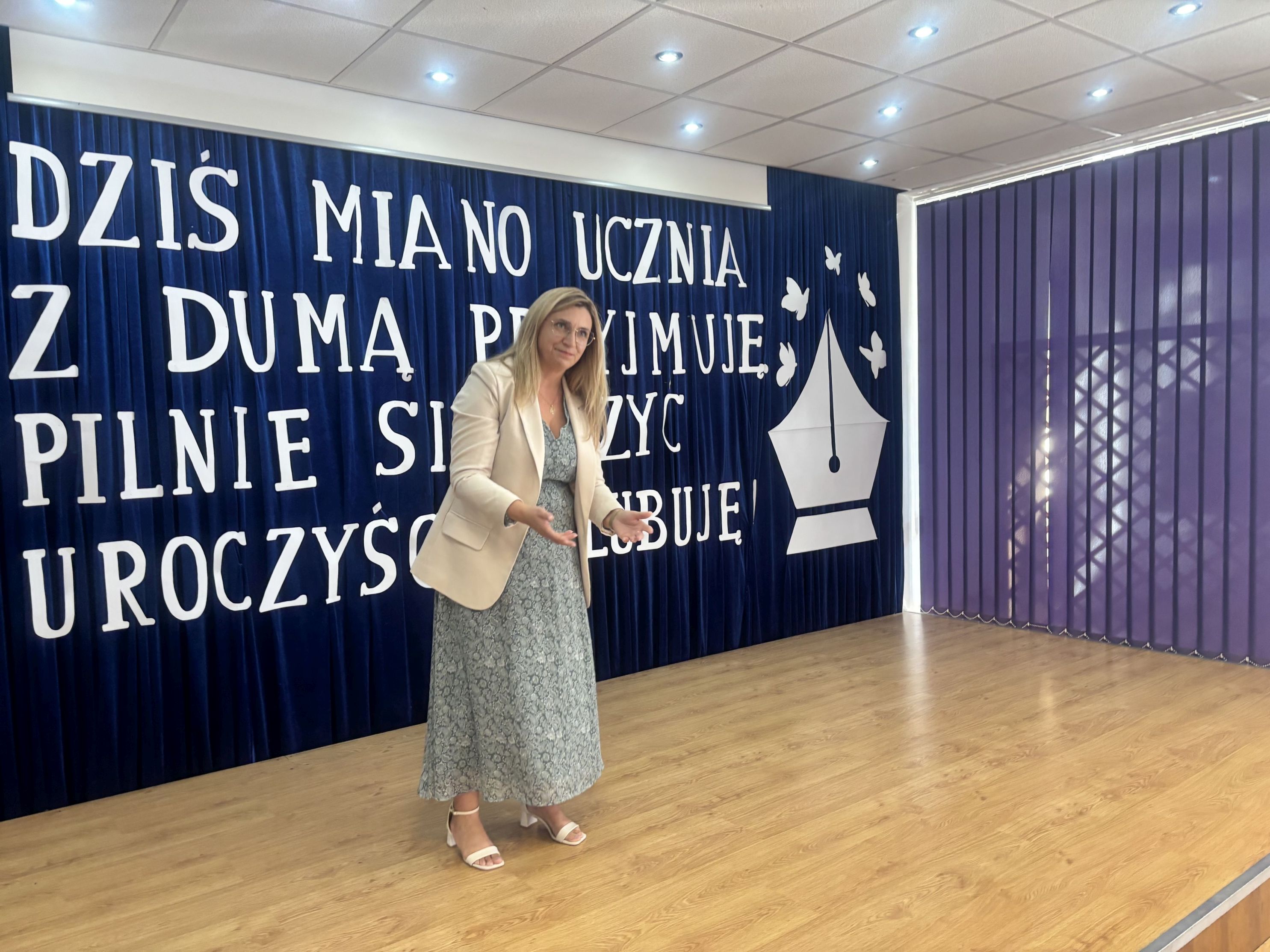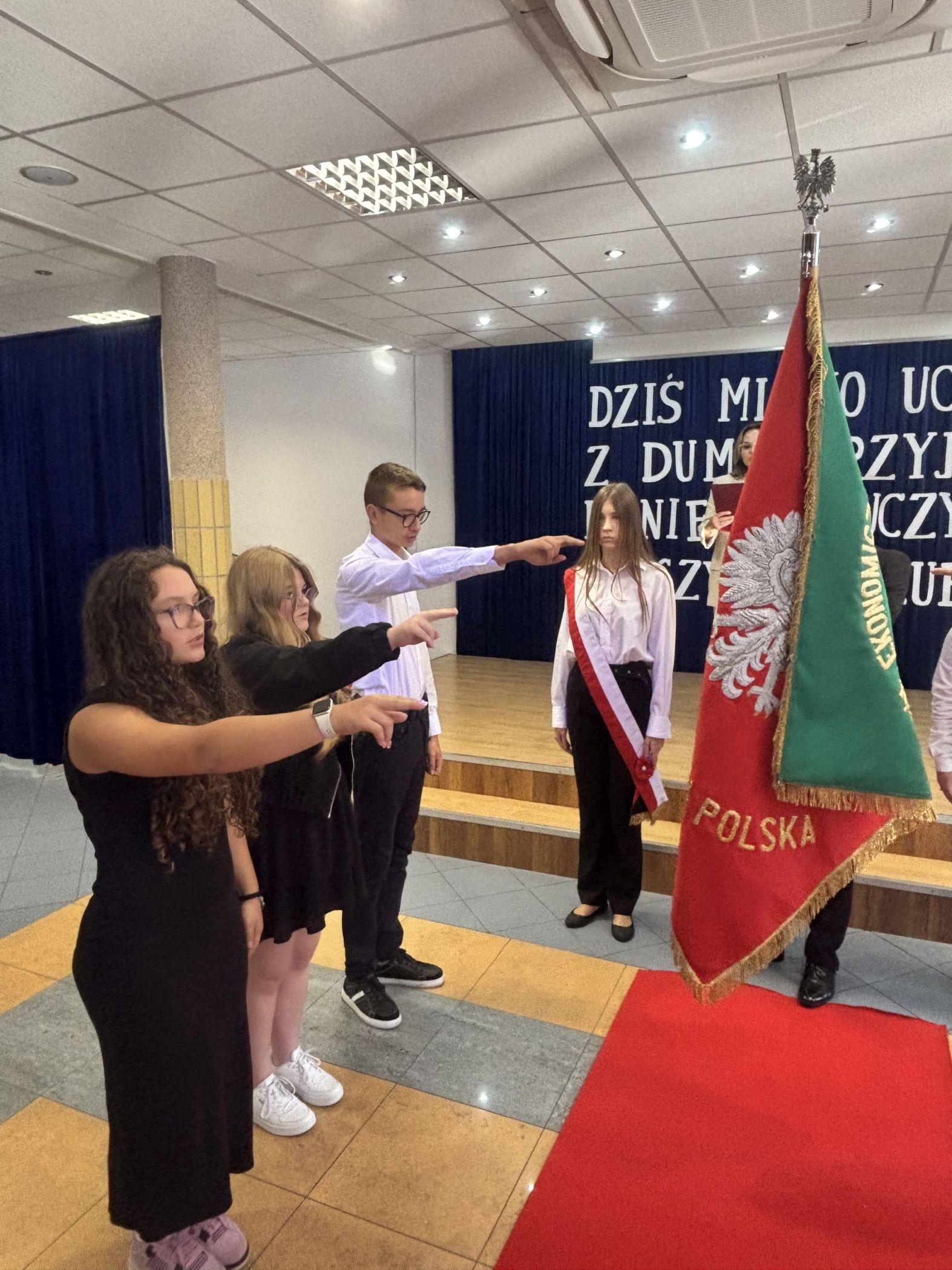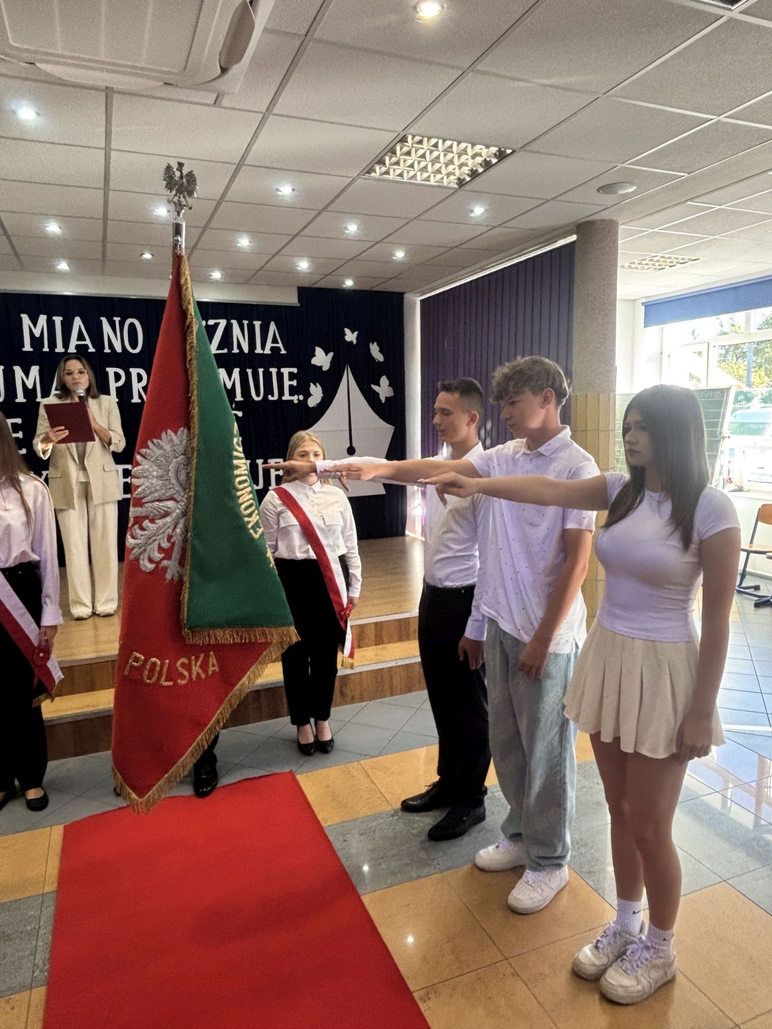 Do społeczności szkolnej oficjalnie dołączyli uczniowie liceum - oddział przygotowania wojskowego wraz z wychowawcą p. A. Wołosz, technikum - technik agrobiznesu i technik żywienia i usług gastronomicznych z wychowawcą p. M. Cytrycką oraz branżowej szkoły I stopnia - mechanik pojazdów samochodowych i mechanik - operator pojazdów i maszyn rolniczych wraz z wychowawcą p. R. Koszykiem. Uroczystość rozpoczęła pani wicedyrektor Lidia Zawarczyńska, która serdecznie powitała młodzież w murach ZSEiT, podkreślając, jak ważna jest jej obecność w szkole. Najważniejszym momentem wydarzenia było ślubowanie na sztandar, które uczyniło pierwszoklasistów pełnoprawnymi członkami społeczności ZSEiT.
