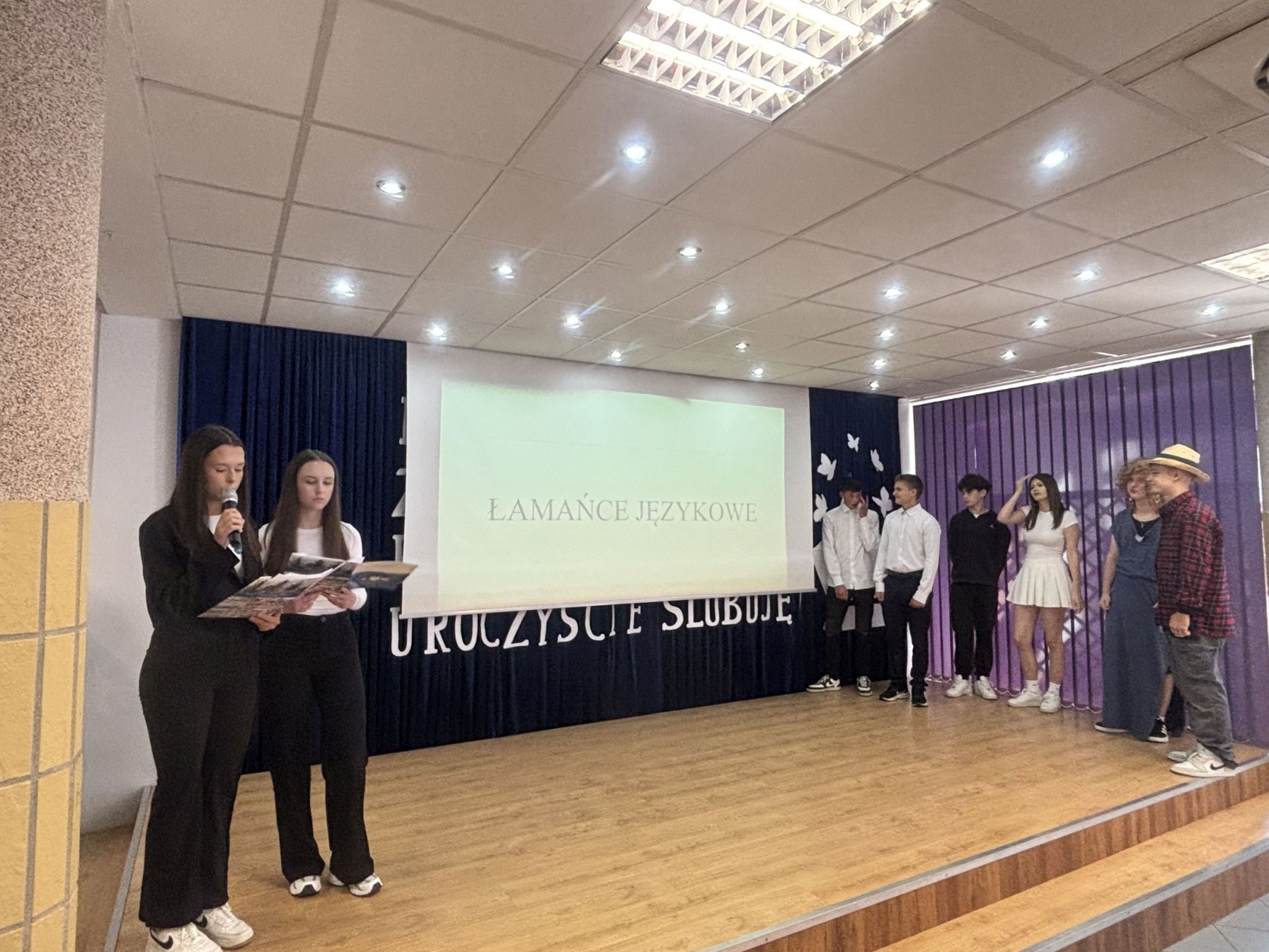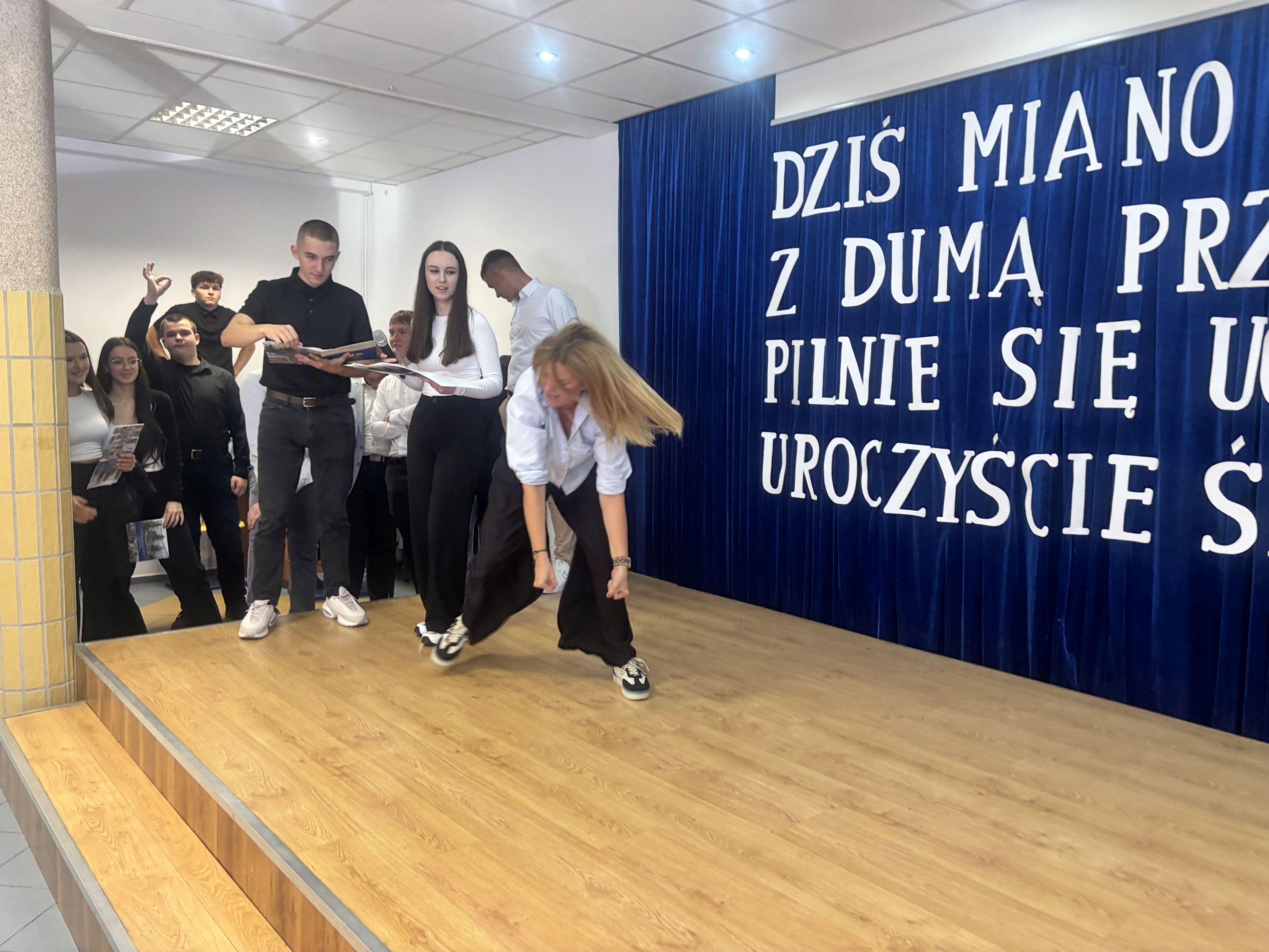 Po części oficjalnej nadszedł czas na dobrą zabawę. Klasa II TA/TG, pod czujnym okiem wychowawczyni p. M. Kucińskiej, przygotowała serię zabawnych konkurencji. Nie zabrakło śmiechu, rywalizacji i ogromnych pokładów kreatywności. Atmosfera wydarzenia była pełna pozytywnej energii, a pierwszoklasiści wraz z wychowawcami z entuzjazmem przyjęli wyzwania, jakie przygotowali dla nich starsi koledzy. Od tego dnia uczniowie klas pierwszych stali się pełnoprawnymi członkami rodziny ZSEiT.