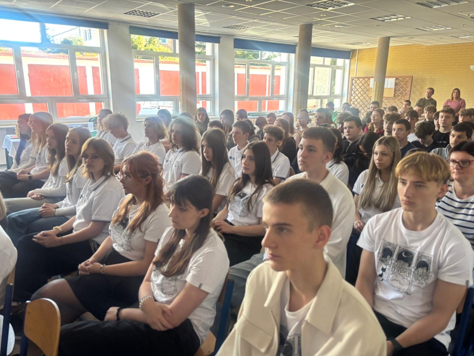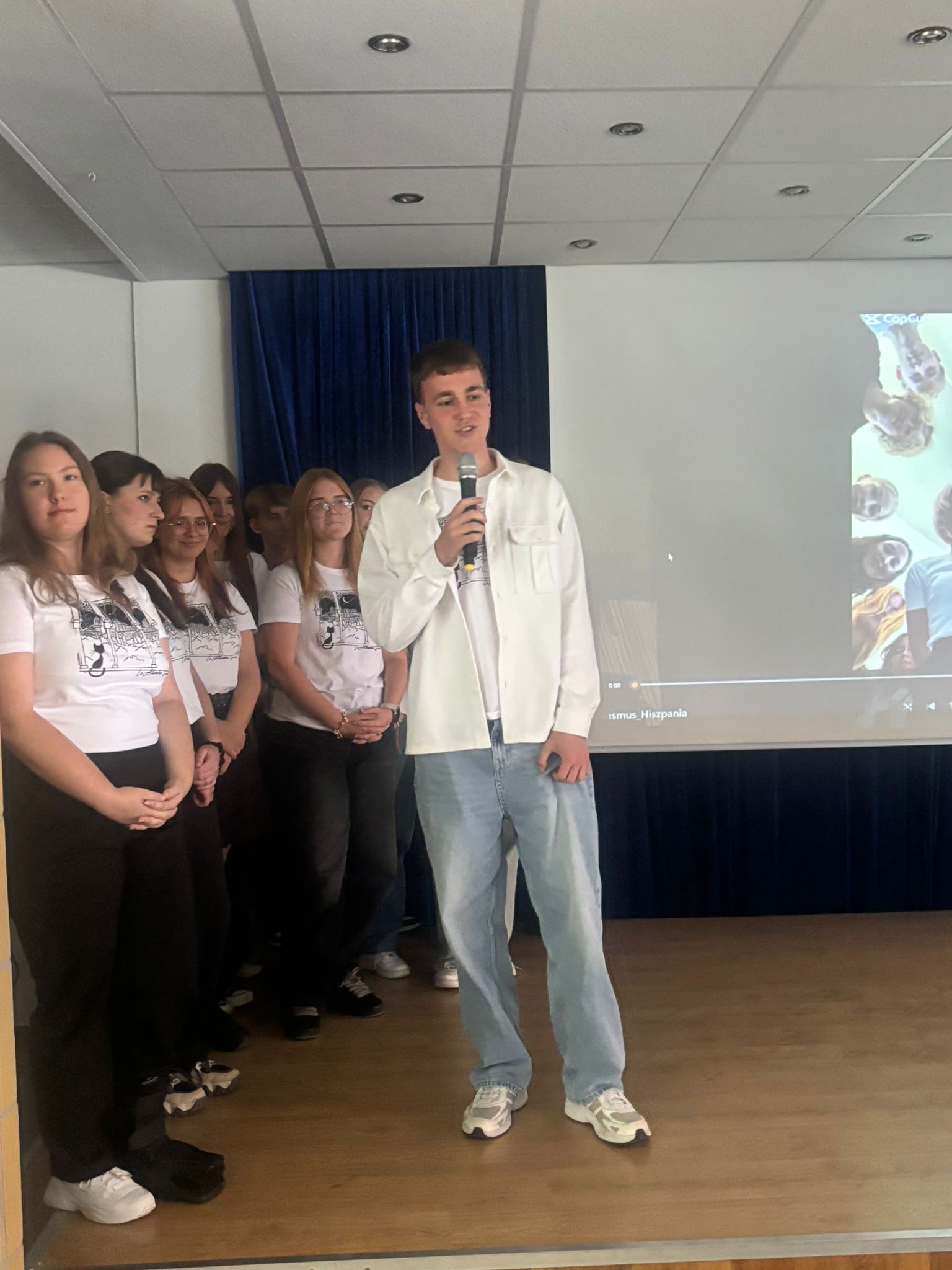 Nie zabrakło również osobistych relacji uczestników. Uczniowie dzielili się wrażeniami z pobytu – opowiadali o pracy w międzynarodowym środowisku, możliwościach doskonalenia języka obcego, odkrywaniu nowych kultur i smaków oraz o zdobytych kompetencjach zawodowych. Całość uatrakcyjnił mini wywiad, w którym młodzież odpowiadała na pytania prowadzącego.