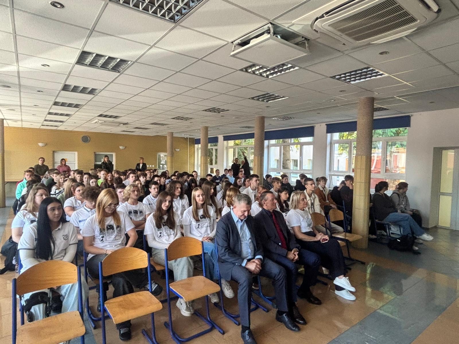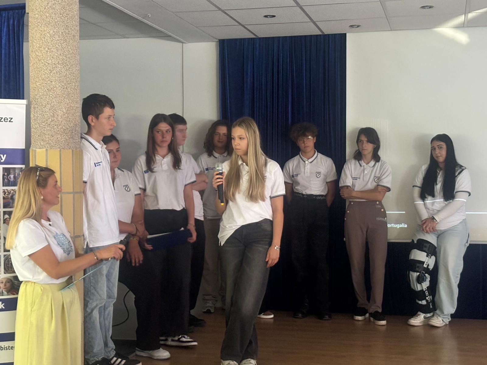 Spotkanie rozpoczęło się od powitania gości. Koordynator projektu otworzył uroczystość, przedstawiając główne cele przedsięwzięcia oraz jego znaczenie dla rozwoju uczniów i całej społeczności szkolnej. Przypomniano ideę programu Erasmus+ oraz miejsca odbywania zagranicznych staży – Lizbonę w Portugalii i Granadę w Hiszpanii.