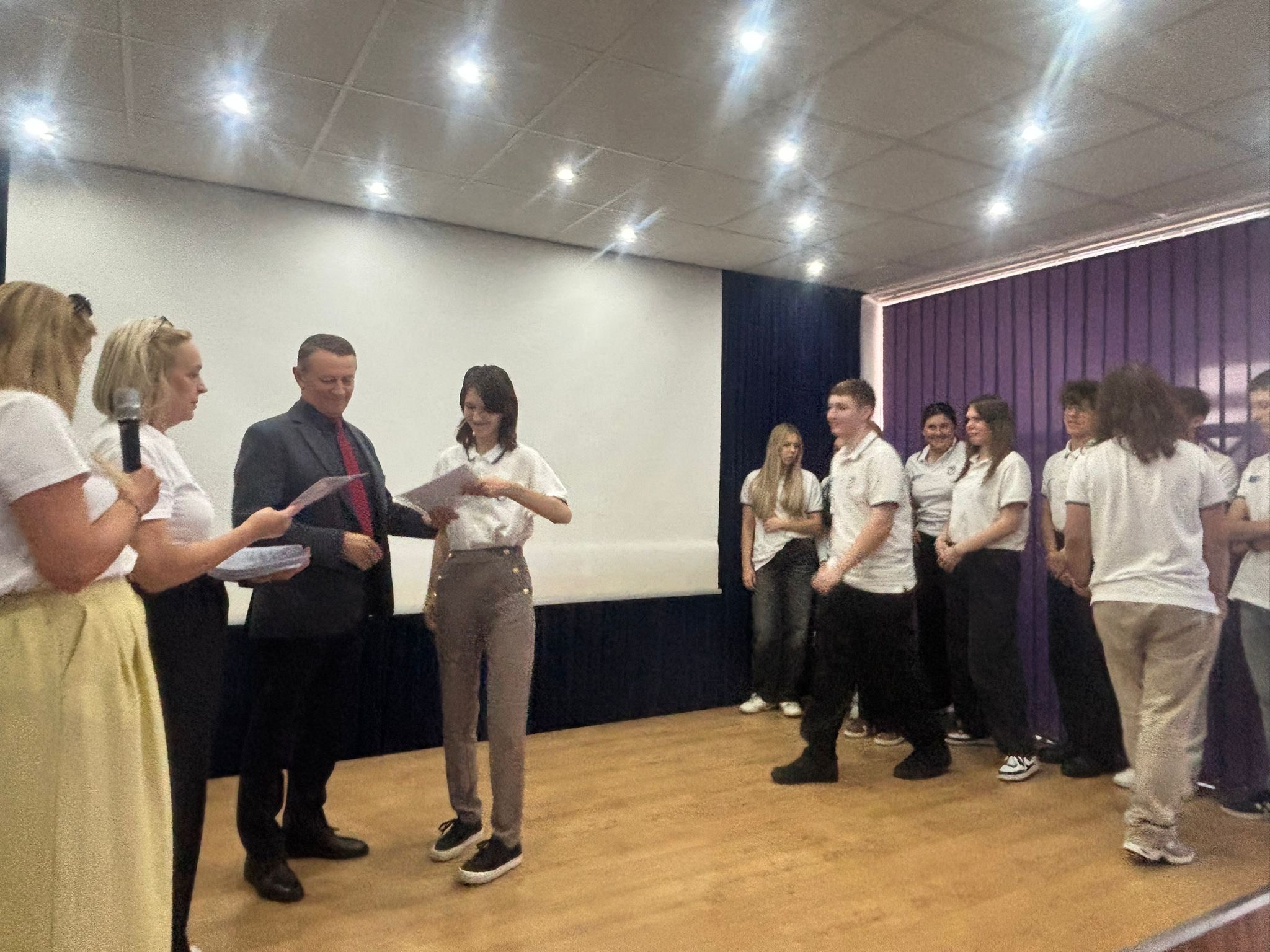 Punktem kulminacyjnym wydarzenia było wręczenie certyfikatów uczestnictwa oraz dokumentów Europass Mobility, potwierdzających zdobyte umiejętności i stanowiących cenne uzupełnienie przyszłego CV uczniów. Dyrektor ZSEiT w Pasłęku, p. Marian Matuszczak skierował do młodzieży słowa uznania, podkreślając wagę programu Erasmus+ dla rozwoju edukacyjnego i osobistego młodych ludzi. Głos zabrał również przedstawiciel Wydziału PEKS w Elblągu, p. Edward Pietrulewicz, który gratulował uczniom udziału w projekcie i zaznaczył, że jeszcze niedawno podobne doświadczenia były dla poprzednich pokoleń niedostępne.