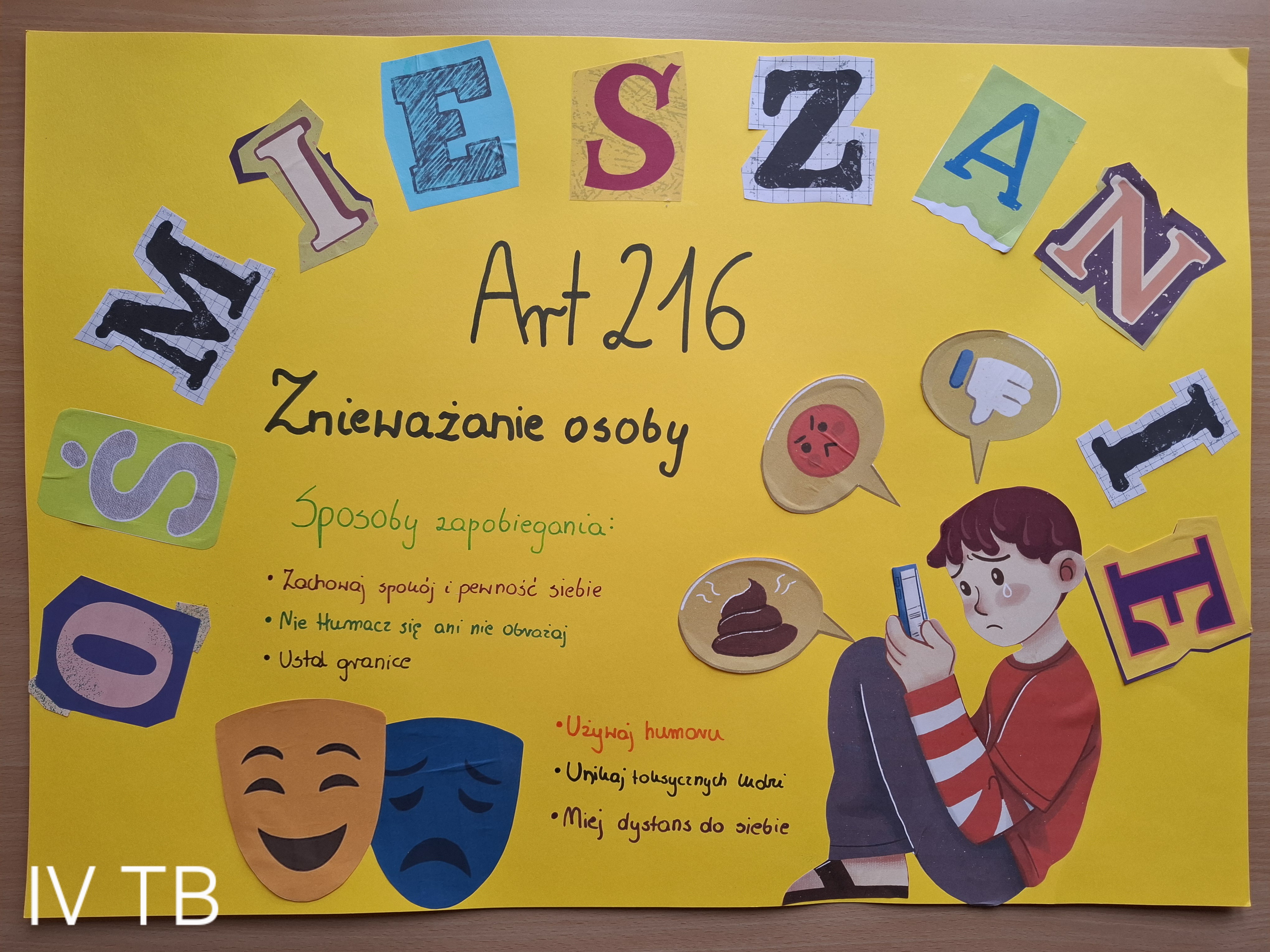 -Międzyklasowy konkurs plastyczny pod hasłem „Stop przemocy rówieśniczej”, w ramach którego uczniowie wykonali plakaty promujące postawy wolne od agresji oraz informujące o konsekwencjach karnych za stosowanie poszczególnych form przemocy.