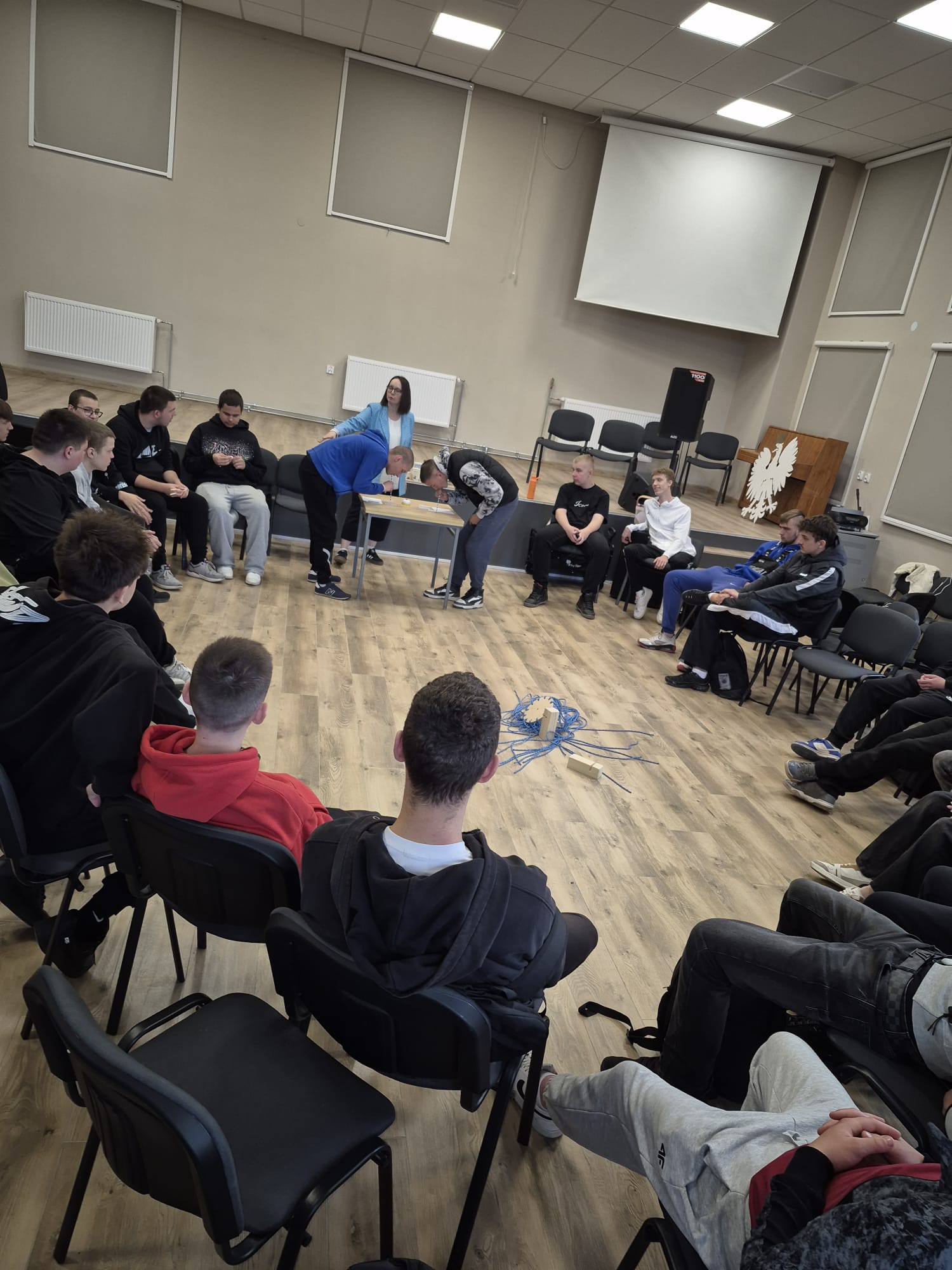 -Warsztaty „Naprzeciw Przemocy”, które poprowadziła Pani Joanna Ogryzek z Centrum Edukacyjno- Szkoleniowego „Genesis”. Uczniowie mieli okazję porozmawiać o mechanizmach przemocy, sposobach reagowania oraz o tym, jak budować pozytywne relacje w grupie rówieśniczej. Zadanie zostało sfinansowane ze środków Gminy Pasłęk na realizację Gminnego Programu Profilaktyki i Rozwiązywania Problemów Alkoholowych oraz Przeciwdziałania Narkomanii na 2025 rok;