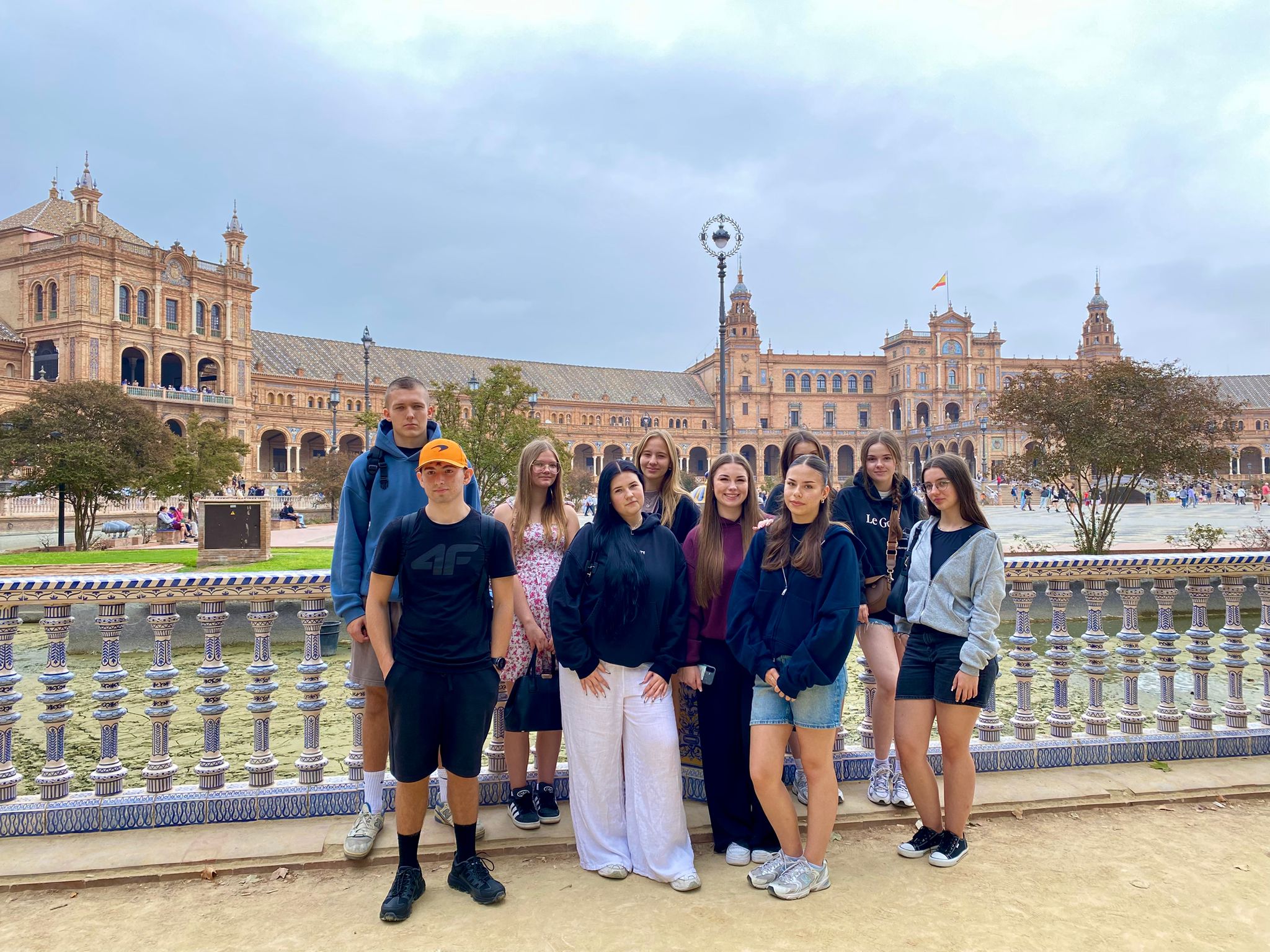 Kolejna grupa licealistów z Zespołu Szkół w Pasłęku rozpoczęła niezwykłą przygodę w samym sercu Andaluzji — tętniącej życiem i słońcem Sewilli! Już pierwszy dzień pobytu przyniósł mnóstwo wrażeń. Uczniowie odkrywali najpiękniejsze zakątki miasta: Plac Hiszpański, królewski Alcázar, tajemniczą Złotą Wieżę, imponującą katedrę z dzwonnicą Giralda oraz historyczne Główne Archiwum Indii. Sewilla oczarowała wszystkich swoją architekturą, atmosferą i południowym temperamentem — a słońce nie opuszczało grupy ani na chwilę! To dopiero początek tygodnia pełnego odkryć, nauki i inspiracji. Wyjazd realizowany jest w ramach projektu
