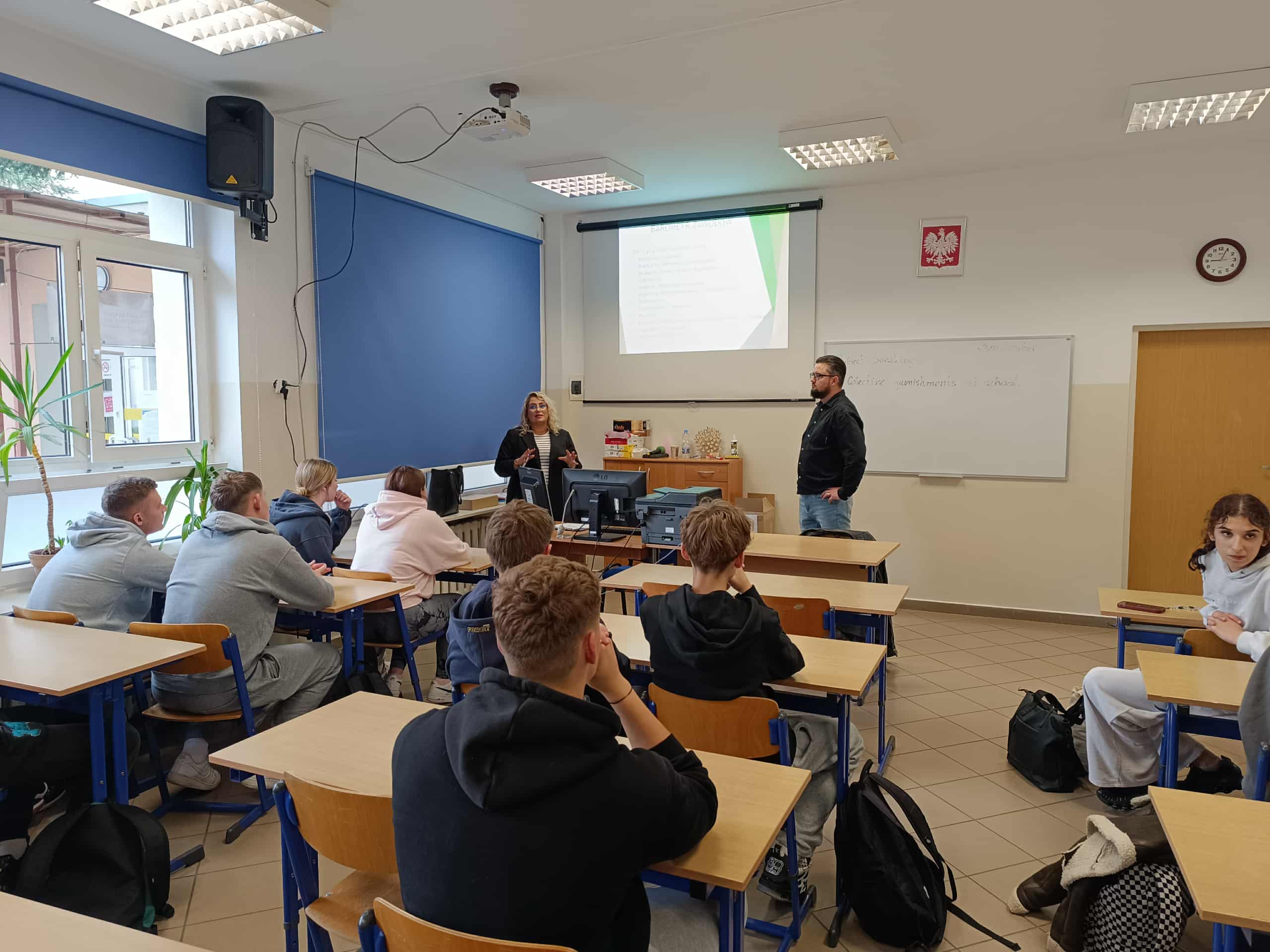 W dniach 20–26 października 2025 r. Zespół Szkół Ekonomicznych i Technicznych w Pasłęku włączył się w obchody Ogólnopolskiego Tygodnia Kariery, który w tym roku odbywa się pod hasłem „Siła relacji w erze samotności”. 20 października doradca zawodowy ZSEiT uczestniczył w konferencji inaugurującej Warmińsko-Mazurski Tydzień Kariery 2025 w Olsztynie pt. „Siła relacji międzyludzkich – jak nie dać się samotności”. W dniach 22–23 października odbyły się spotkania uczniów klas: IV liceum ogólnokształcącego – Oddział Przygotowania Wojskowego, II i V technikum kształcącego w zawodach: technik agrobiznesu oraz technik żywienia i usług gastronomicznych, a także III klas branżowej szkoły I stopnia kształcącej w zawodach: mechanik pojazdów samochodowych, mechanik-operator pojazdów i maszyn rolniczych oraz kucharz. Spotkania poprowadzili przedstawiciele Powiatowego Urzędu Pracy w Elblągu – Filia w Pasłęku, pani Marzena Plawgo i pan Jerzy Łucewicz. Rozmowy o rynku pracy, planowaniu kariery i relacjach zawodowych spotkały się z dużym zainteresowaniem młodzieży. Uczniowie uczestniczyli także w zajęciach z wychowawcami w ramach OTK pod hasłem „Siła relacji w erze samotności”. Dziękujemy wszystkim za zaangażowanie i aktywny udział w tegorocznym Tygodniu Kariery!