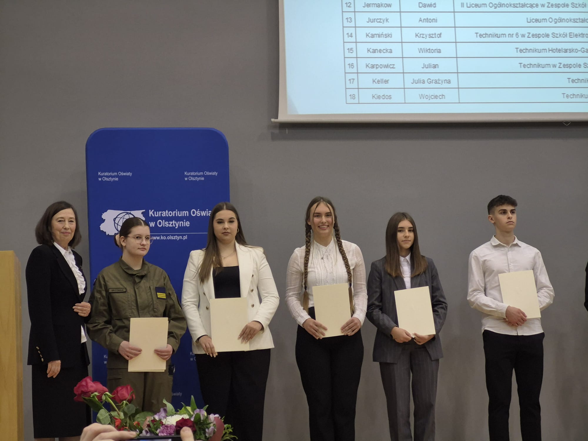 Podczas uroczystości głos zabrali Wojewoda Warmińsko-Mazurski, pan Radosław Król, oraz Warmińsko-Mazurski Kurator Oświaty, pani Jolanta Weronika Skrzypczyńska. Podkreślali znaczenie pielęgnowania talentów, wytrwałości w dążeniu do wyznaczonych celów oraz roli ciężkiej, systematycznej pracy, która – jak podkreślali – zawsze przynosi efekty. Wyrazili również uznanie dla ambicji i determinacji młodych ludzi, którzy swoją postawą inspirują rówieśników. Nasze uczennice zostały uhonorowane jako najlepsze w swoich typach szkół.