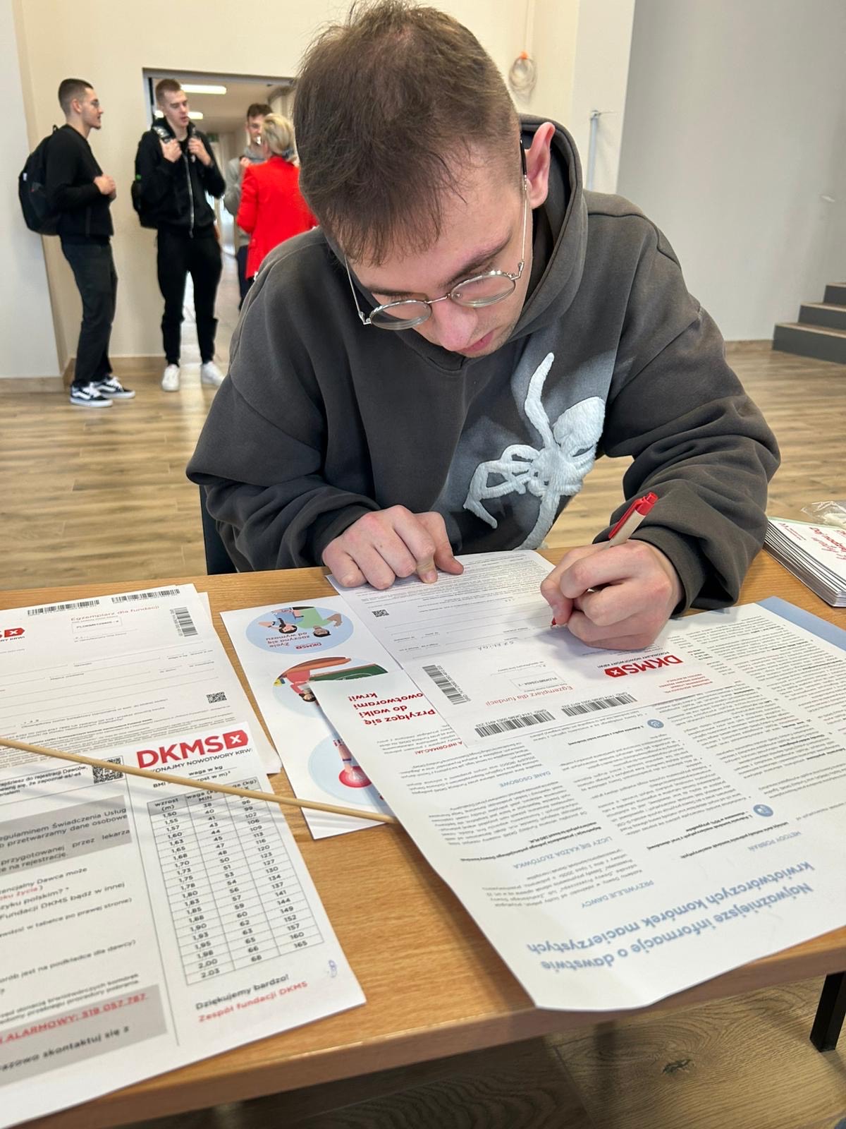 Uczniowie i nauczyciele z ogromną wrażliwością opowiadali o idei dawstwa, pomagali w wypełnianiu formularzy i rozwiewali wątpliwości uczestników. Dzięki ich pracy do bazy DKMS dołączyło wiele nowych osób, dając realną szansę chorym na znalezienie „bliźniaka genetycznego”.