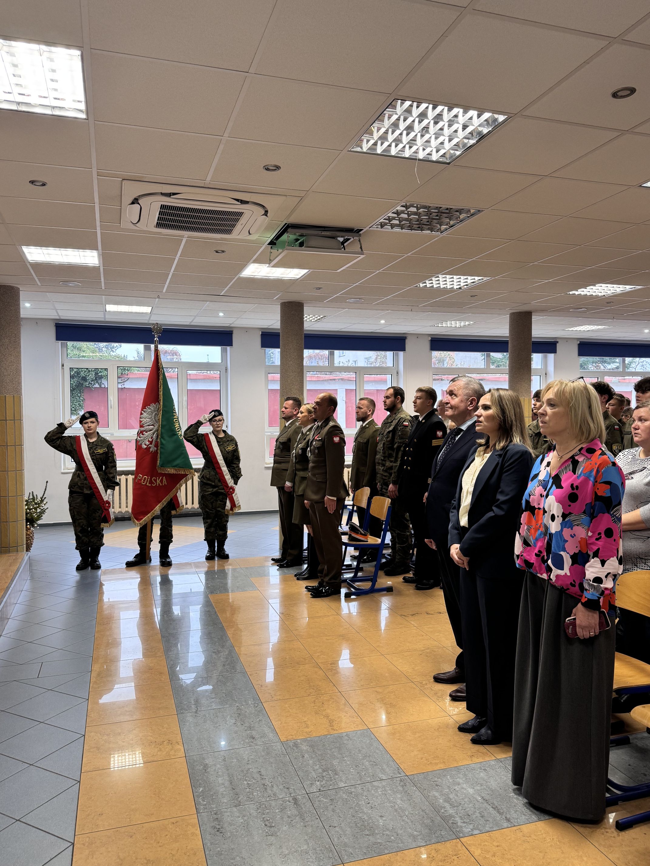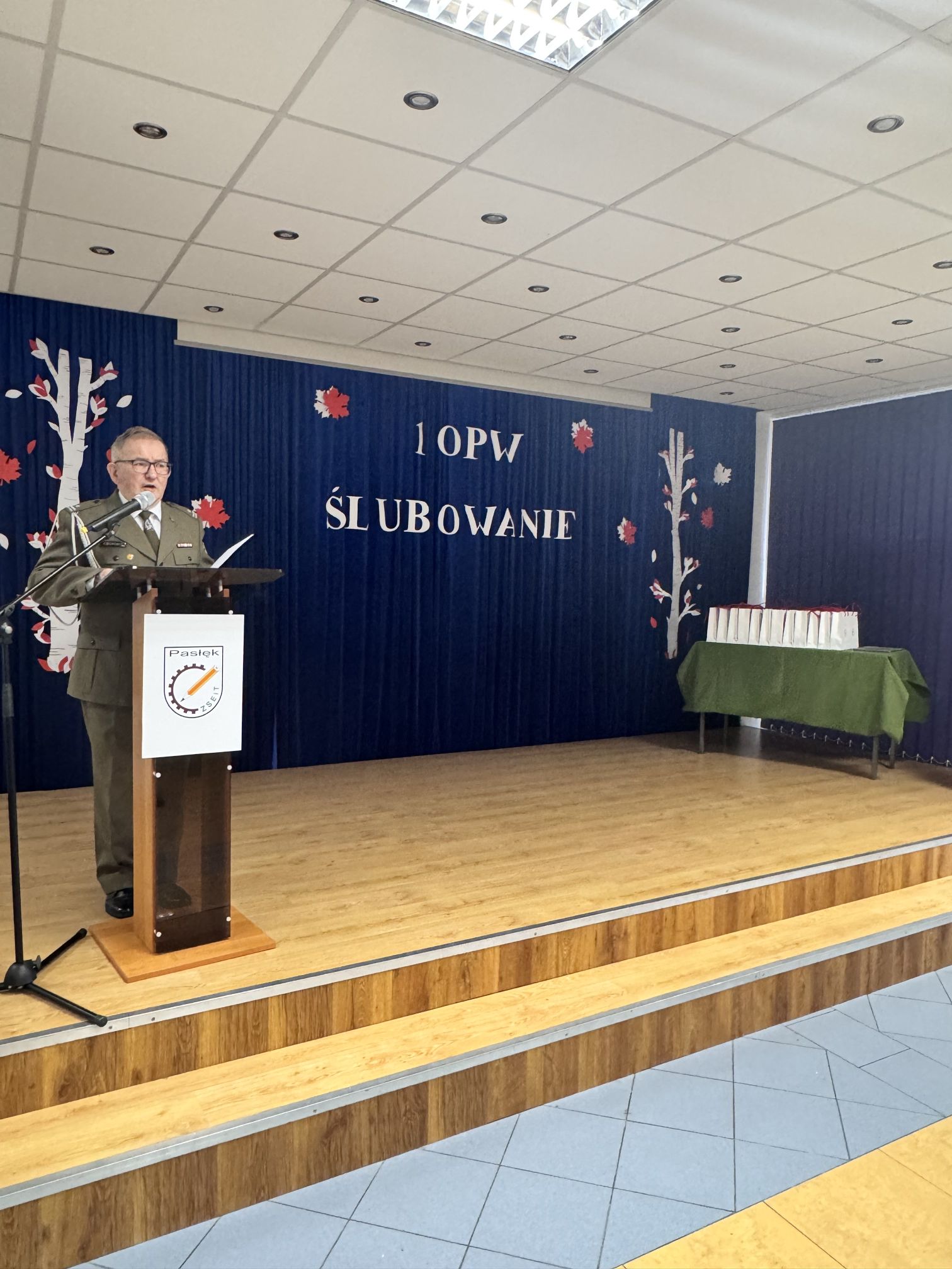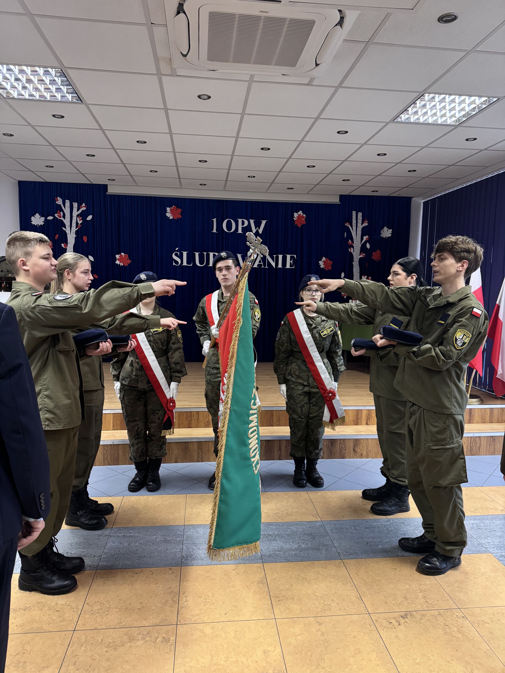 4 grudnia 2025 r. odbyło się jedno z najważniejszych wydarzeń w kalendarzu ZSEiT – ślubowanie uczniów klasy I Oddziału Przygotowania Wojskowego. Uroczystość zgromadziła licznych gości, przedstawicieli instytucji współpracujących ze szkołą, dyrekcję, reprezentacje szkół podstawowych, rodziców oraz starsze klasy mundurowe. Podniosła atmosfera i wojskowy ceremoniał podkreślały rangę rozpoczęcia nauki w profilu OPW.
