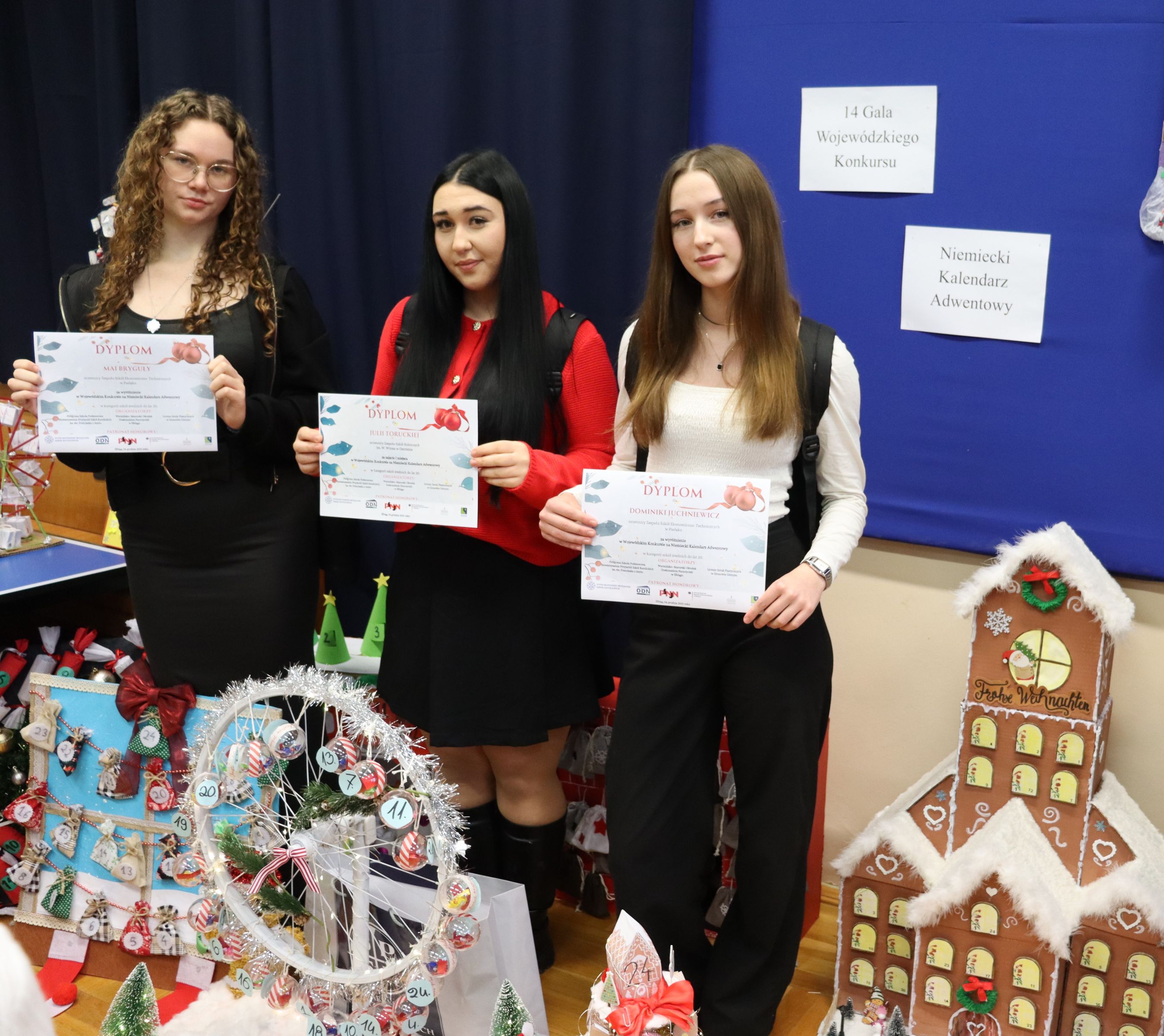 Do 20 listopada należało wykonać własnoręczny kalendarz adwentowy, wykazując się kreatywnością, pomysłowością oraz znajomością słownictwa związanego z Bożym Narodzeniem. Siedmioro uczniów przygotowało piękne prace: Julia Torucka (II GT), Dominika Juchniewicz (III GT), Maja Bryguła (V GT), Oliwia Zięba (II LO), Katarzyna Kostrzewa (V AT), Roksana Kruk (V GT), Filip Urban (II LO). Spośród nich należało wybrać trzy, które zgłoszono do konkursu.
