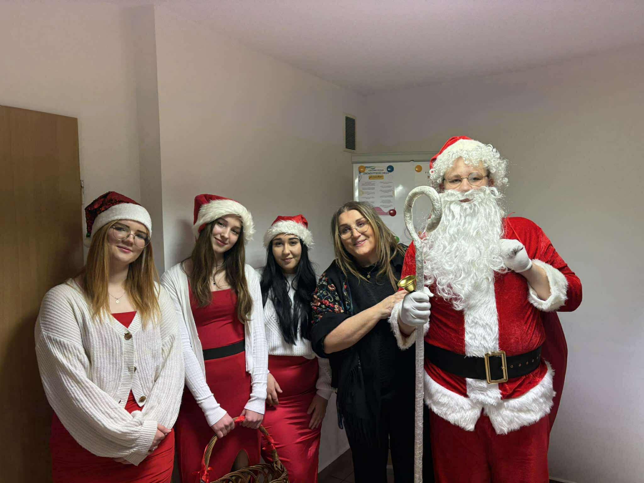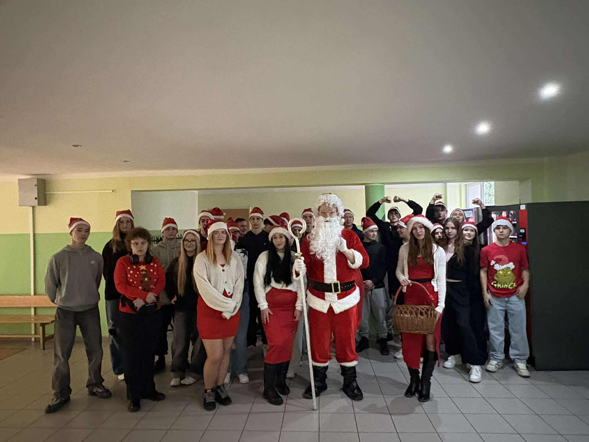 5 grudnia 2025 r. do Zespołu Szkół Ekonomicznych i Technicznych w Pasłęku ponownie zawitał wyjątkowy gość – Święty Mikołaj, który wraz ze swoimi pomocnicami wniósł do szkolnych korytarzy dużo radości, świątecznej energii i słodkich niespodzianek.