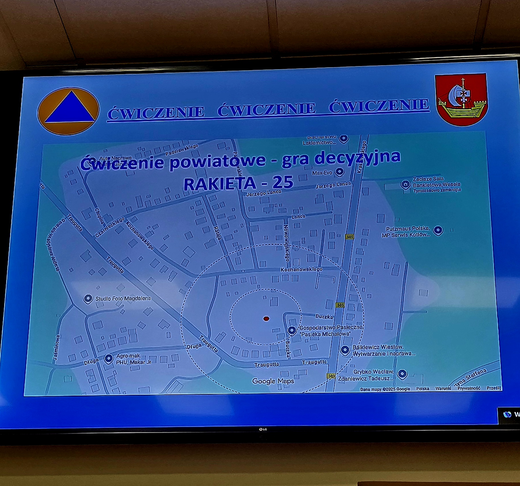 W trakcie ćwiczenia Policja, Państwowa Straż Pożarna, przedstawiciele wojska oraz służba zdrowia omówili sposób zabezpieczenia terenu, ocenę potencjalnego zagrożenia, organizację dostępu do miejsca zdarzenia oraz wstępne badania obiektu. Przedstawiono również przygotowanie zaplecza medycznego na wypadek konieczności udzielenia pomocy mieszkańcom lub służbom. Ważnym elementem była także komunikacja kryzysowa – rzecznik prasowy Starosty przygotowywał bieżące komunikaty dla mieszkańców i mediów oraz monitorował przestrzeń informacyjną pod kątem ewentualnej dezinformacji.