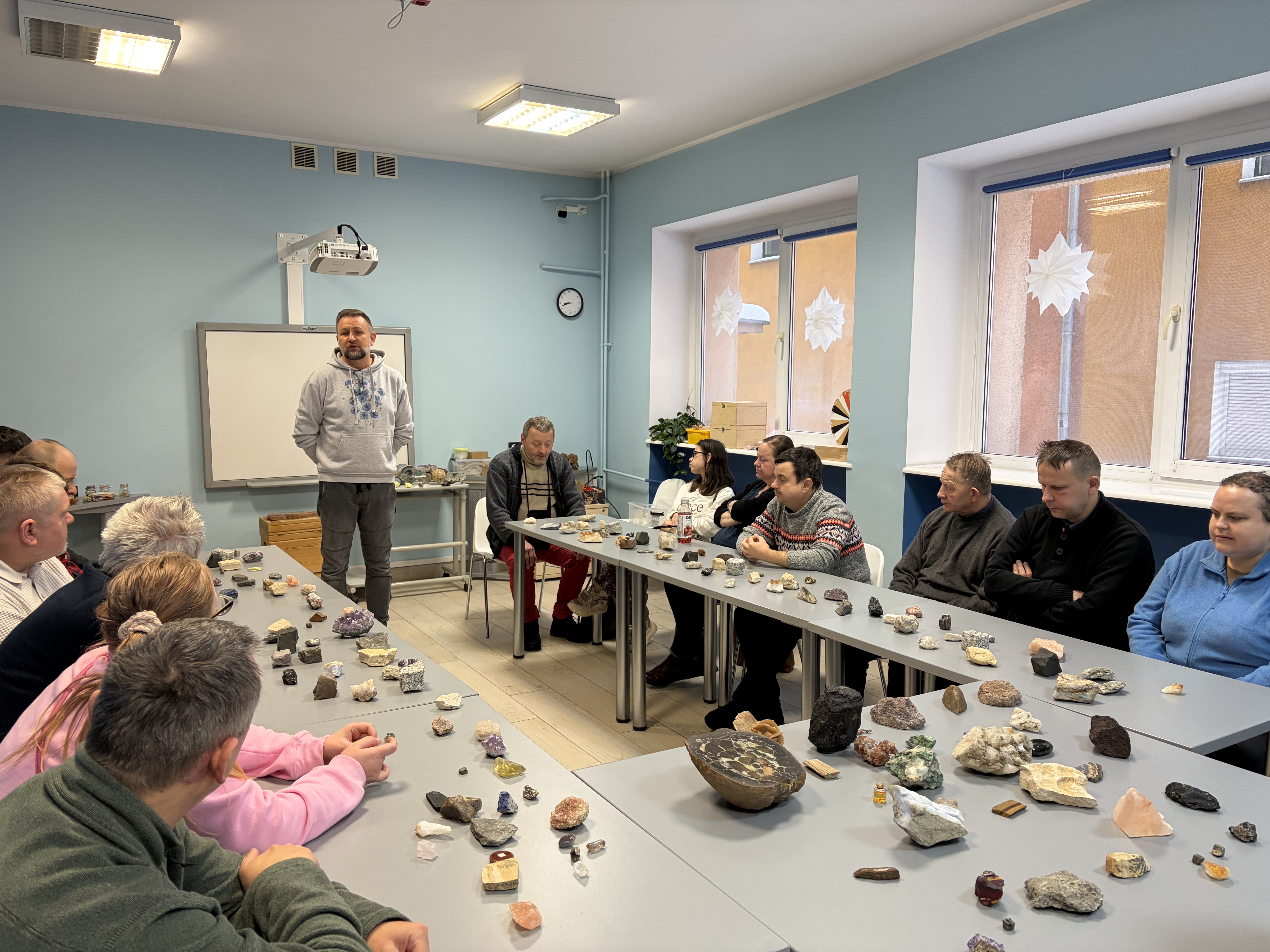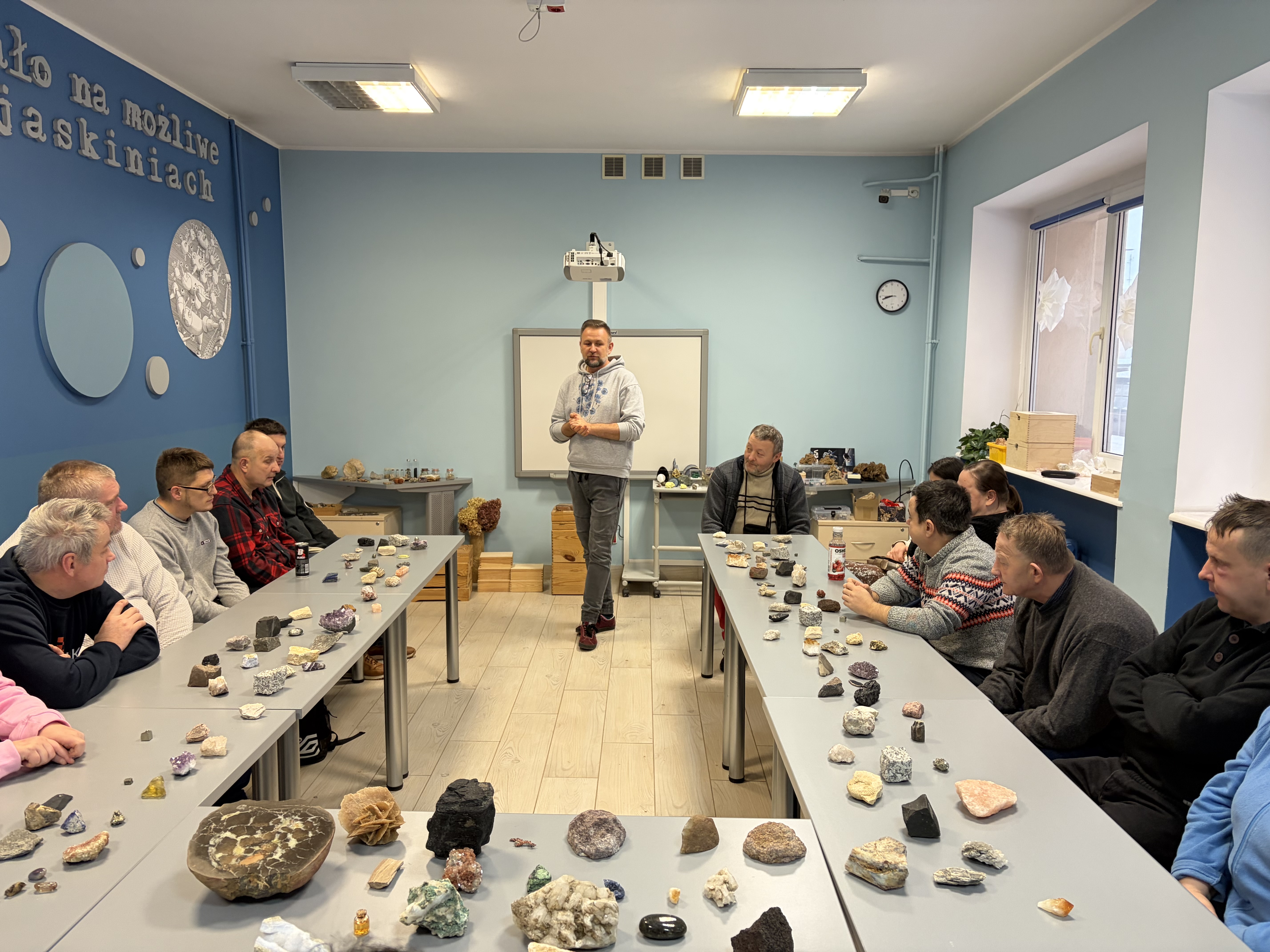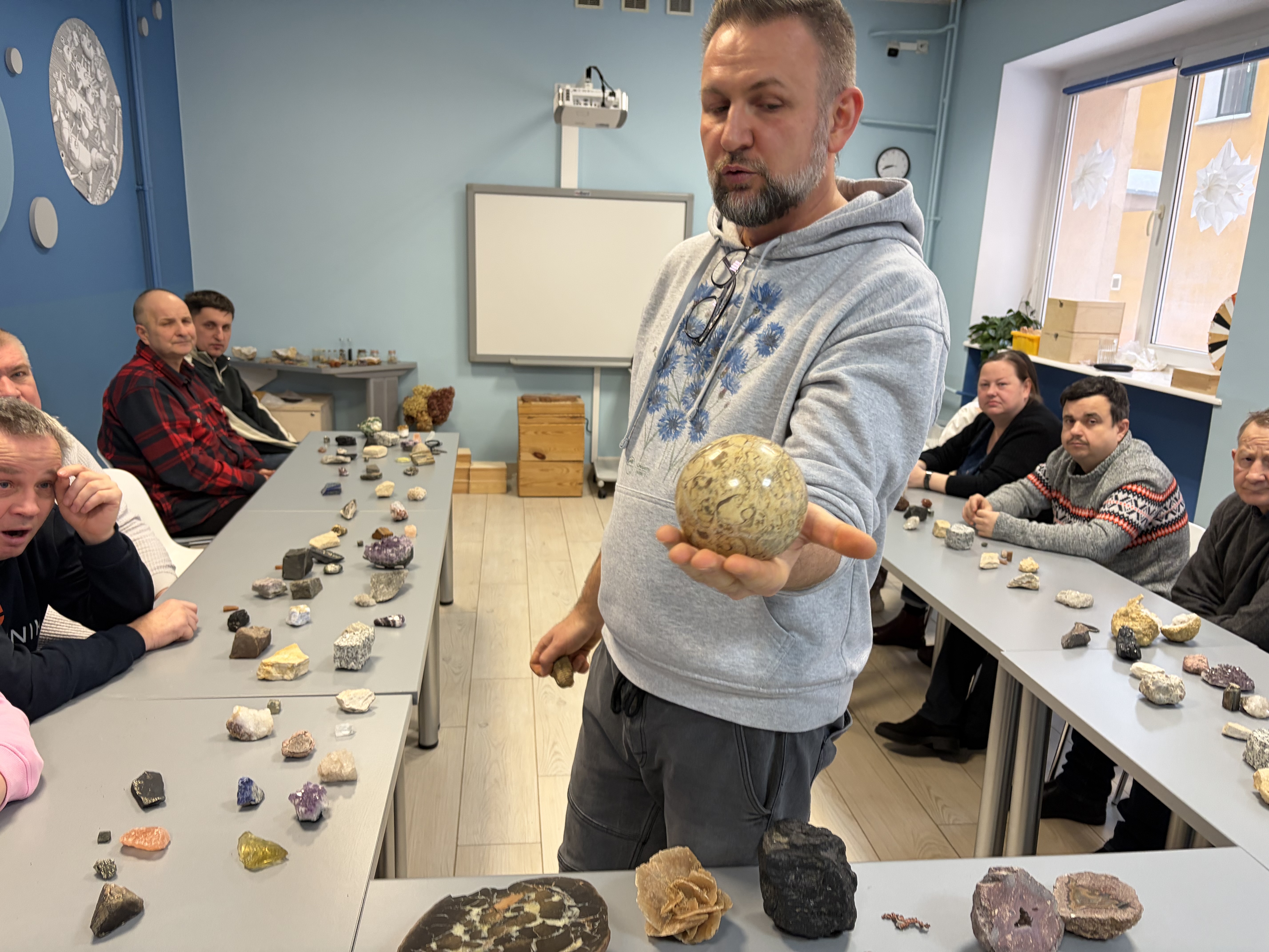 Podczas spotkania prowadzący w ciekawy sposób omówił podstawowe rodzaje skał i minerałów, ich pochodzenie, właściwości oraz zastosowanie w życiu codziennym. Podopieczni poznali m.in. różnice między skałami magmowymi, osadowymi i metamorficznymi, a także przykłady popularnych minerałów, takich jak kwarc, granit czy bursztyn.