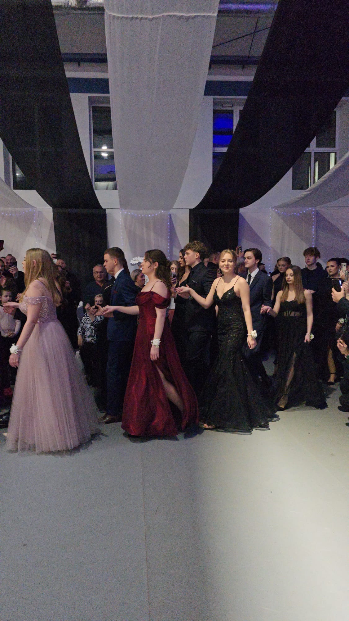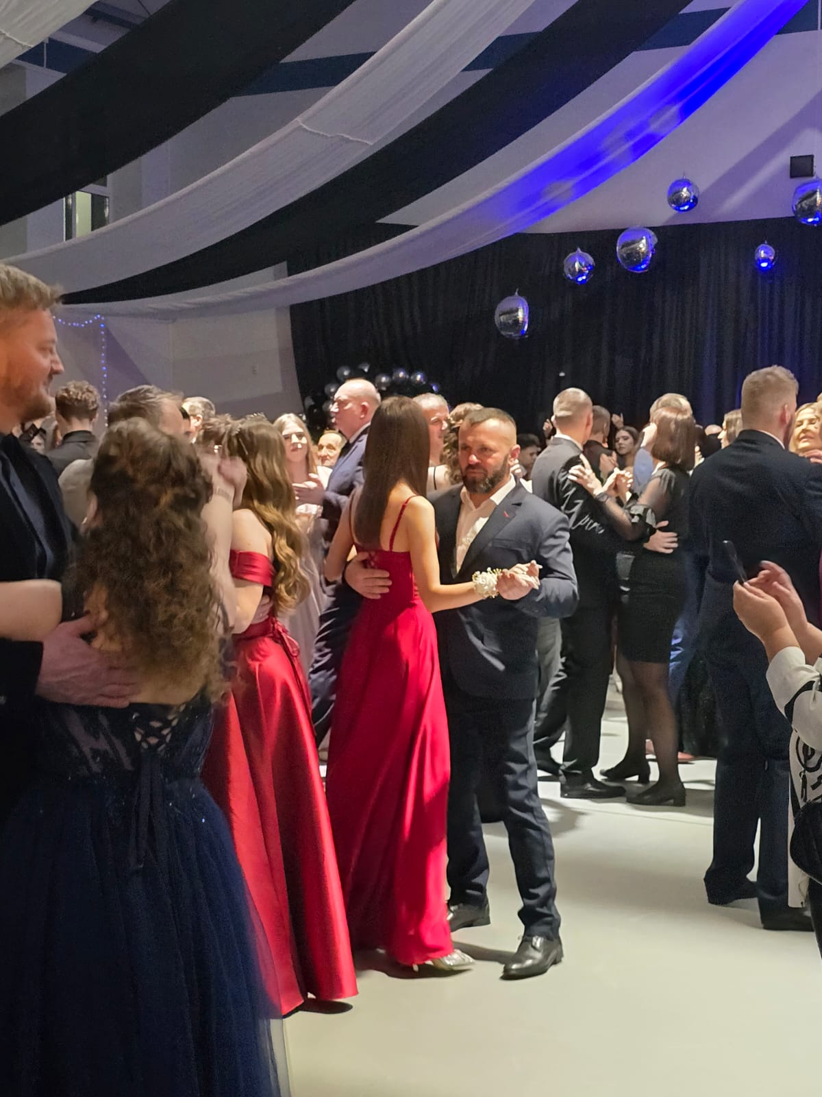 Bal rozpoczął się tradycyjnym polonezem, po którym nadszedł czas na podziękowania. Eleganckie stroje, dobra muzyka i radosna atmosfera sprawiły, że wieczór na długo pozostanie w pamięci uczestników. Studniówka była nie tylko okazją do zabawy, ale także momentem refleksji przed zbliżającym się ważnym etapem edukacji.
