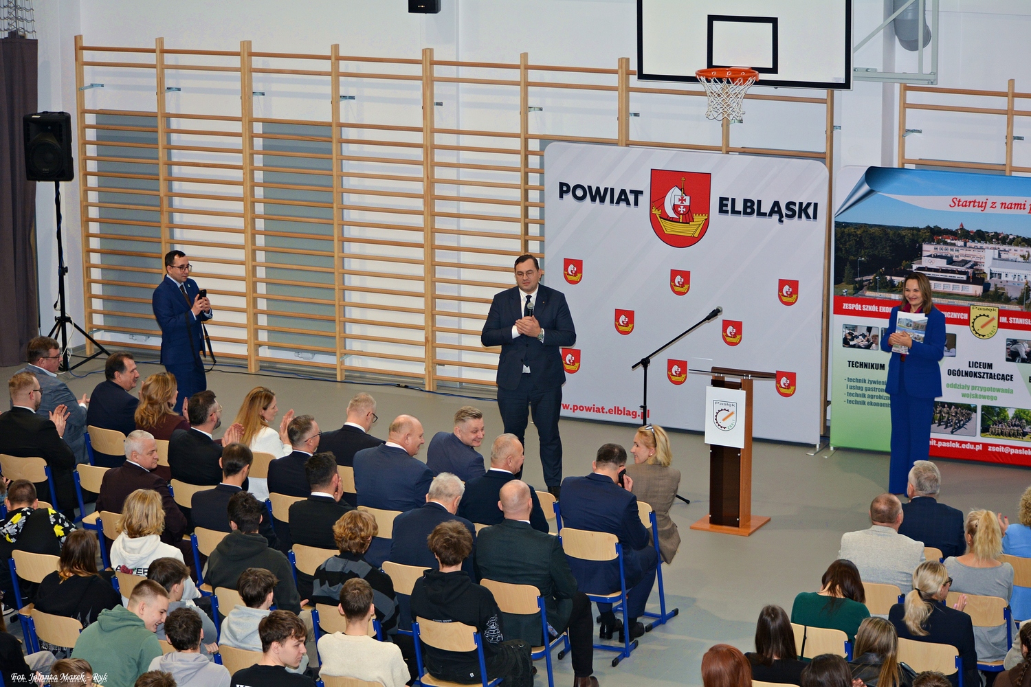 Wśród zaproszonych gości obecny był również Sekretarz Stanu, Zastępca Szefa Kancelarii Prezesa Rady Ministrów – Jakub Stefaniak. Po raz pierwszy w murach naszej szkoły był również Wojewoda Warmińsko – Mazurski, pan Radosław Król. Część oficjalną poprowadziła wicedyrektor Zespołu Szkół Ekonomicznych i Technicznych w Pasłęku Lidia Zawarczyńska.