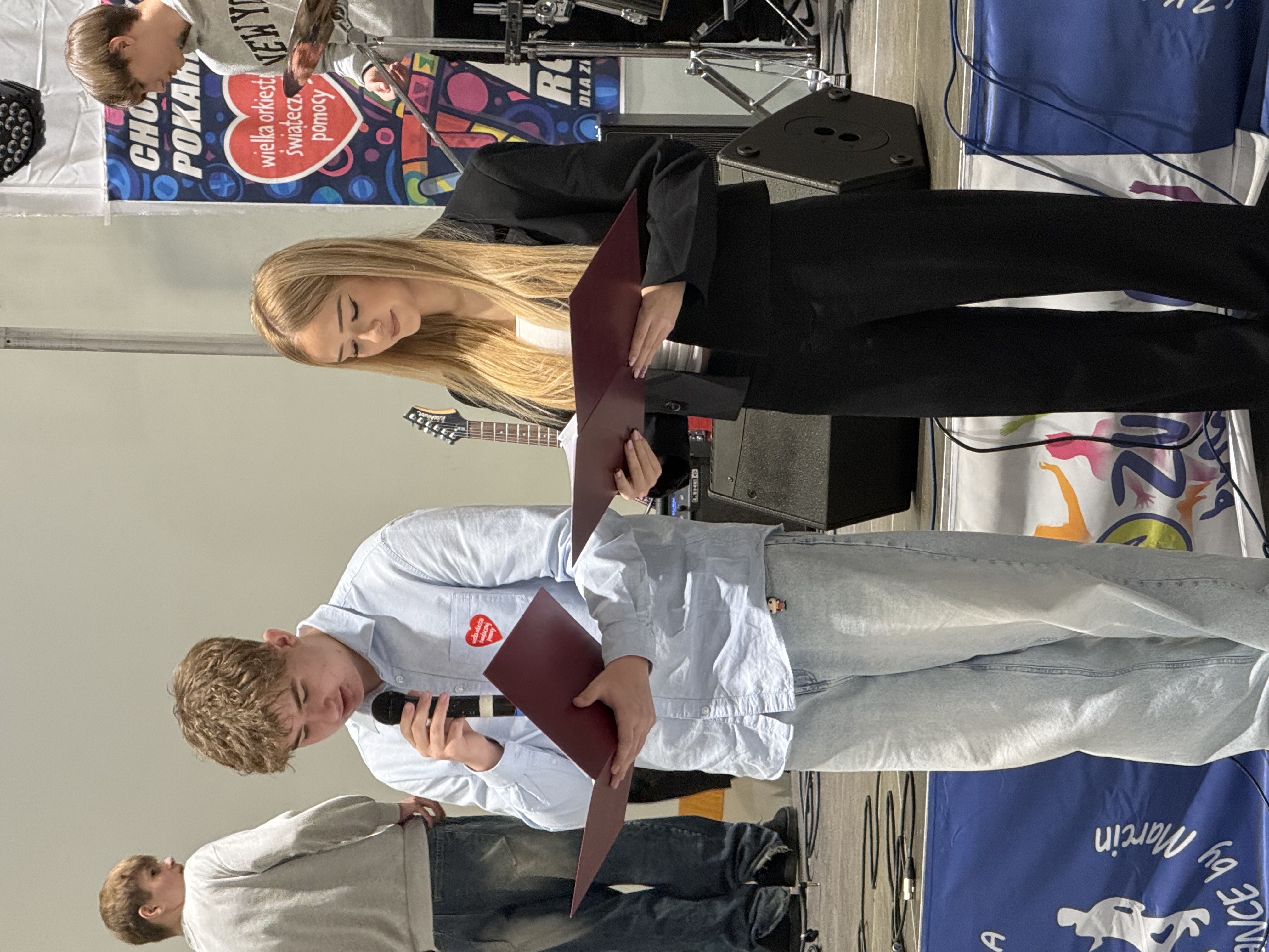 34. Finał WOŚP przeszedł już do historii. Nastąpił zatem czas podsumowania i podziękowania dla wszystkich, którzy przyczynili się do pięknego wyniku zbiórki, czyli kwoty 70 117,39 zł. Już w sobotę 24 stycznia sala gimnastyczna Zespołu Szkół tętniła energią podczas Charytatywnego Maratonu Tanecznego Zumba by WOŚP, prowadzonego przez Marcina Wierzbickiego, a niedzielny finał zgromadził bardzo liczną publiczność, która szczelnie wypełniła halę. Na scenie zaprezentowali się m.in. Parafialna Orkiestra Dęta z Zielonki Pasłęckiej, zespół Pasłęczanie, tancerki Cheerleaders Dance Pasłęk, zespół Wysoczanki, dzieci z pasłęckich przedszkoli oraz młodzież z sekcji wokalnej i muzycznej PCKiA. Różnorodność występów i ogromne zaangażowanie artystów sprawiły, że atmosfera od początku do końca była wyjątkowa i pełna pozytywnych emocji. Jak co roku kulminacyjnym momentem wydarzenia była licytacja, która wzbudziła ogromne emocje, a mieszkańcy Pasłęka nie szczędzili swoich portfeli. Za naprawdę duże kwoty wylicytowano m.in. misia ufundowanego przez Urząd Miejski, koszulki piłkarskie przekazane przez Pana Starostę, kolację z panią burmistrz, zestawy niespodzianki z bluzami i koszulkami z wizerunkiem naszego miasta, a także bluzę z logo naszej szkoły przekazaną przez panią dyrektor ZS. Dużym zainteresowaniem cieszyły się również vouchery na usługi kosmetyczne, bilety na koncerty oraz gadżety WOŚP. Kwota zebrana podczas licytacji to ponad 21 tysięcy złotych. Podczas finału nie brakowało również atrakcji towarzyszących. Ogromnym zainteresowaniem cieszyła się loteria, w której każdy los wygrywał, kramik Aniołowa z kultowymi ruchańcami, słodka wata cukrowa oraz fotobudka 360, w której powstawały efektowne zdjęcia i filmiki. Dużo emocji, szczególnie wśród najmłodszych, wzbudzały pokazy pierwszej pomocy – dzieci chętnie próbowały swoich sił m.in. w resuscytacji i z dużym zaangażowaniem uczestniczyły w zajęciach edukacyjnych. Na miejscu można było również sprawdzić poziom cukru we krwi i zmierzyć ciśnienie, a dla najmłodszych przygotowano kiermasz z książeczkami dla dzieci. Sporą popularnością cieszyła się także kawiarenka, w której rodzice, uczniowie i darczyńcy przygotowali pyszne domowe ciasta i słodkości. Było to idealne miejsce, by na chwilę odpocząć i rozgrzać się gorącą kawą lub herbatą. Integralną częścią finału byli również wolontariusze WOŚP, których można było spotkać nie tylko w hali sportowej, ale także na ulicach Pasłęka i w jego okolicach. Mimo zimowej aury i niskiej temperatury, z puszkami w dłoniach i charakterystycznymi czerwonymi serduszkami dzielnie kwestowali przez cały dzień. Kwota, którą uzbierali to 30 668,51 zł. W tym roku najwięcej do puszki zebrała pani Monika Krajewska. Finał zakończył się widowiskowym „światełkiem do nieba” w postaci pokazu tańca ognia młodzieży z Aniołowa, który był symbolicznym zwieńczeniem wspólnego grania.