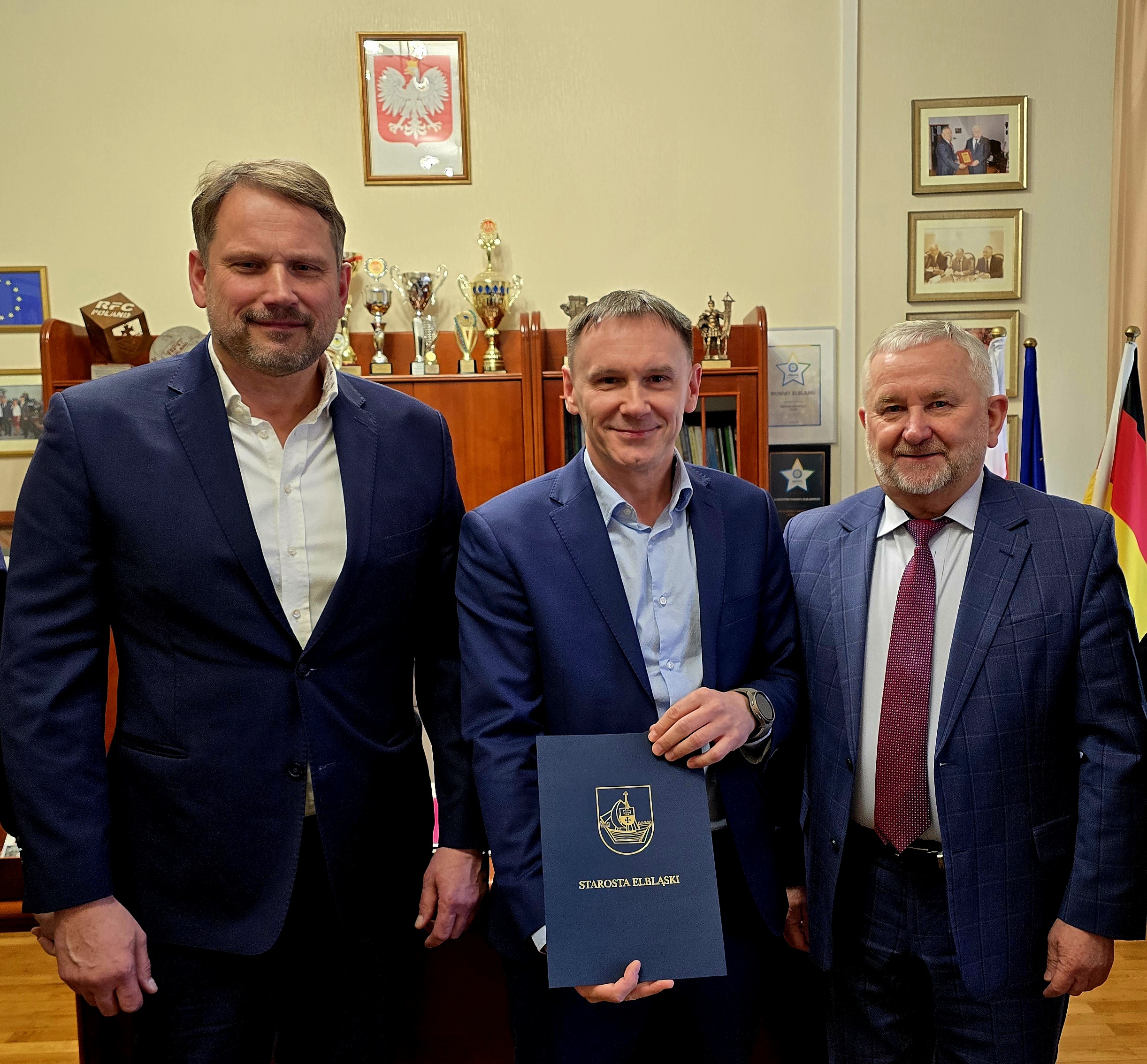 W dniu wczorajszym Starosta Elbląski Maciej Romanowski przekazał na ręce Prezesa Zarządu Ecognor sp. z o.o. Grzegorza Walawskiego pozwolenie na budowę zakładu produkcji profili i wielkogabarytowych płyt kompozytowych z odpadów przy ul. Dworcowej w Pasłęku.