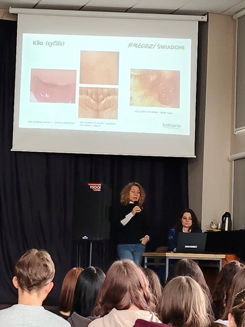 10 lutego 2026 r. uczniowie klas trzecich liceum ogólnokształcącego oraz technikum uczestniczyli w dwugodzinnym spotkaniu z przedstawicielkami Powiatowej Stacji Sanitarno-Epidemiologicznej w Elblągu. Pani Jolanta Jasińska-Sobańska oraz pani Izabela Ostasz poprowadziły w naszej szkole zajęcia w ramach ogólnopolskiego programu #MłodziŚwiadomi, poświęcone drogom zakażenia oraz profilaktyce chorób przenoszonych drogą płciową.