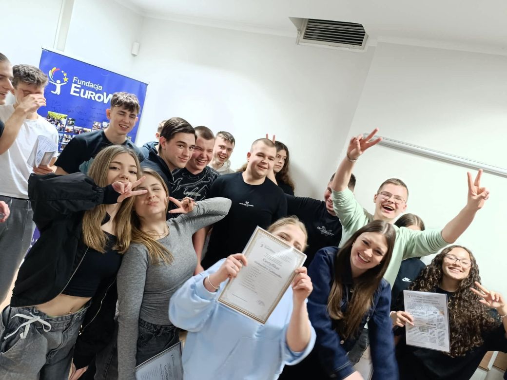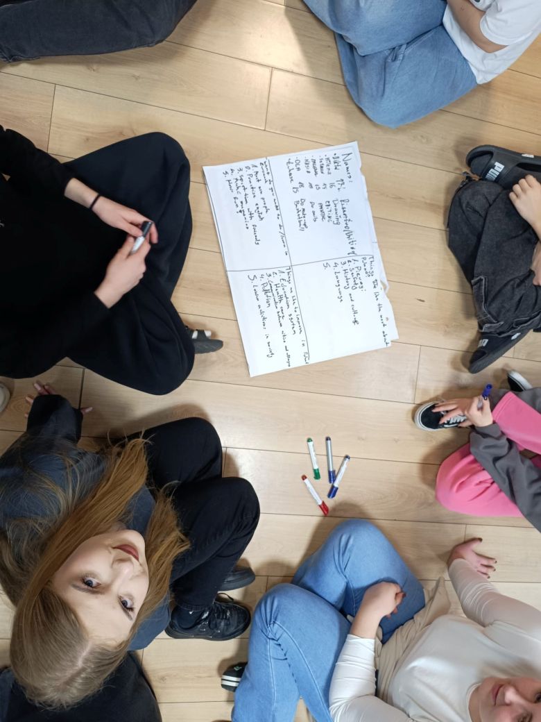 Oprócz nauki nie zabrakło także dobrej zabawy i integracji. Zajęcia często odbywały się w formie pracy w grupach, co sprzyjało współpracy, rozwijaniu umiejętności komunikacyjnych oraz budowaniu relacji między uczestnikami. Wspólne gry, zadania i aktywności sprawiły, że każdy mógł poczuć się częścią zespołu i przełamać barierę językową.