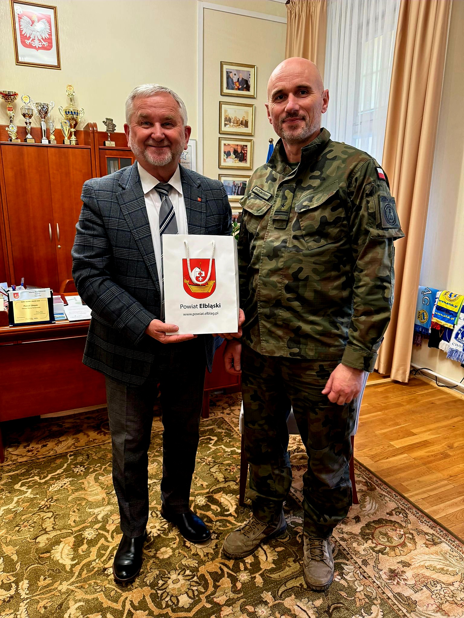 W Starostwie Powiatowym w Elblągu odbyło się kluczowe spotkanie Starosty Elbląskiego z przedstawicielami 43. Batalionu Obrony Pogranicza z Braniewa (wchodzącego w skład 4. Warmińsko-Mazurskiej Brygady Obrony Terytorialnej). Głównym tematem rozmów było wypracowanie i doprecyzowanie zasad wzajemnego wsparcia, które realnie przełoży się na wzrost poczucia bezpieczeństwa mieszkańców regionu. Obie strony zadeklarowały gotowość do ścisłej współpracy w sytuacjach nadzwyczajnych w przypadku zagrożeń takich jak klęski żywiołowe czy inne kryzysowe sytuacje wymagające interwencji.