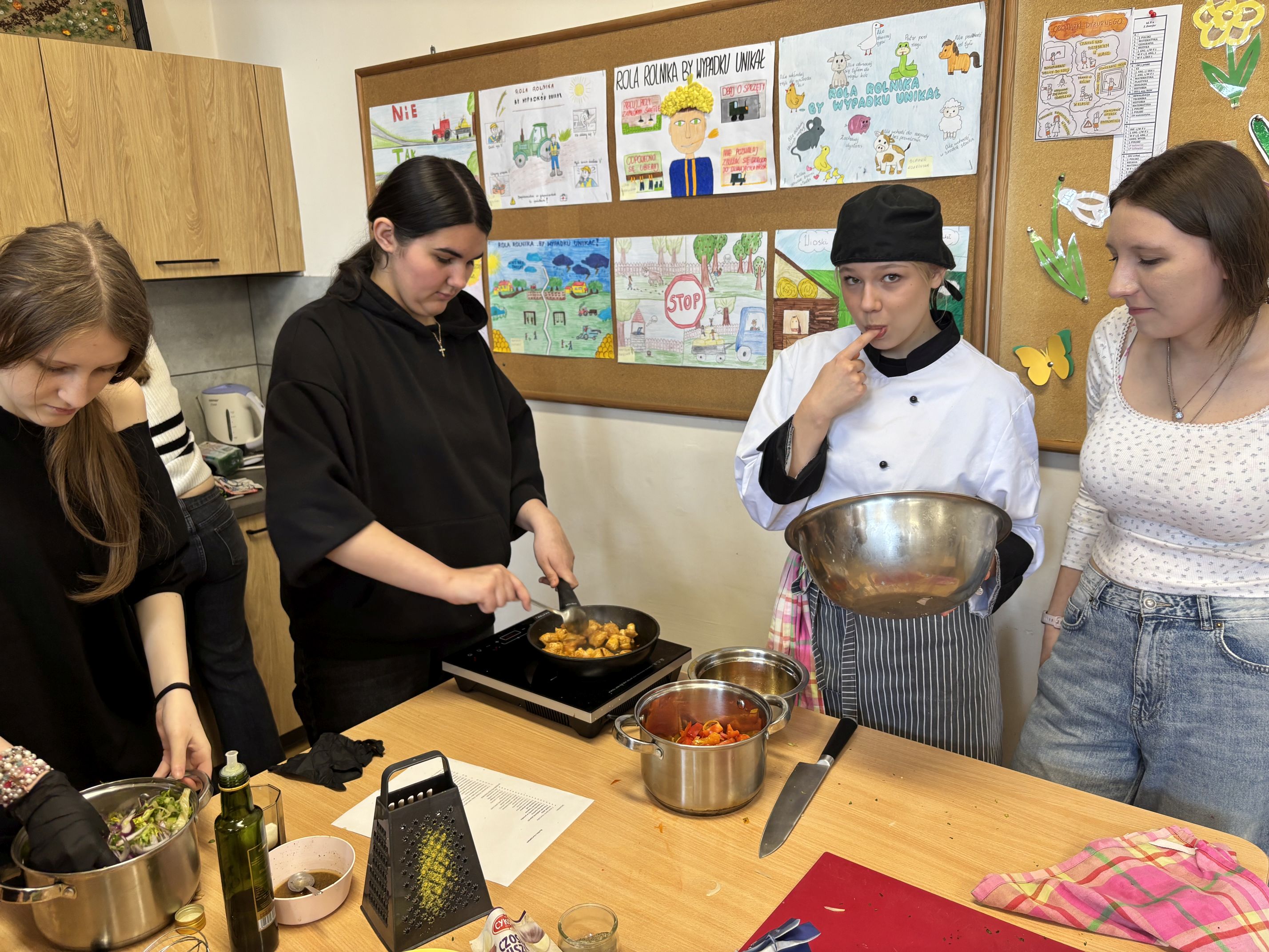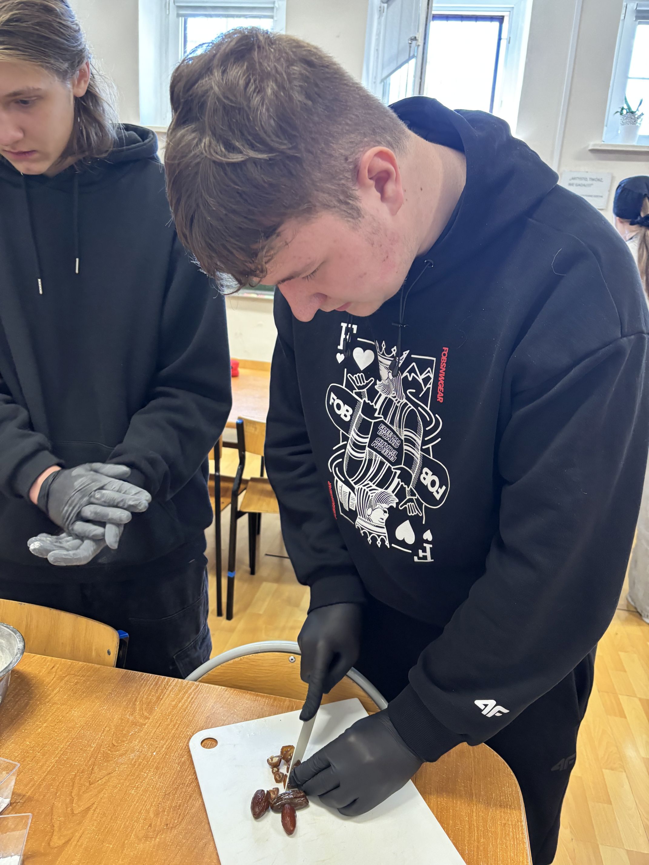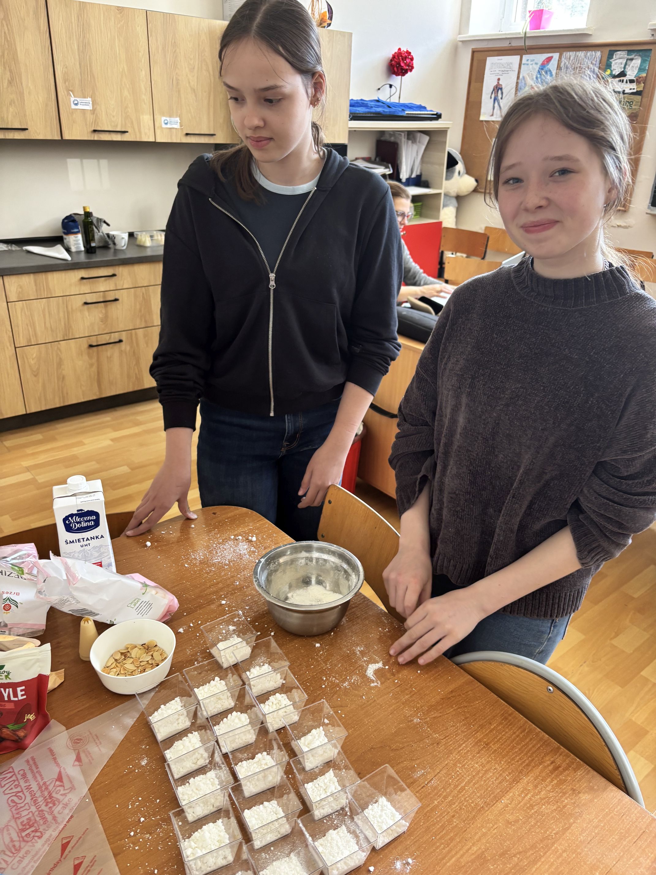 Warsztatom towarzyszyła swobodna atmosfera, dużo śmiechu i pozytywnej energii. Nie zabrakło również odrobiny kulinarnego chaosu, który – jak się okazało – tylko dodał zajęciom uroku i autentyczności. Był to czas nie tylko nauki, ale przede wszystkim integracji oraz współpracy między uczniami obu szkół.