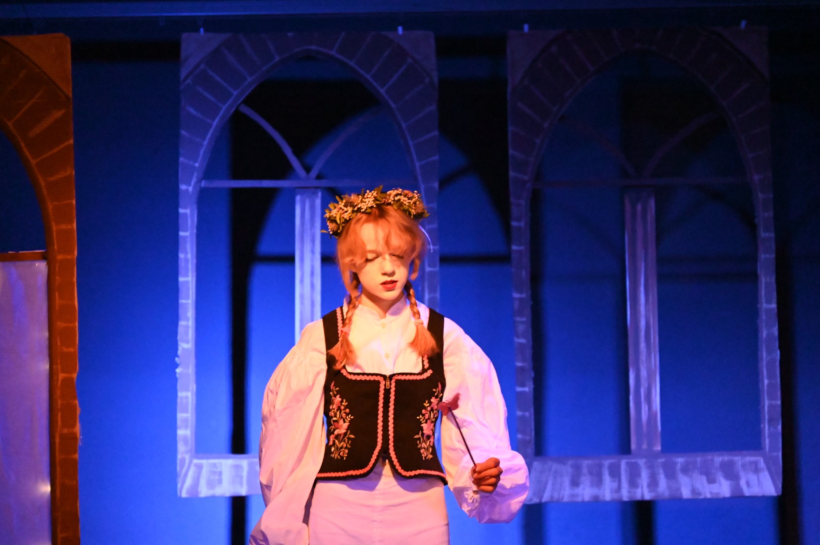 Właściwie nastał wtedy piękny, pierwszy prawdziwie wiosenny dzień, gdy przed południem 6 marca 2025 roku oczekiwaliśmy na spektakl teatralny przygotowany z myślą o nas przez Grupę Młodzieżową Teatru Muzycznego Młodzieżowego Domu Kultury w Elblągu. Przez lazurowe niebo płynęły białe obłoki, wiatr lekko poruszał rozwijającymi się już tu i ówdzie pąkami, słońce opromieniało nasze twarze, zwężało źrenice oczu kierowanych w jego ciepły krąg. Trzymaliśmy w rękach przepiękny bukiet bladoróżowych róż, którym chcieliśmy podziękować młodym adeptom Melpomeny za dostarczone nam wrażenia artystyczne i głęboko nas poruszające przeżycia przywołujące echa naszej młodości, dawno zapomnianych lektur, szalonych szkolnych lat.