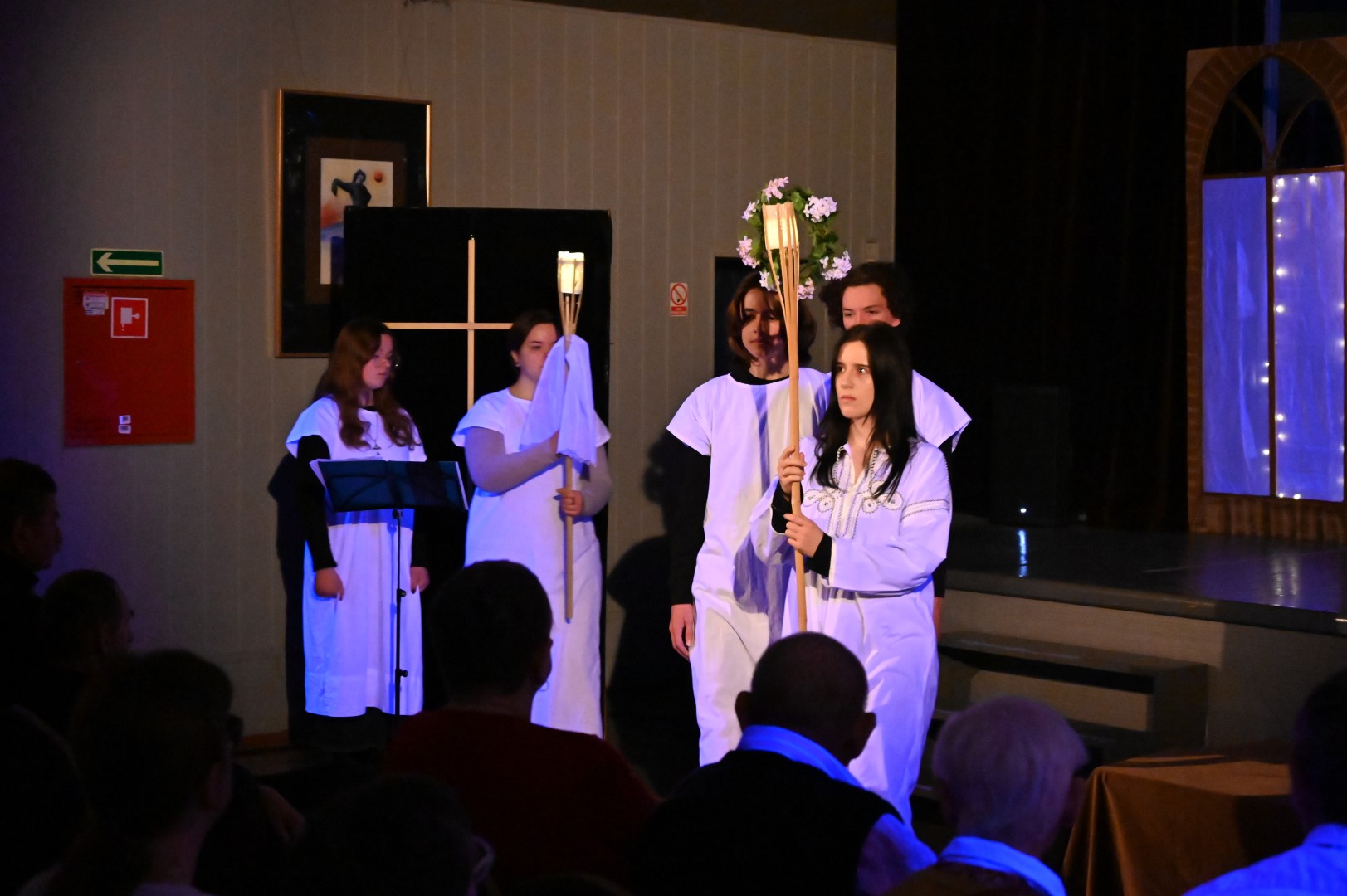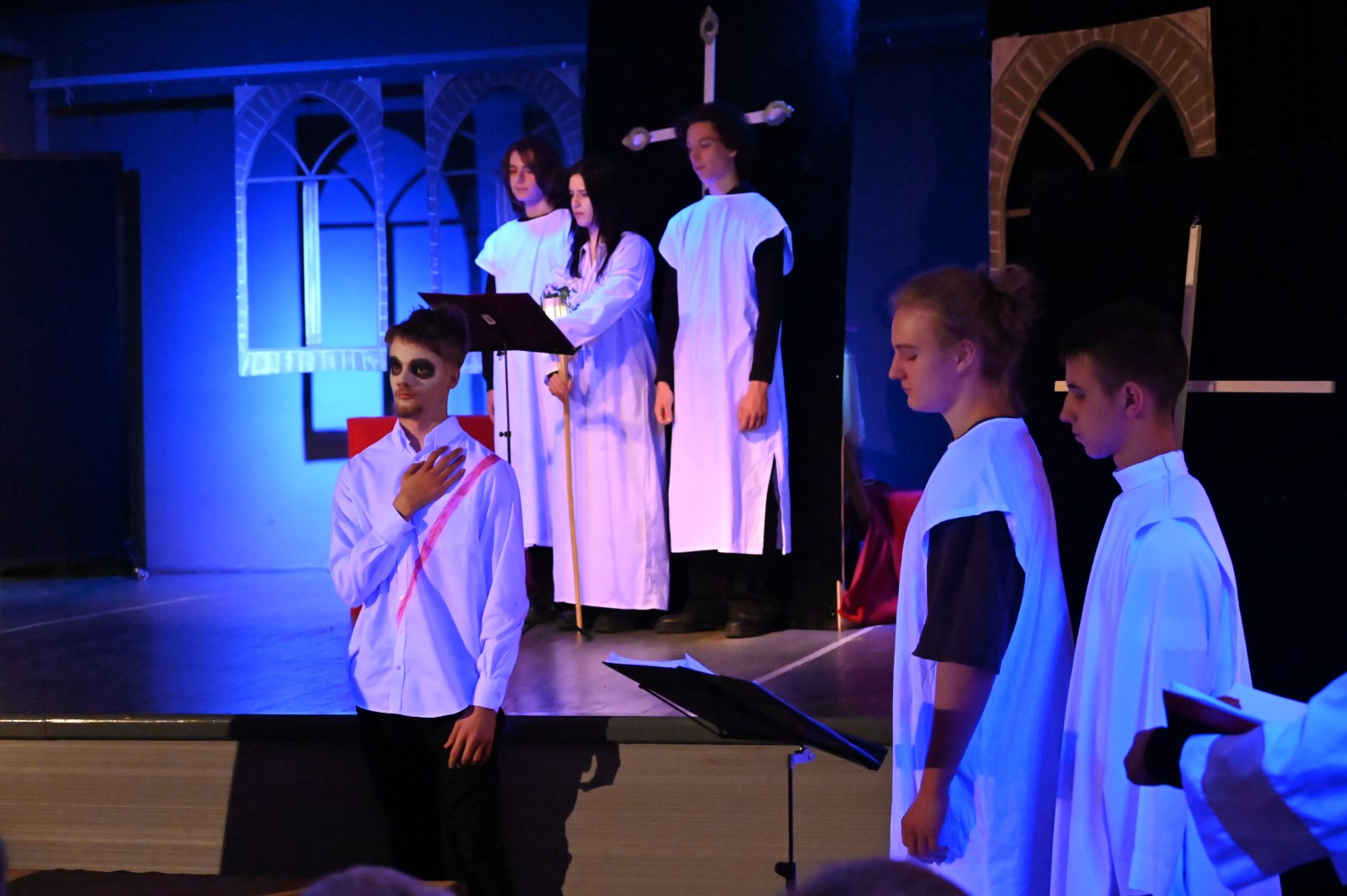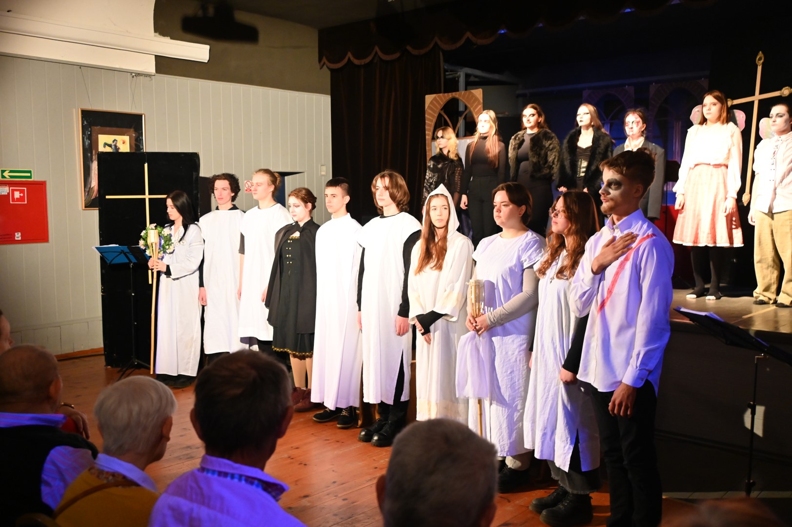 Po raz drugi podopieczni placówek opieki społecznej z Elbląga i powiatu elbląskiego mieli okazję podziwiać talenty artystyczne młodzieży pracującej pod kierunkiem Wojciecha Karpińskiego w Młodzieżowym Domu Kultury w Elblągu. Wcześniej, w listopadzie, nasi młodzi przyjaciele zaprezentowali nam spektakl pod tytułem „Ilu jest mądrych na świecie ?” i właśnie wtedy padło zaproszenie na wiosenną inscenizację „Dziadów” Adama Mickiewicza. Skwapliwie skorzystaliśmy z tego zaproszenia, przybyliśmy w gronie nieomal tak licznym jak jesienią, a doznaliśmy tym razem wrażeń chyba jeszcze silniejszych i bardziej poruszających wyobraźnię. Powoli stajemy się fanami teatralnej twórczości uczniów z elbląskich szkół średnich, których pasja i zaangażowanie udzielają się także nam i dopingują nas do aktywnego uczestnictwa w życiu kulturalnym, przełamującym nudne schematy naszej codziennej doli. Wybieramy się zatem na zapowiedziany kolejny spektakl, tym razem prapremierowy, szykowany na czerwiec 2025 roku, przed nastaniem wakacji.