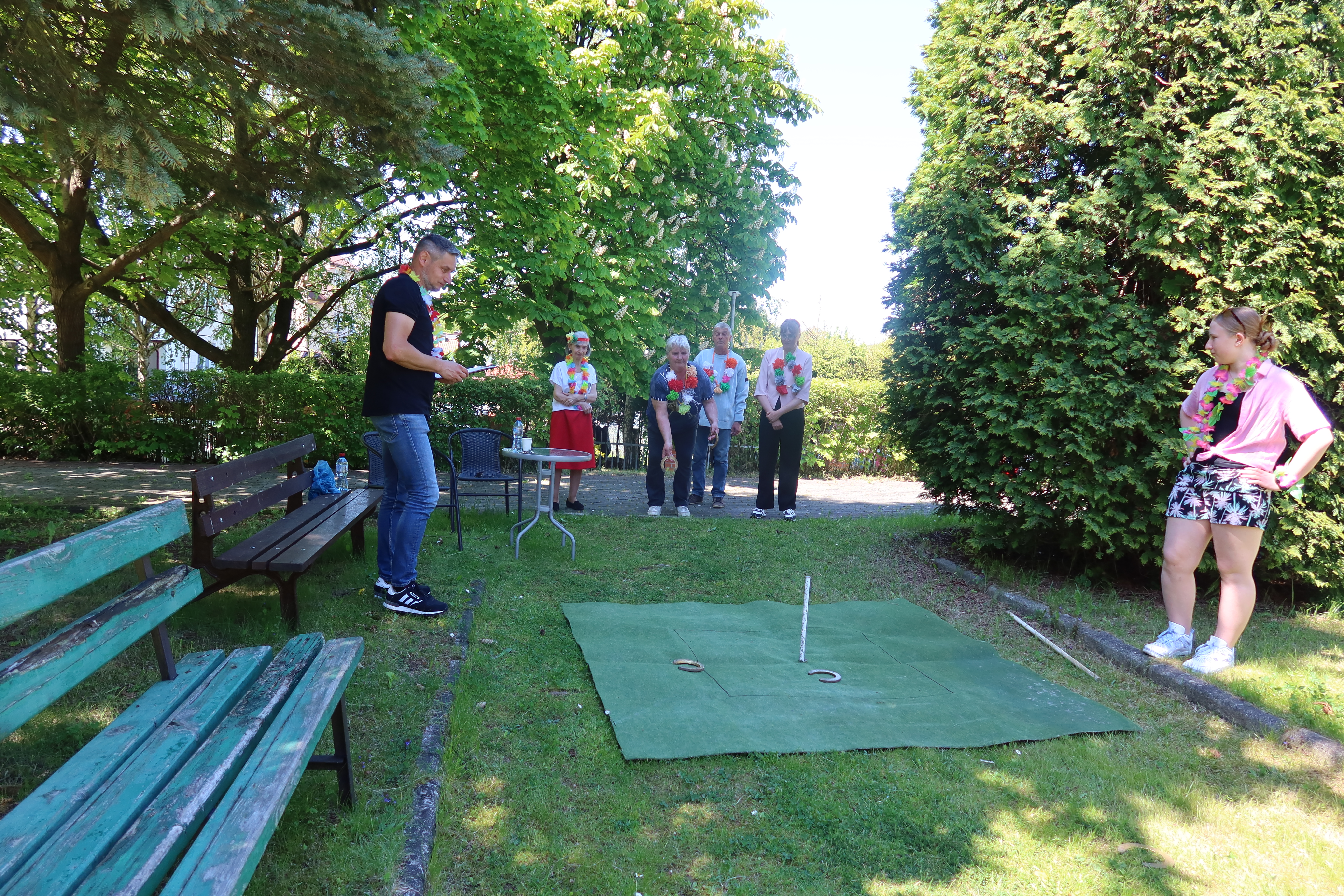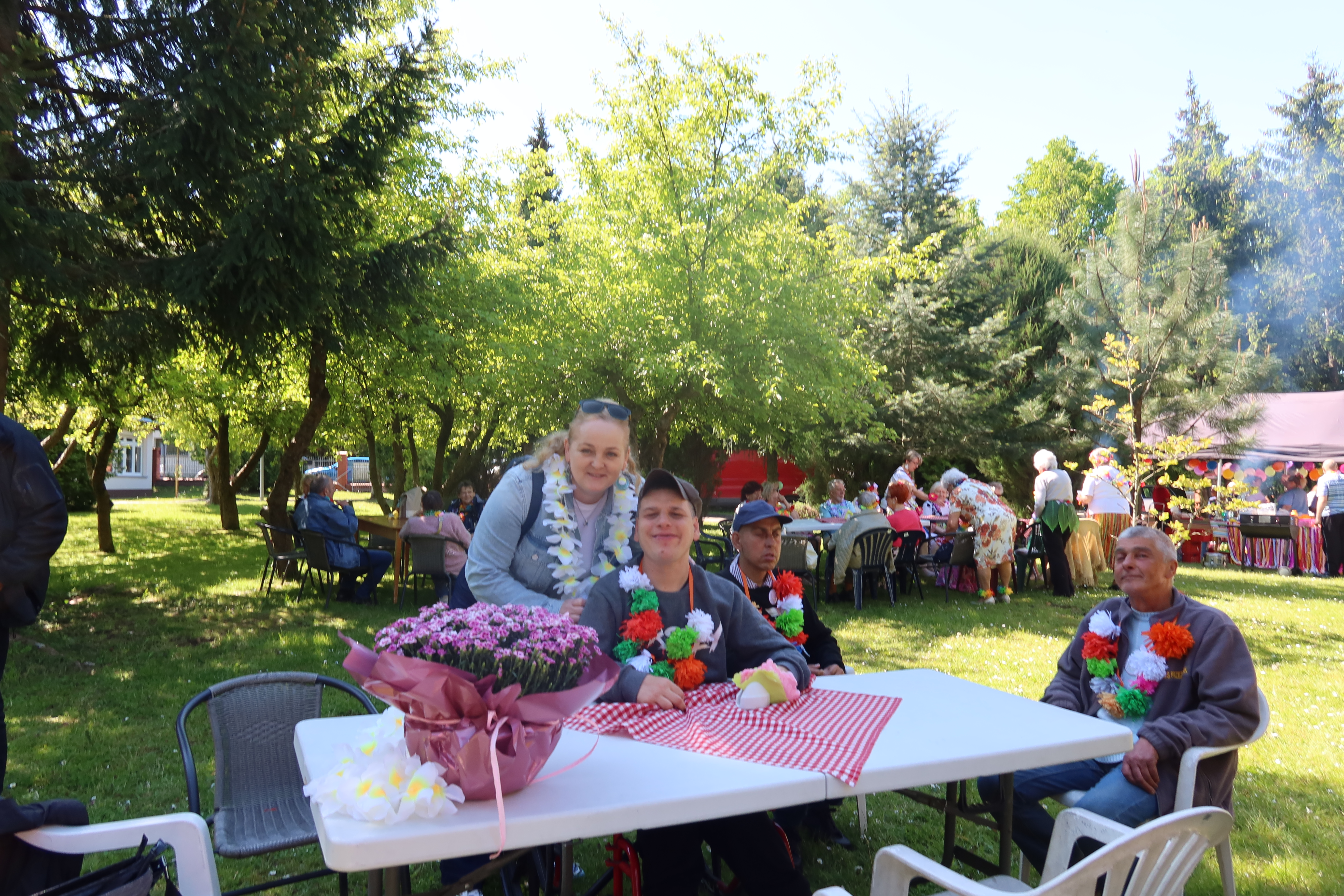 W dniu 20 maja 2025 r. uczestnicy Środowiskowego Domu Samopomocy w Przezmarku wzięli udział w festynie zorganizowanym przez Dom Pomocy Społecznej w Elblągu, którego tematem przewodnim były „Hawaje w Niezapominajce”.