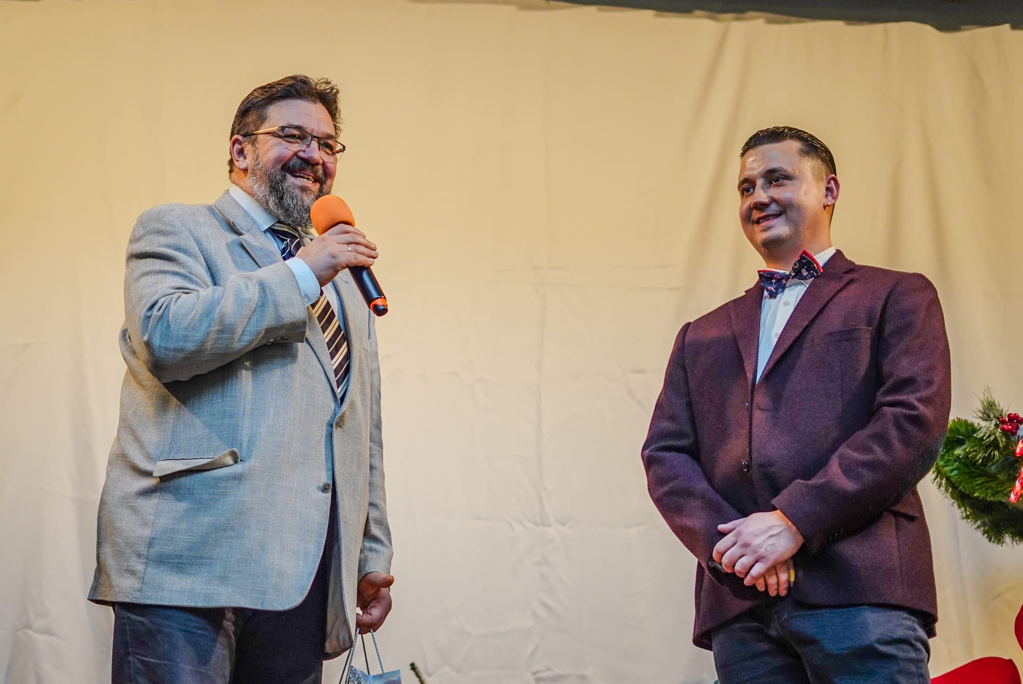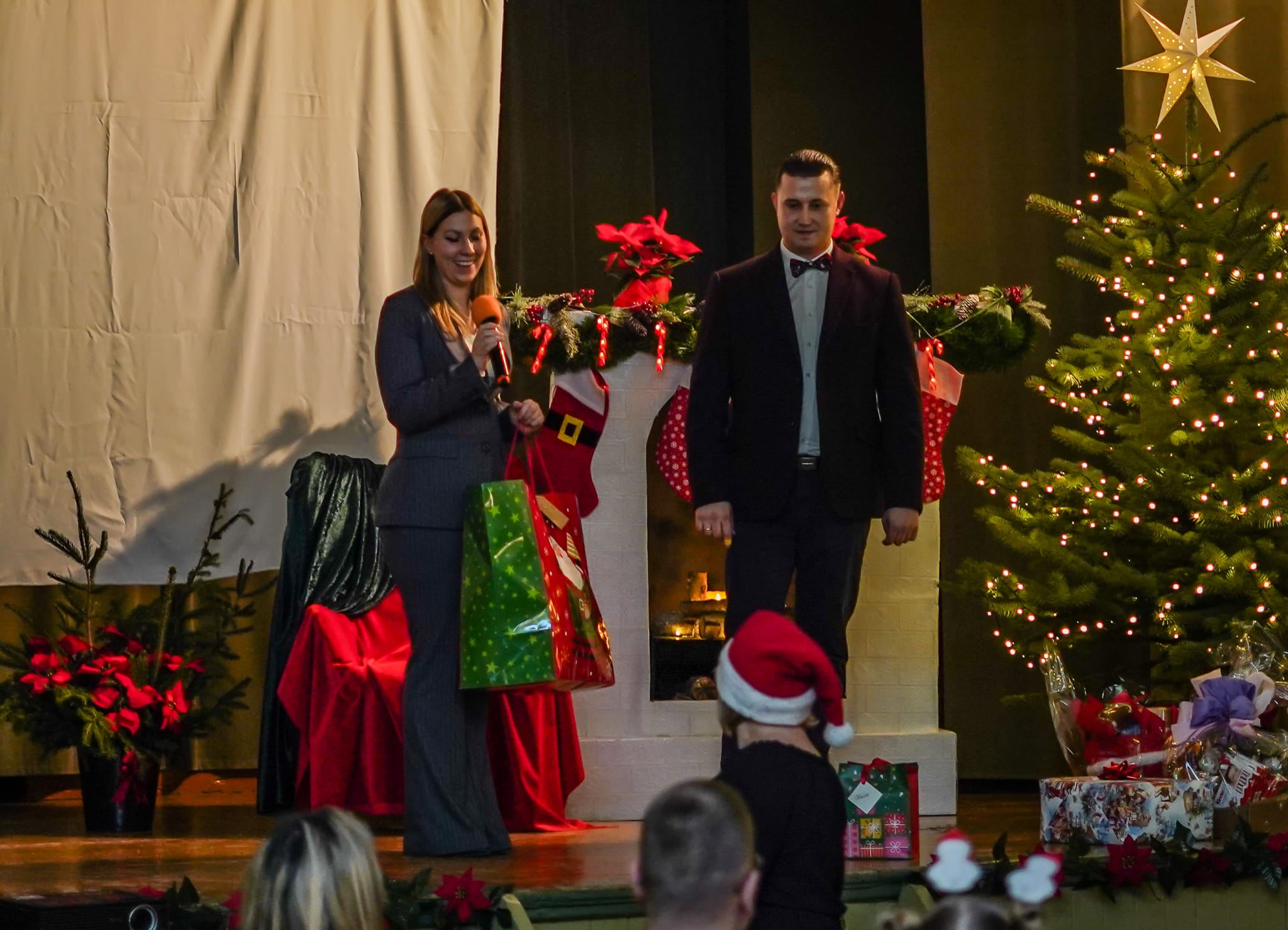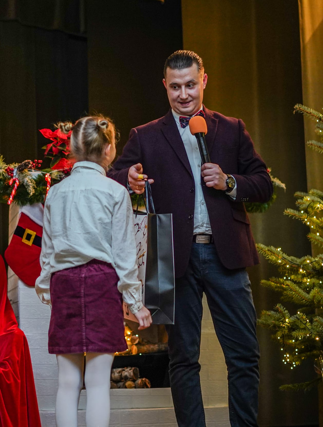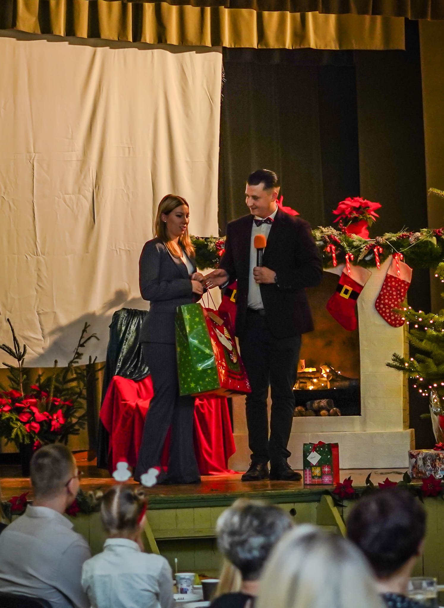 Po części powitalnej, w części artystycznej słyszeliśmy przepiękny koncert kolęd w wykonaniu wolontariuszy i absolwentów Zespołu Szkół w Pasłęku, grupy wokalnej z Domu Kultury z Godkowa, jak i również Jacka Wojnicza kolędującego w czasie posiłku. Niezapomnianym akcentem były osobiste życzenia przesłane przez Św. Mikołaja i prezenty dostarczone „na czas” do placówek. W jego imieniu Dyrektor wręczył po dwa (a może po trzy) prezenty dla każdego dziecka. Na te dzieci, które nie mogły uczestniczyć w wydarzeniu, prezenty będą czekały w placówkach.
