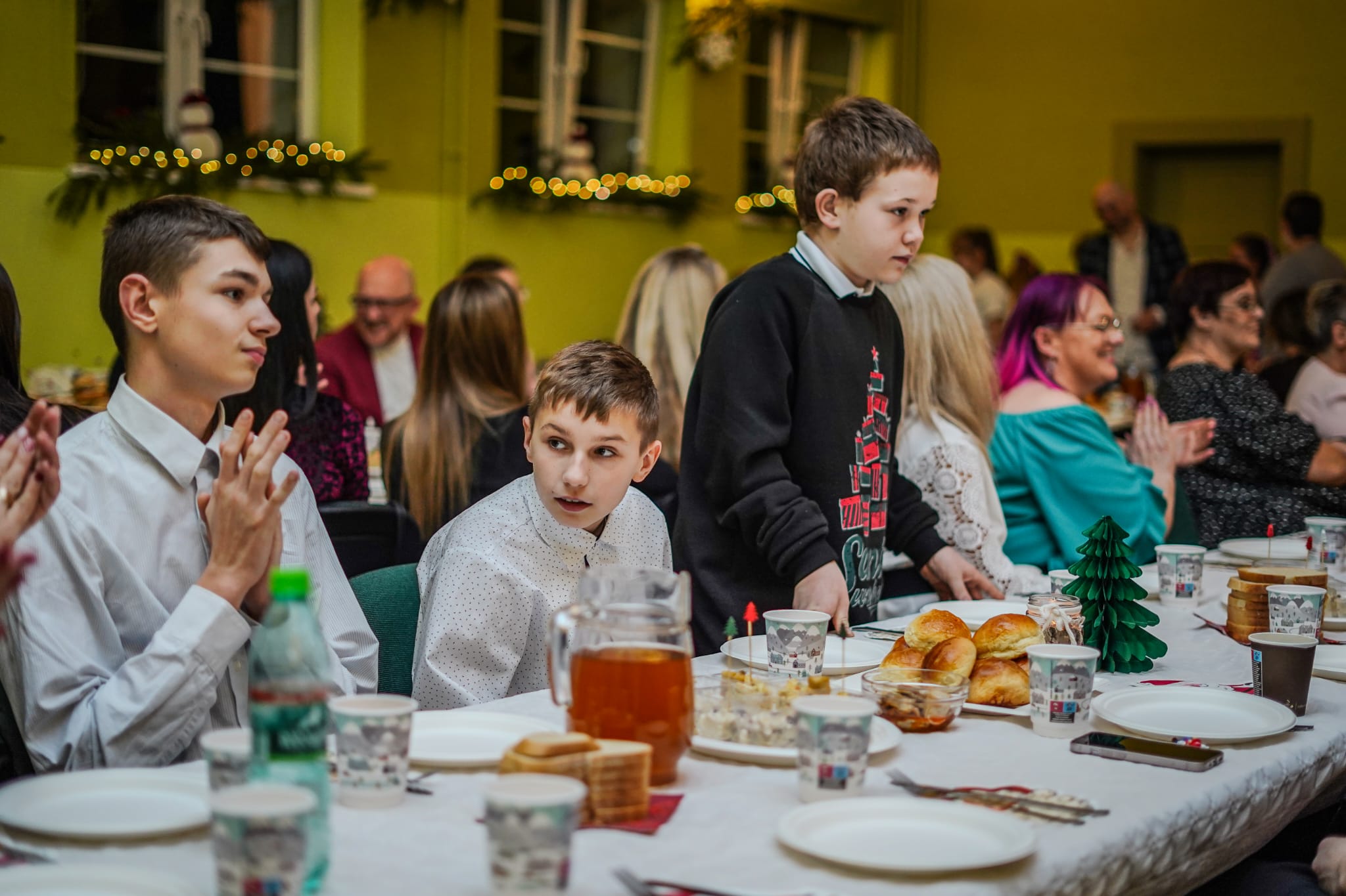 Wieczornica Wigilijna jest od wielu lat świętem obchodzonym przez Placówki Opiekuńczo-Wychowawcze w Okresie Bożonarodzeniowym. Świętem, które już na zawsze wpisało się w życie placówek opiekuńczo-wychowawczych. I to właśnie w piątkowy wieczór (12.12.2025 r.), do Domu Kultury w Zielonce Pasłęckiej, Placówki Opiekuńczo-Wychowawcze „Samodzielne Mieszkanie” i „Zakątek” miały przyjemność zaprosić i gościć: sponsorów, przyjaciół, osób bliskich życzliwych i wrażliwych na potrzeby dzieci. Wieczornica to nie tylko dobry wigilijny poczęstunek, prezenty dla dzieci, to przede wszystkim podziękowania i ukłony dla tych wszystkich, którzy towarzyszą dzieciom przez cały rok, tych, którzy pomagają, tych, którzy obdarowują nas przyjaźnią i zaufaniem. Przepiękny to czas kiedy wszystkich przyjaciół możemy zobaczyć razem z nami, kolędujących, radosnych, rozmawiających i delektujących się pysznymi wigilijnymi potrawami.